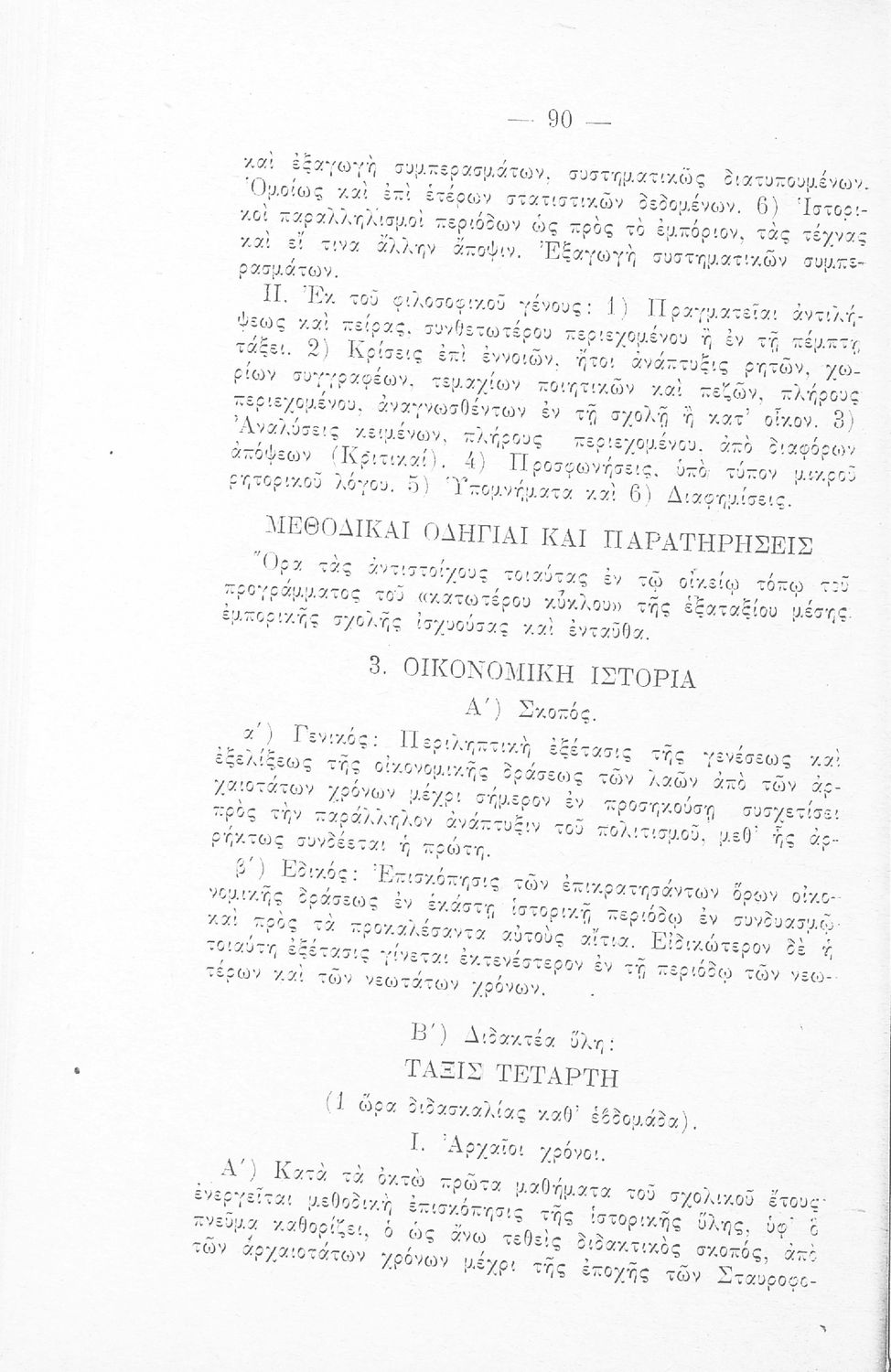 Έκδοση του Υπουργείου Εθνικής Οικονομίας που περιλαμβάνει το αναλυτικό πρόγραμμα των μαθημάτων που διδάσκονταν στις μεσαίες τάξεις των εμπορικών σχολών.