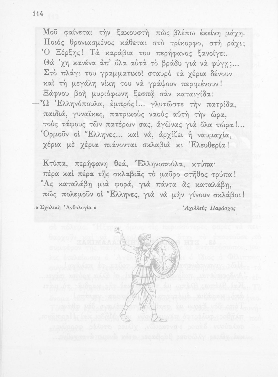 Βαθμίδα εκπαίδευσης: Πρωτοβάθμια Τάξη: Δ' Δημοτικού Μάθημα: Νέα Ελληνικά Γλώσσα: Καθαρεύουσα Παρουσίαση περιεχομένου: Αναγνωστικό Δ' Δημοτικού που είναι χωρισμένο σύμφωνα με τις εποχές του χρόνου και περιλαμβάνει ποιήματα και πεζά εμπνευσμένα από τη ζωή στην ύπαιθρο, την εθνική, οικογενειακή και κοινωνική ζωή, τη θρησκευτική παράδοση, τις ασχολίες των ανθρώπων, και την ελληνική φύση, ιστορία και μυθολογία. Φέρει το σύμβολο της δικτατορίας. |