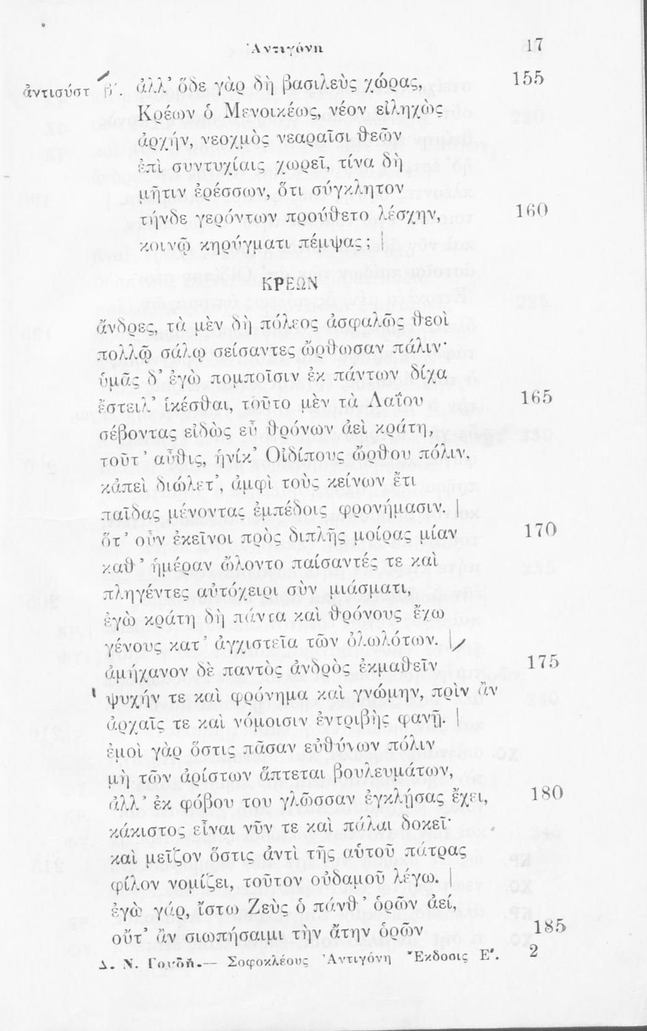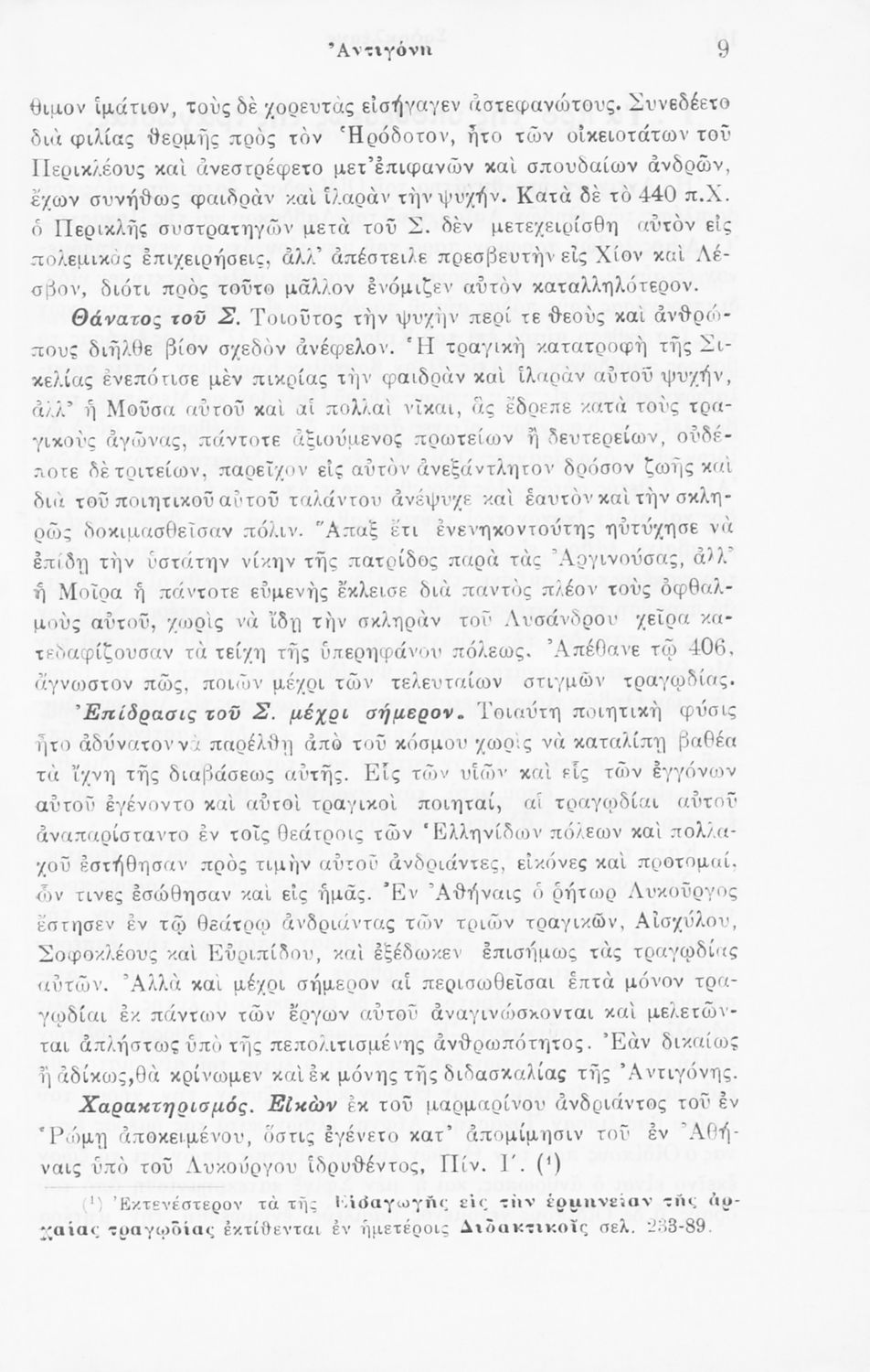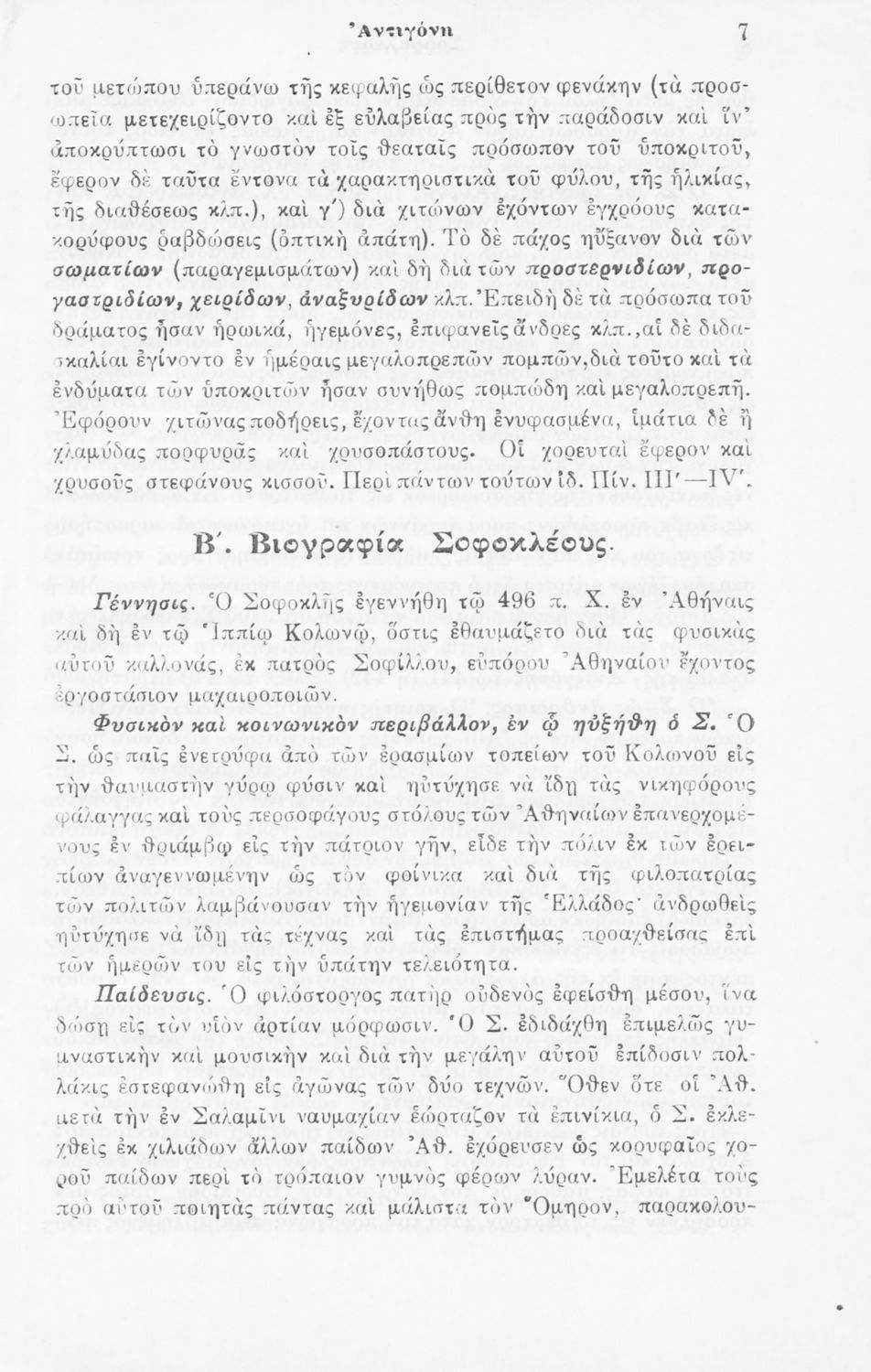 Μαθητικό βοήθημα της Δ΄ Γυμνασίου για το μάθημα των Αρχαίων Ελληνικών που περιλαμβάνει την Αντιγόνη του Σοφοκλή, πραγματολογικά σχόλια και λεξιλογικές παρατηρήσεις. Ο συγγραφέας ήταν Διευθυντής στη Βαρβάκειο πρότυπο σχολή.
