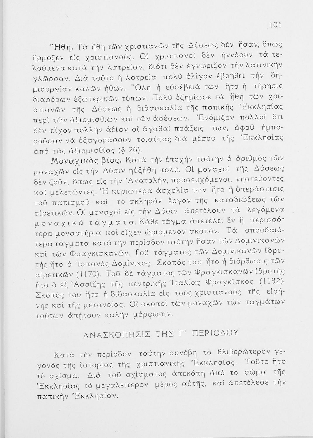 Σχολικό εγχειρίδιο Θρησκευτικών για την Δ' Γυμνασίου παλαιού τύπου που περιέχει την ιστορία της ορθόδοξης Εκκλησίας από την ίδρυσή της μέχρι την δημιουργία της Εκκλησίας της Ελλάδας.