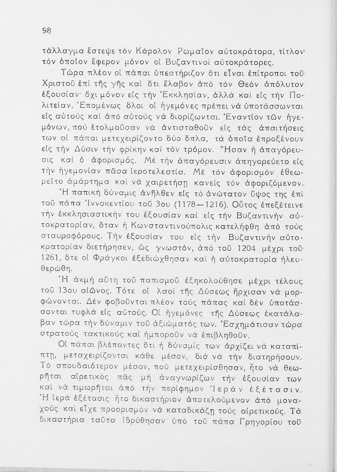 Σχολικό εγχειρίδιο Θρησκευτικών για την Δ' Γυμνασίου παλαιού τύπου που περιέχει την ιστορία της ορθόδοξης Εκκλησίας από την ίδρυσή της μέχρι την δημιουργία της Εκκλησίας της Ελλάδας.