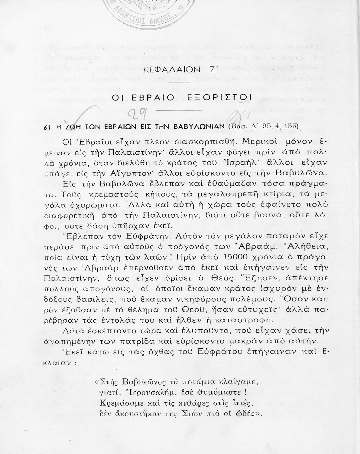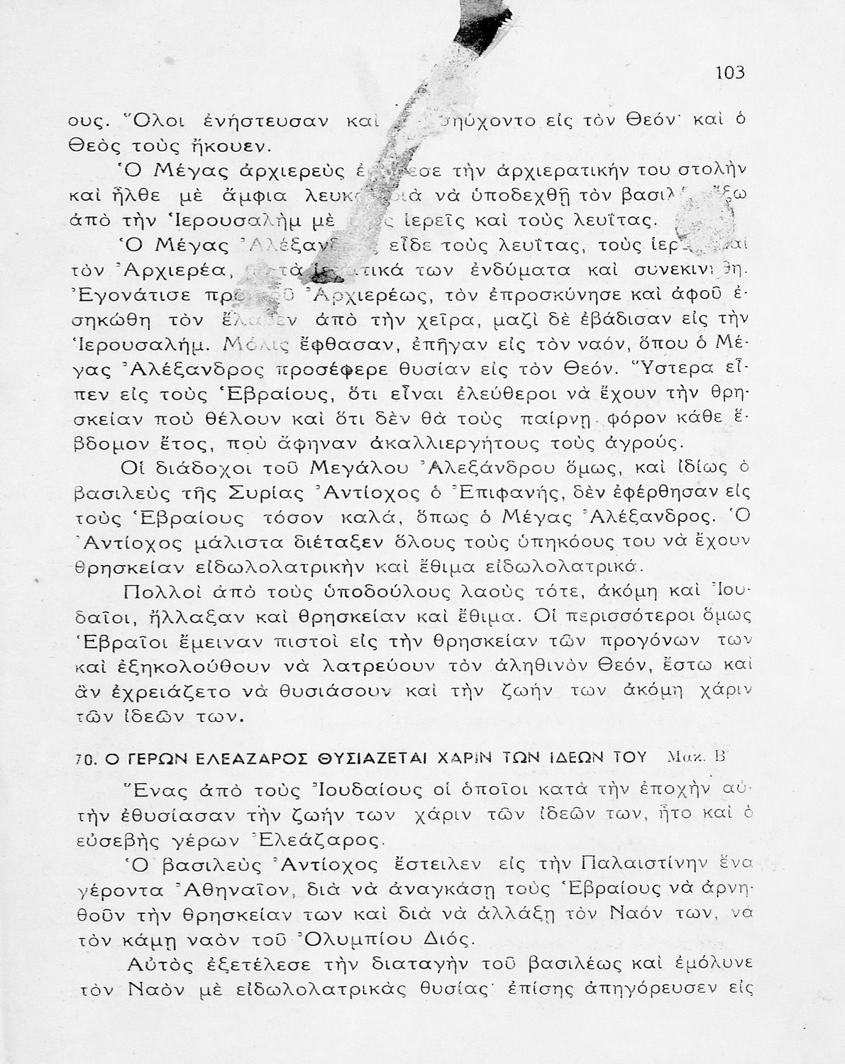 Σχολικό εγχειρίδιο Θρησκευτικών Α΄ Γυμνασίου που συνιστά μία εξιστόρηση της Παλαιάς Διαθήκης από τη δημιουργία του κόσμου ως την υποταγή των Εβραίων στους Ρωμαίους.