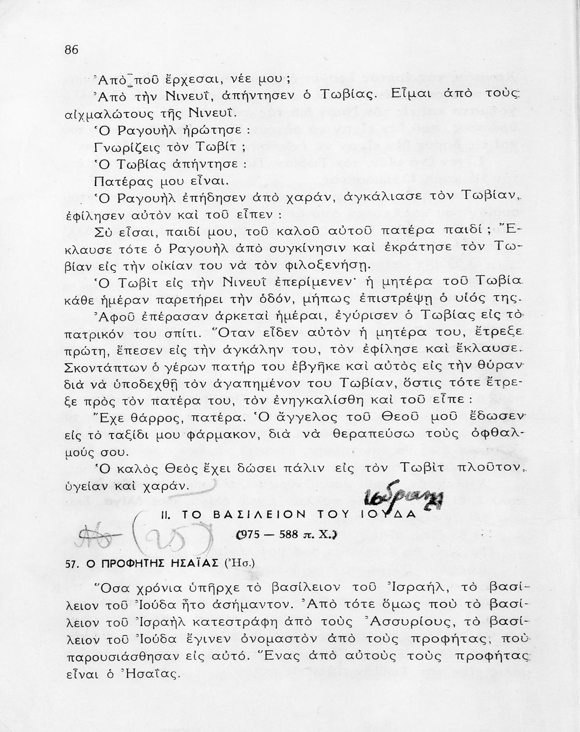 520 ## _aΣχολικό εγχειρίδιο Θρησκευτικών Α΄ Γυμνασίου που συνιστά μία εξιστόρηση της Παλαιάς Διαθήκης από τη δημιουργία του κόσμου ως την υποταγή των Εβραίων στους Ρωμαίους.