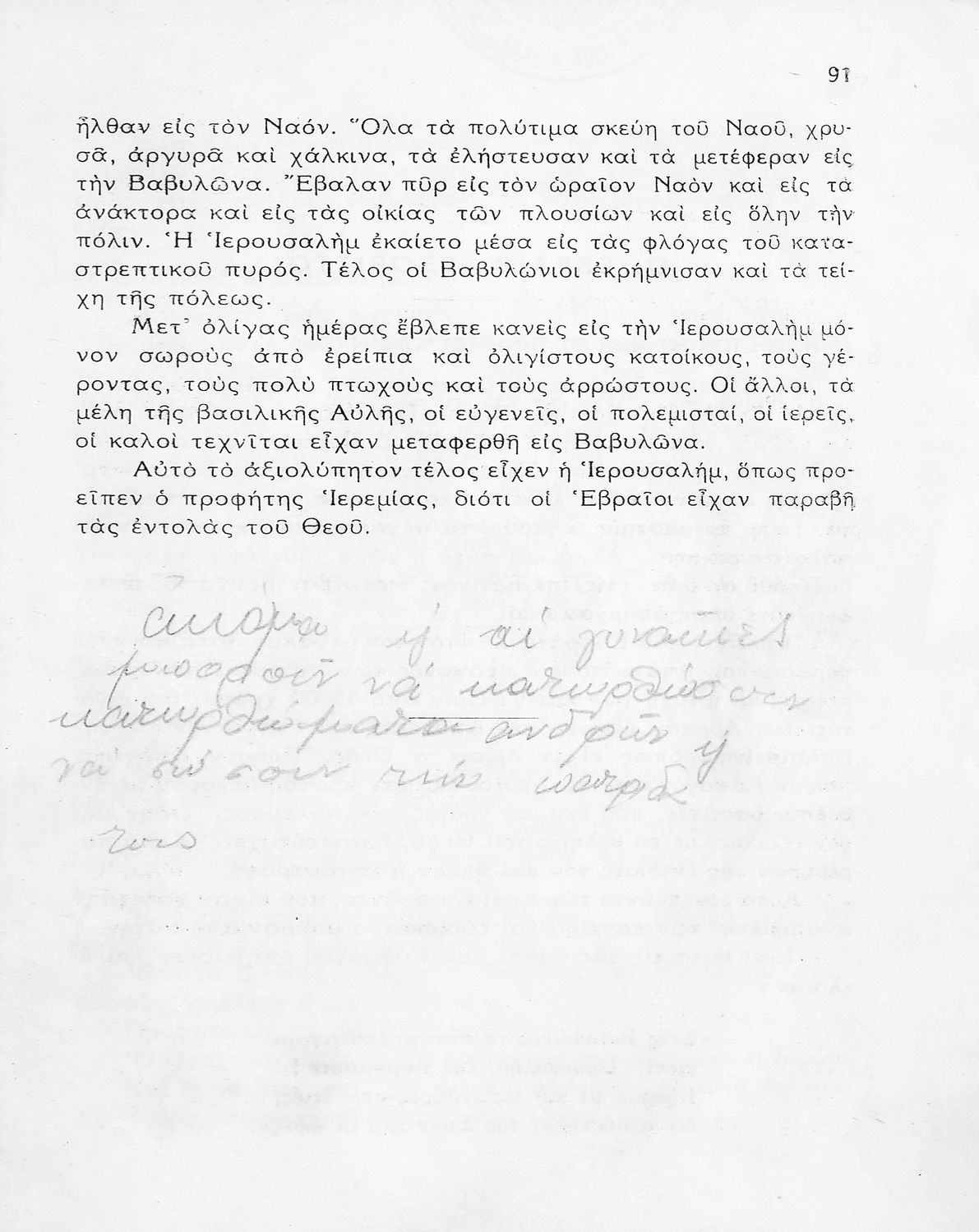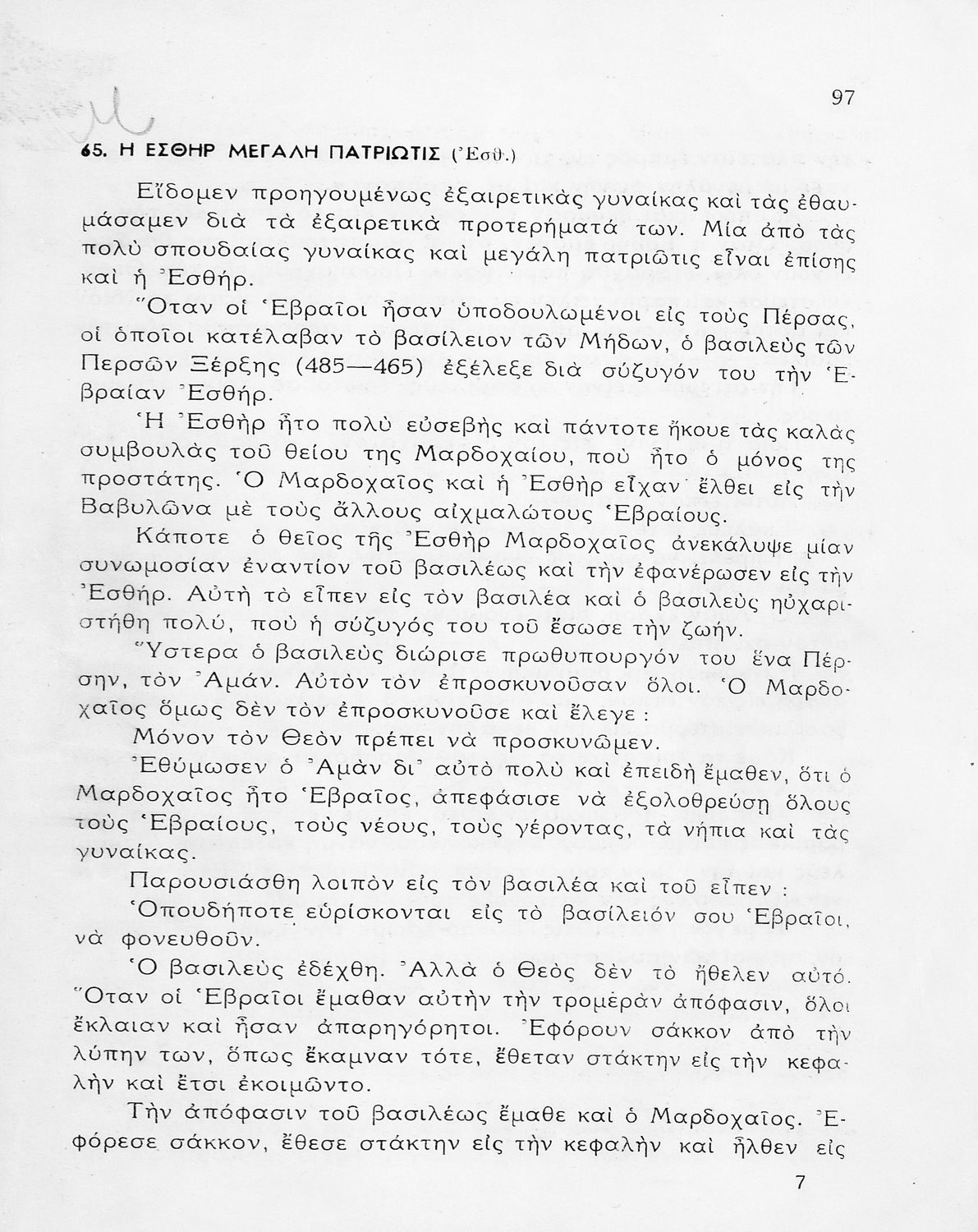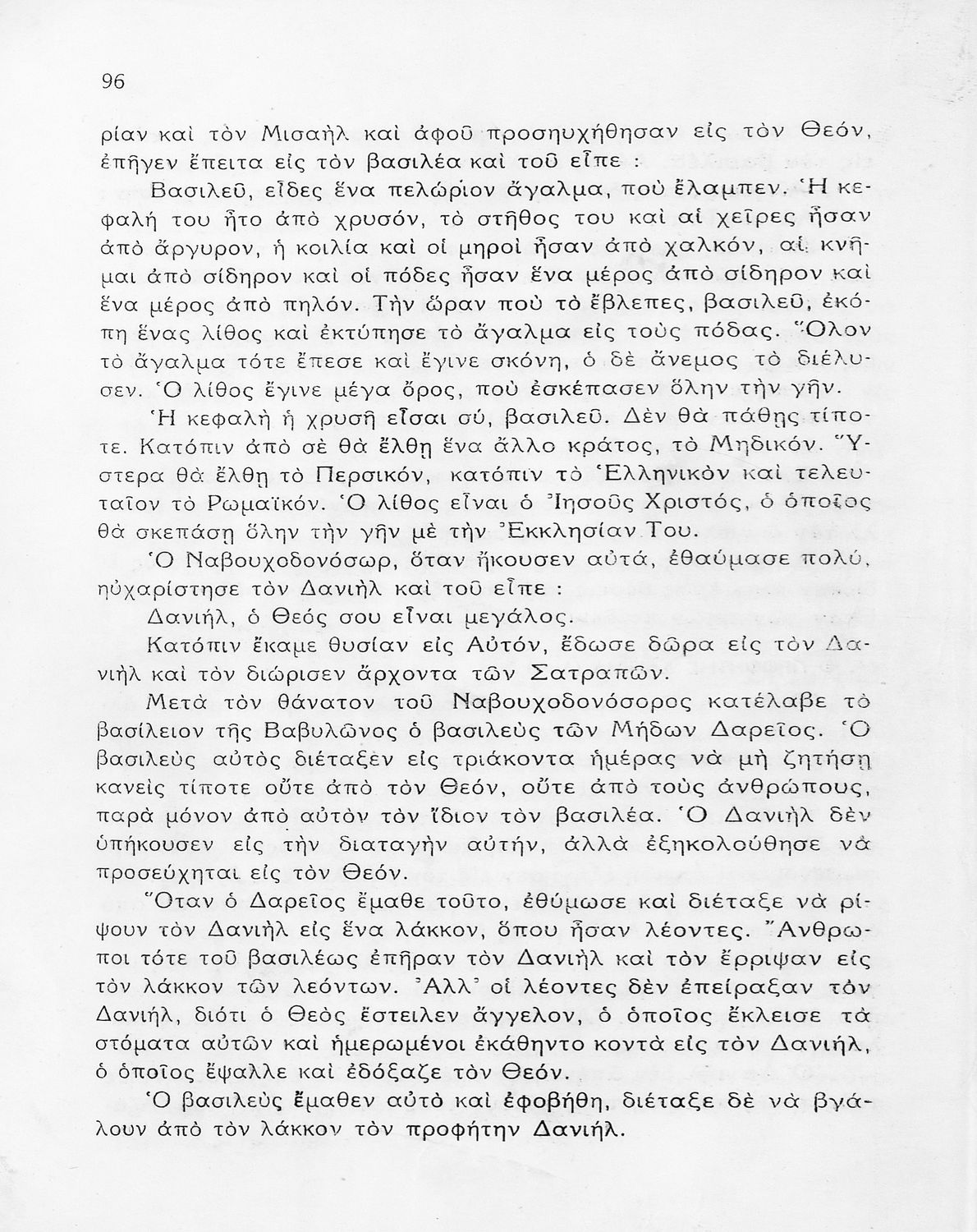 Βαθμίδα εκπαίδευσης: Δευτεροβάθμια Τάξη: Α' Γυμνασίου Μάθημα: Θρησκευτικά Γλώσσα: Καθαρεύουσα Παρουσίαση περιεχομένου: Σχολικό εγχειρίδιο Θρησκευτικών Α΄ Γυμνασίου που συνιστά μία εξιστόρηση της Παλαιάς Διαθήκης από τη δημιουργία του κόσμου ως την υποταγή των Εβραίων στους Ρωμαίους. |