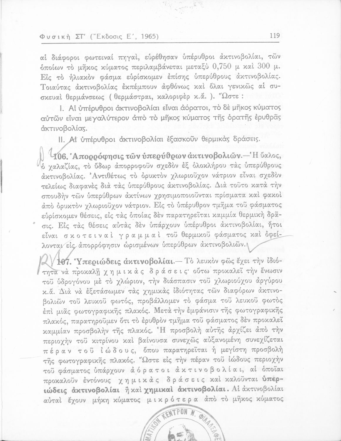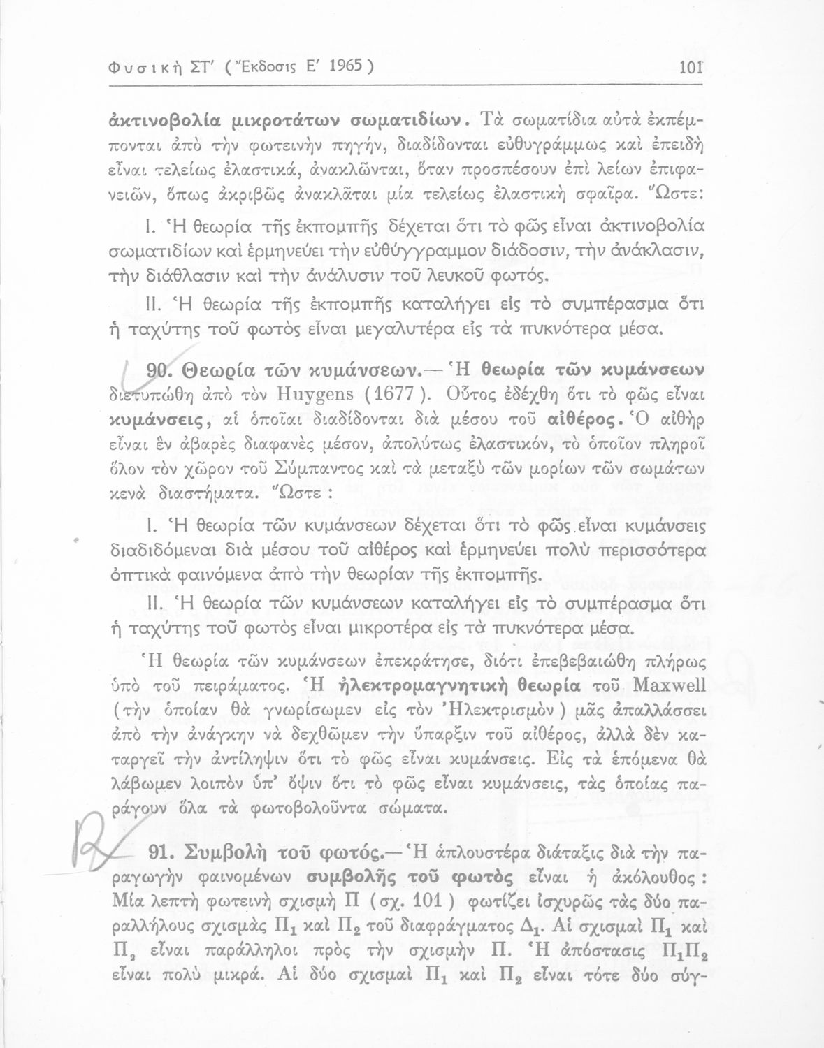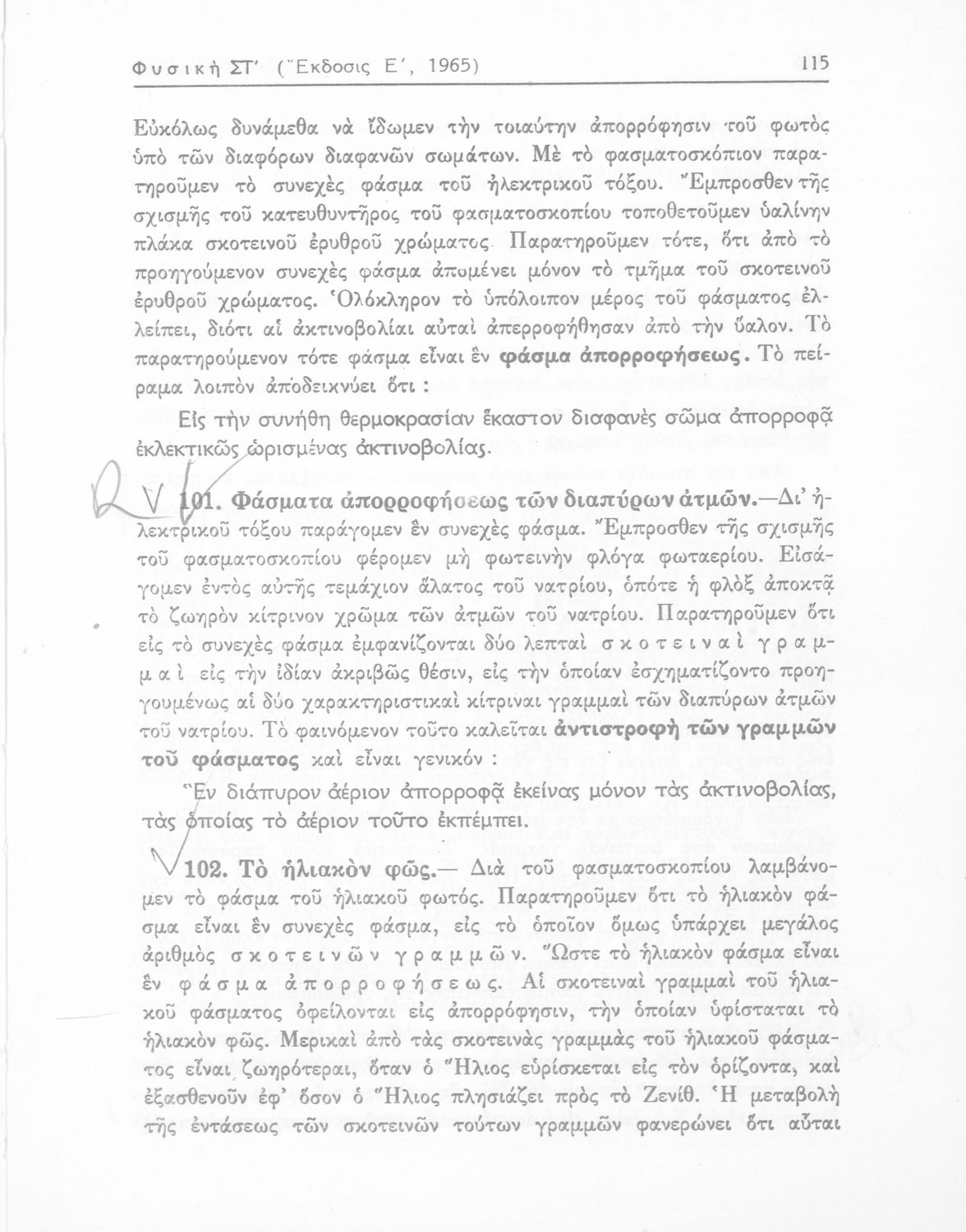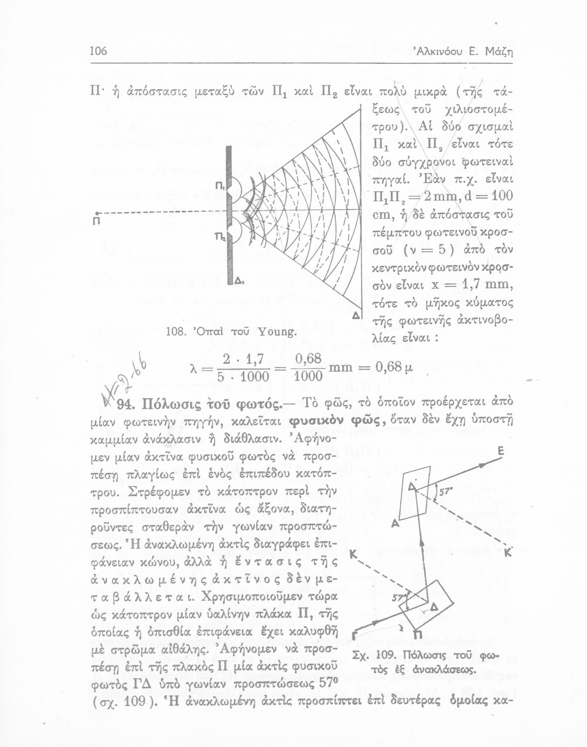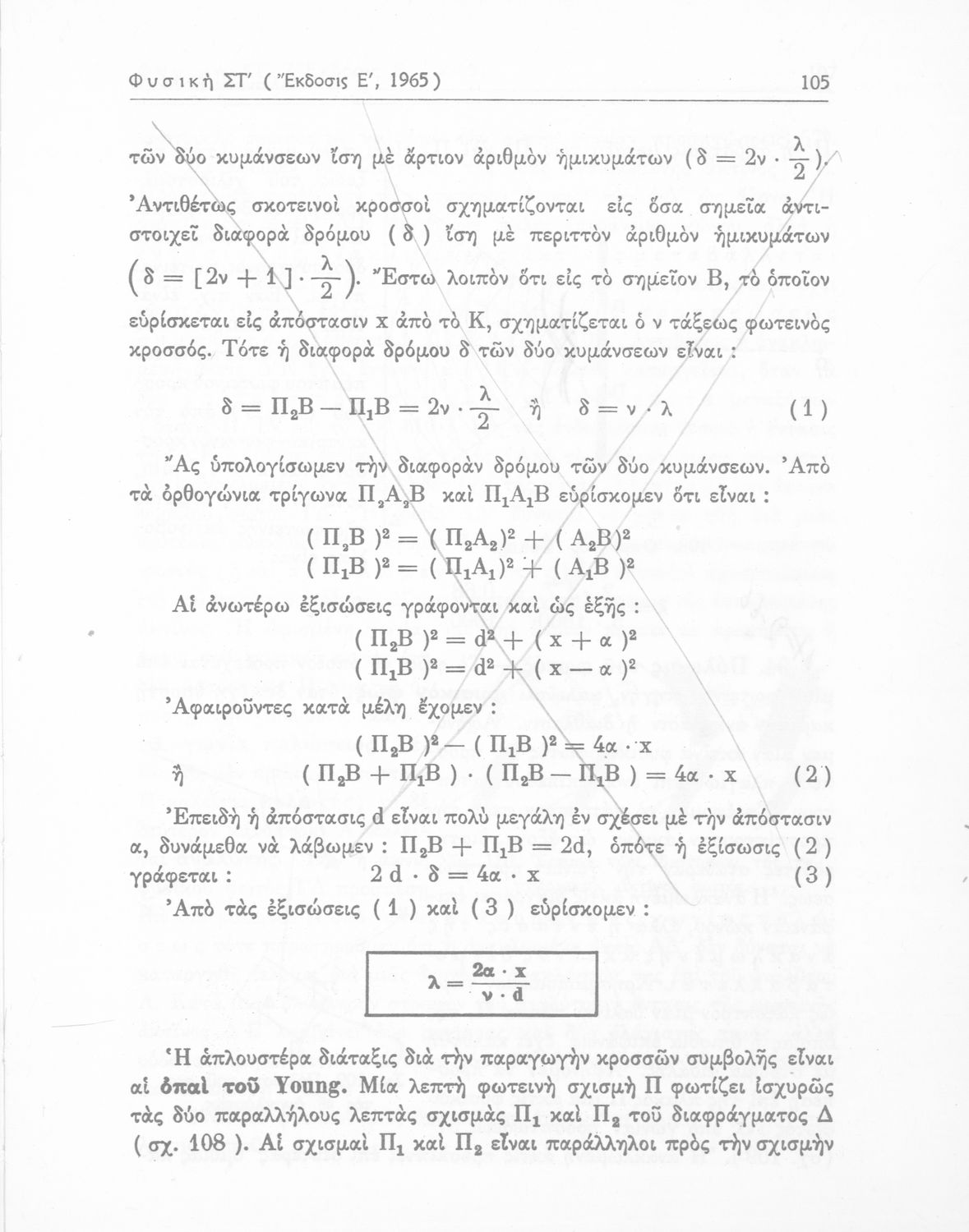 Σχολικό εγχειρίδιο Φυσικής. Το βιβλίο χωρίζεται σε τέσσερα μέρη καθένα από τα οποία περιγράφει συγκεκριμένο πεδίο της φυσικής (οπτική, μαγνητισμός, ηλεκτρισμός κλπ.). Ερμηνεύονται τα φυσικά μεγέθη, δίνονται οι ορισμοί και οι θεμελιώδης έννοιες για όλα τα πεδία ξεχωριστά.