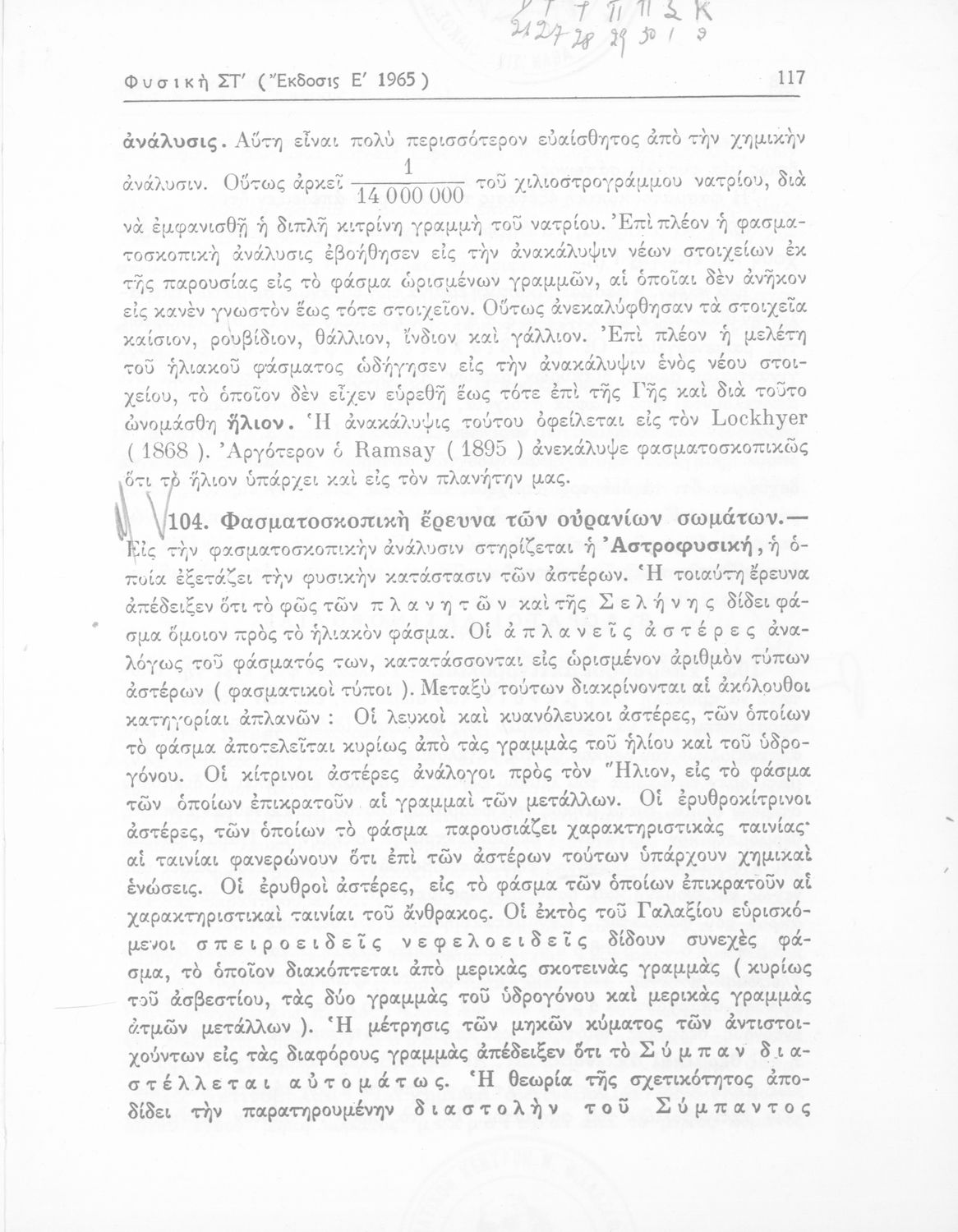 Σχολικό εγχειρίδιο της Ε΄ και ΣΤ΄ Τάξης των Δημοτικών Σχολείων και την Α΄ Τάξη των Οκτατάξιων Γυμνασίων, Προγυμνασίων και Αστικών Σχολείων για το μάθημα της Φυσικής. Παρέχει βασικές γνώσεις της φυσικής ...