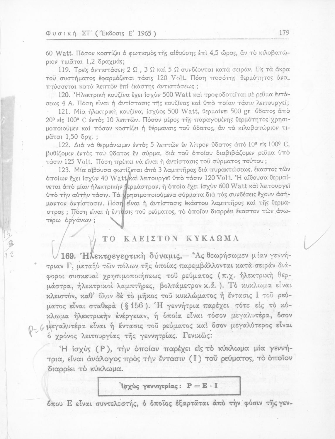 Σχολικό εγχειρίδιο Φυσικής. Το βιβλίο χωρίζεται σε τέσσερα μέρη καθένα από τα οποία περιγράφει συγκεκριμένο πεδίο της φυσικής (οπτική, μαγνητισμός, ηλεκτρισμός κλπ.). Ερμηνεύονται τα φυσικά μεγέθη, δίνονται οι ορισμοί και οι θεμελιώδης έννοιες για όλα τα πεδία ξεχωριστά.