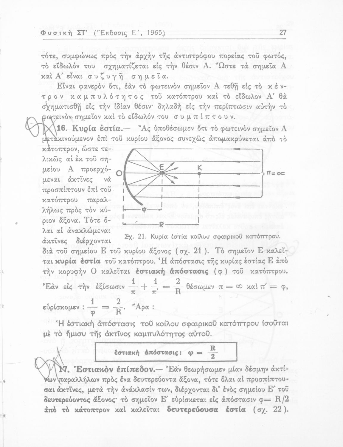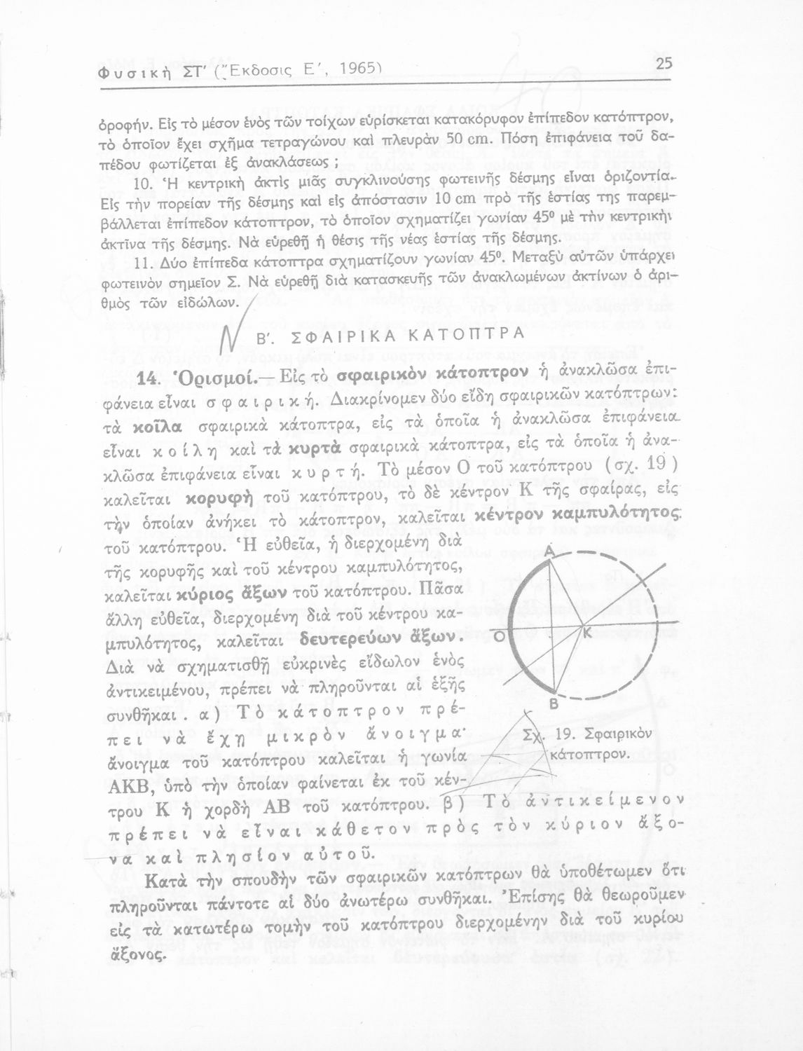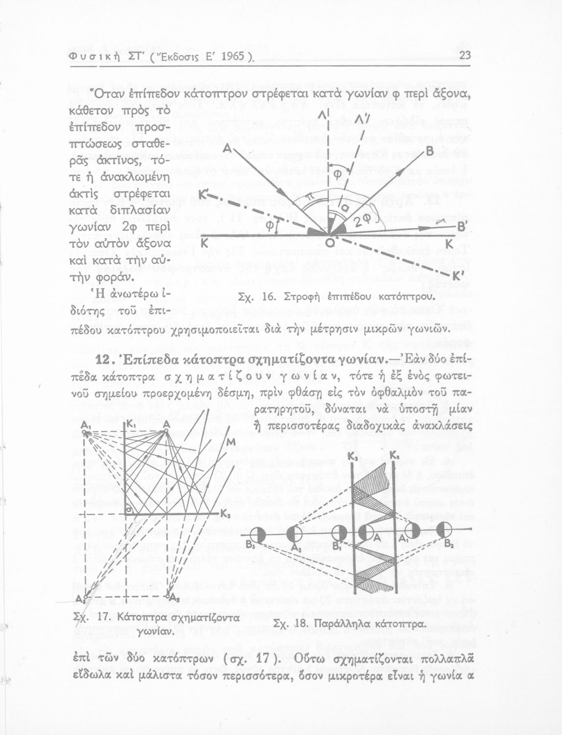 Σχολικό εγχειρίδιο Φυσικής. Το βιβλίο χωρίζεται σε τέσσερα μέρη καθένα από τα οποία περιγράφει συγκεκριμένο πεδίο της φυσικής (οπτική, μαγνητισμός, ηλεκτρισμός κλπ.). Ερμηνεύονται τα φυσικά μεγέθη, δίνονται οι ορισμοί και οι θεμελιώδης έννοιες για όλα τα πεδία ξεχωριστά.
