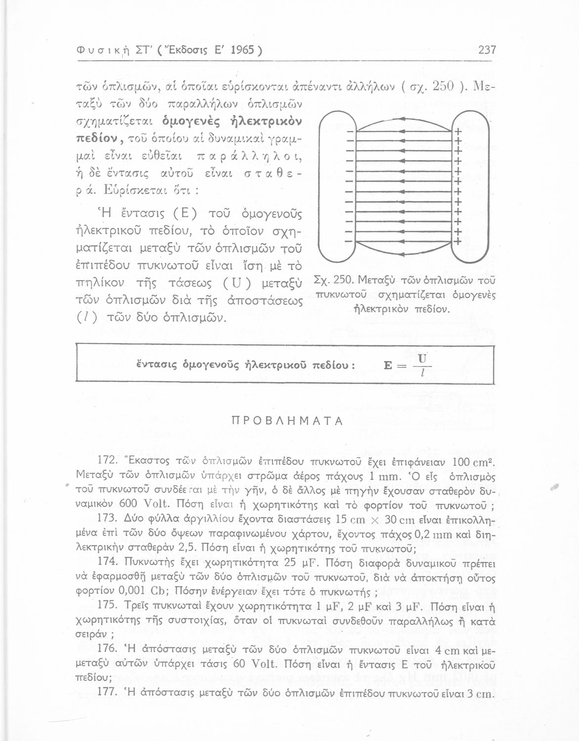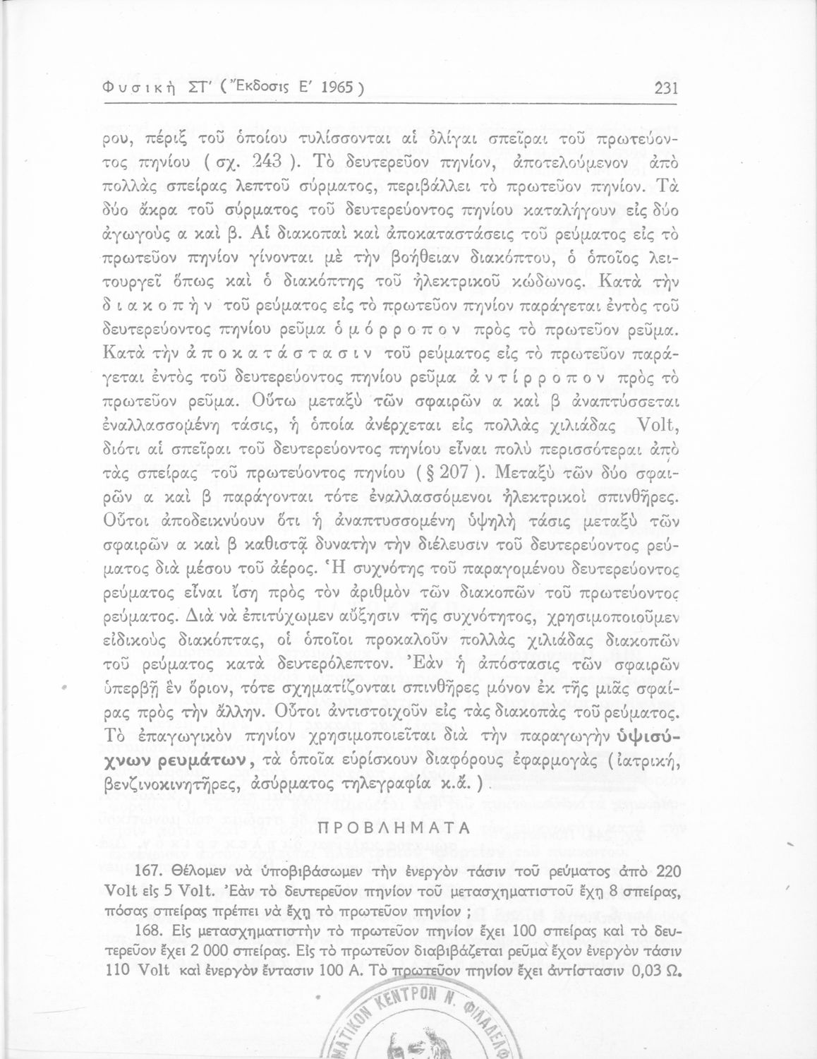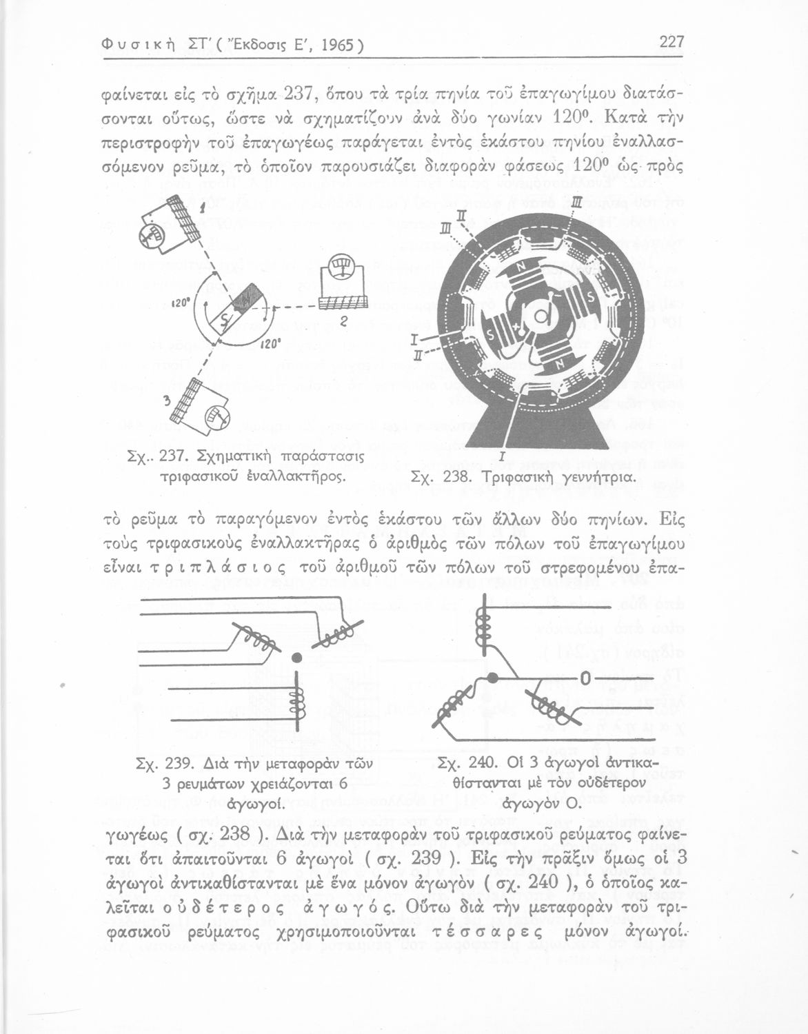 Σχολικό εγχειρίδιο Φυσικής. Το βιβλίο χωρίζεται σε τέσσερα μέρη καθένα από τα οποία περιγράφει συγκεκριμένο πεδίο της φυσικής (οπτική, μαγνητισμός, ηλεκτρισμός κλπ.). Ερμηνεύονται τα φυσικά μεγέθη, δίνονται οι ορισμοί και οι θεμελιώδης έννοιες για όλα τα πεδία ξεχωριστά.