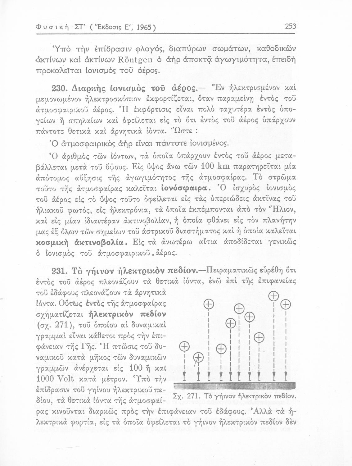 Σχολικό εγχειρίδιο Φυσικής. Το βιβλίο χωρίζεται σε τέσσερα μέρη καθένα από τα οποία περιγράφει συγκεκριμένο πεδίο της φυσικής (οπτική, μαγνητισμός, ηλεκτρισμός κλπ.). Ερμηνεύονται τα φυσικά μεγέθη, δίνονται οι ορισμοί και οι θεμελιώδης έννοιες για όλα τα πεδία ξεχωριστά.