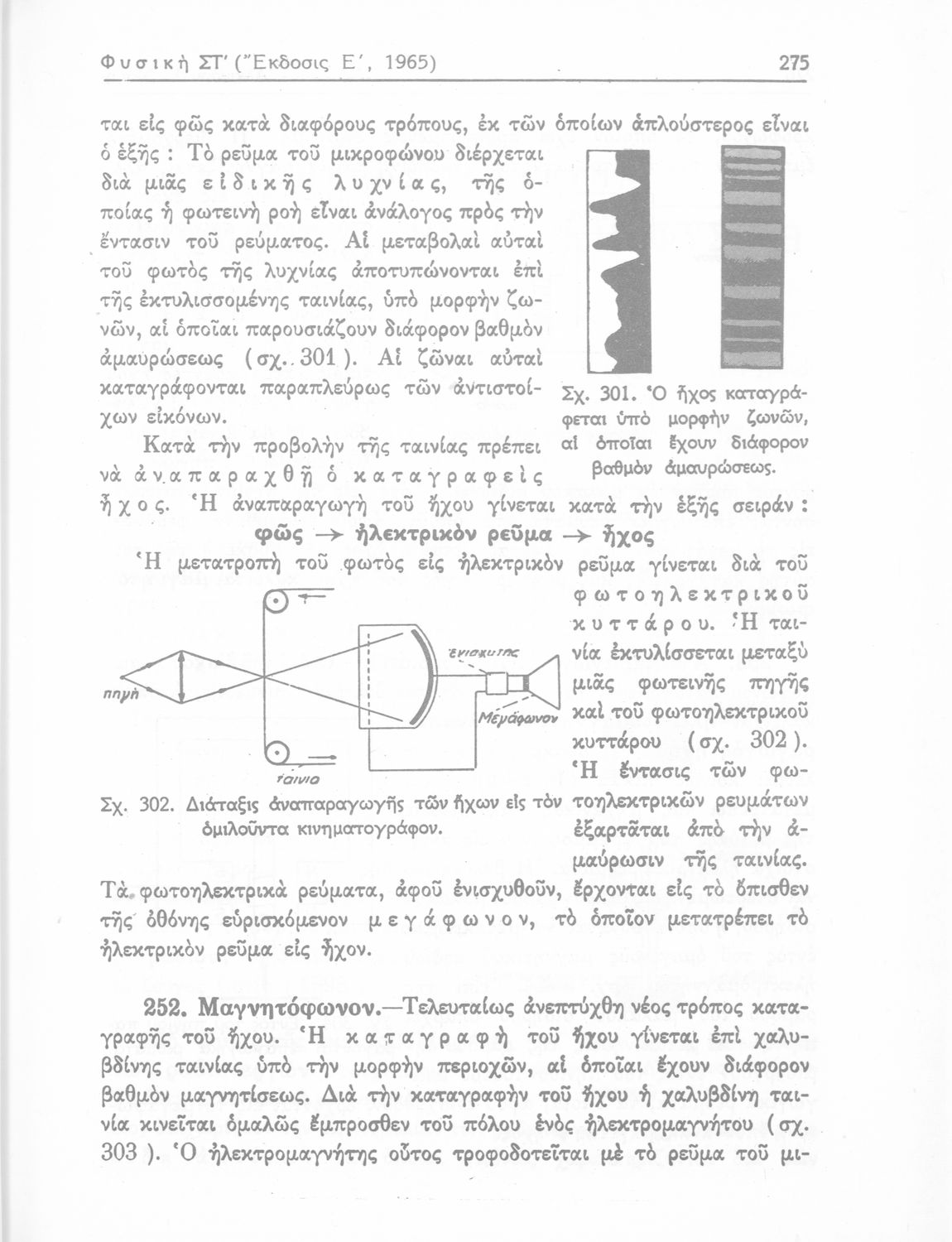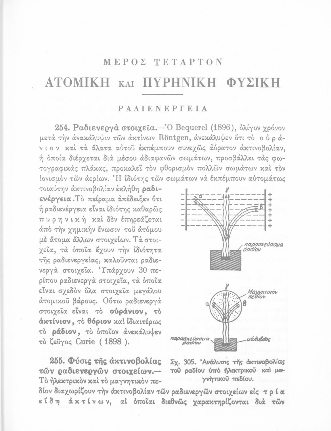 Σχολικό εγχειρίδιο Φυσικής. Το βιβλίο χωρίζεται σε τέσσερα μέρη καθένα από τα οποία περιγράφει συγκεκριμένο πεδίο της φυσικής (οπτική, μαγνητισμός, ηλεκτρισμός κλπ.). Ερμηνεύονται τα φυσικά μεγέθη, δίνονται οι ορισμοί και οι θεμελιώδης έννοιες για όλα τα πεδία ξεχωριστά.