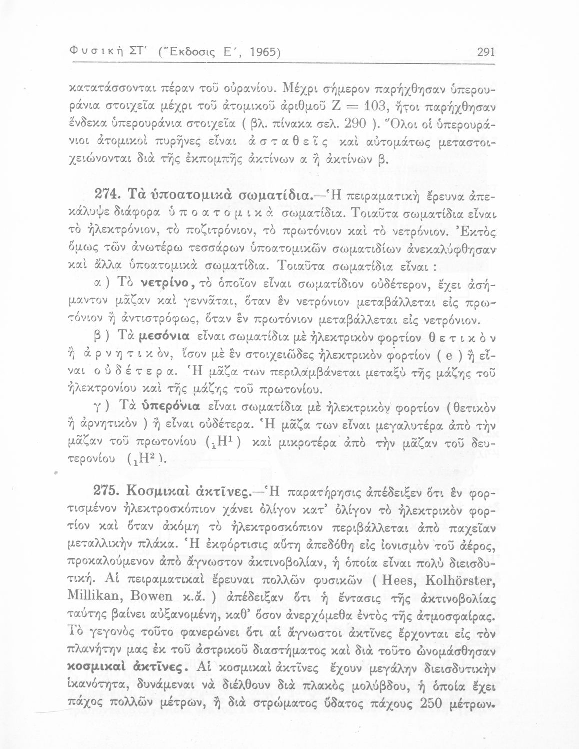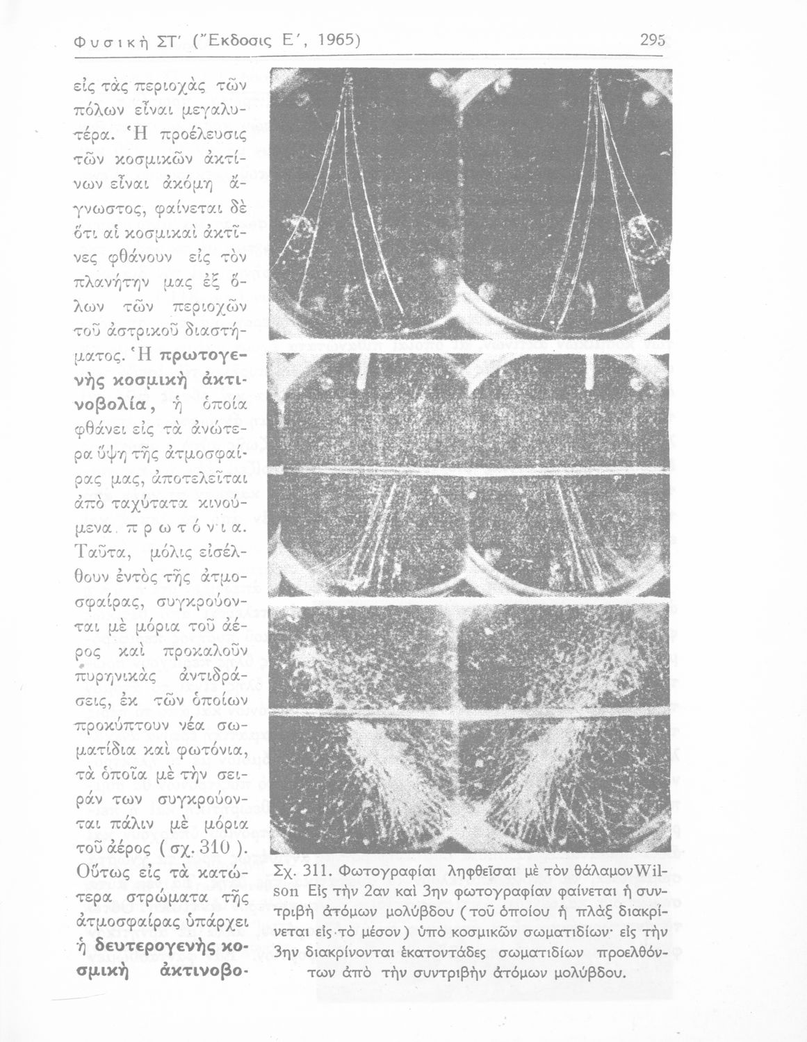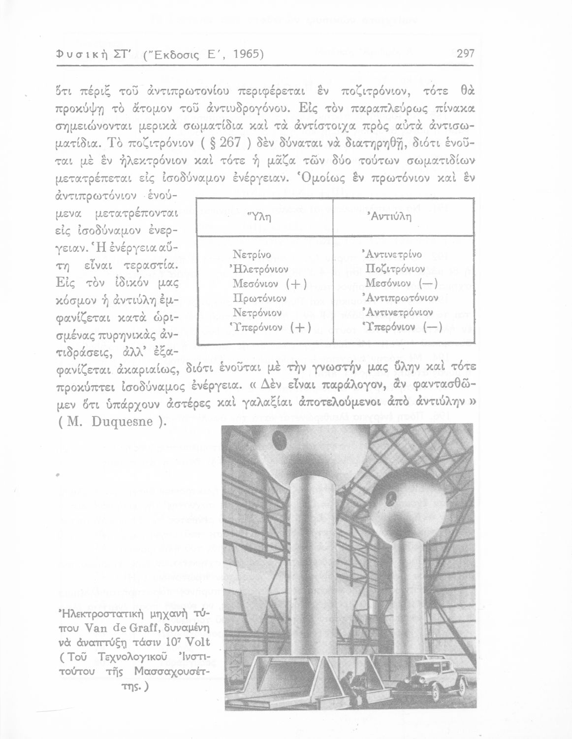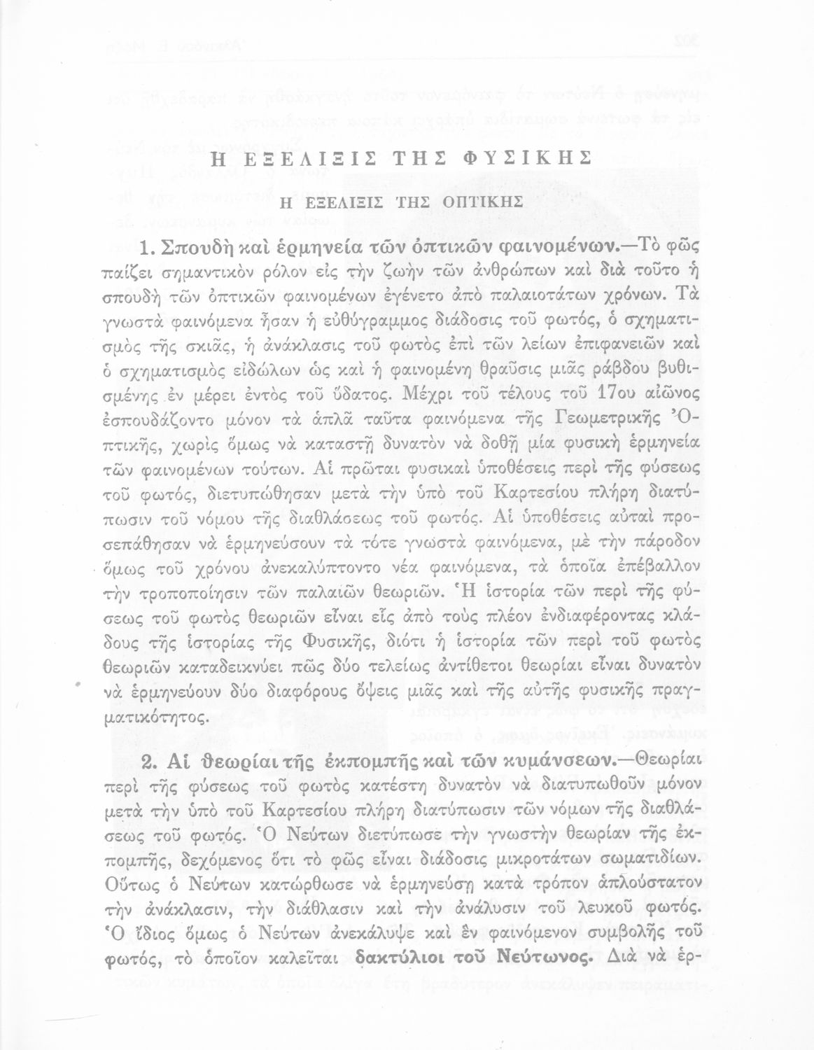 Σχολικό εγχειρίδιο Φυσικής. Το βιβλίο χωρίζεται σε τέσσερα μέρη καθένα από τα οποία περιγράφει συγκεκριμένο πεδίο της φυσικής (οπτική, μαγνητισμός, ηλεκτρισμός κλπ.). Ερμηνεύονται τα φυσικά μεγέθη, δίνονται οι ορισμοί και οι θεμελιώδης έννοιες για όλα τα πεδία ξεχωριστά.