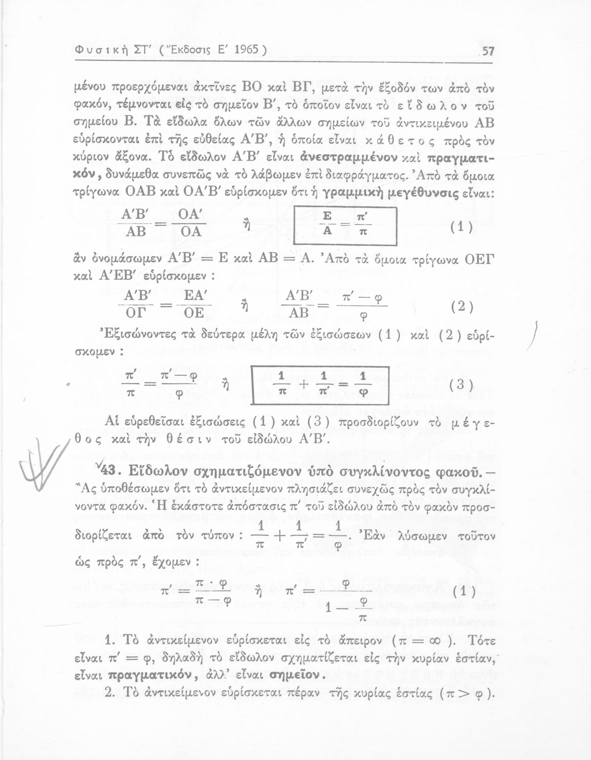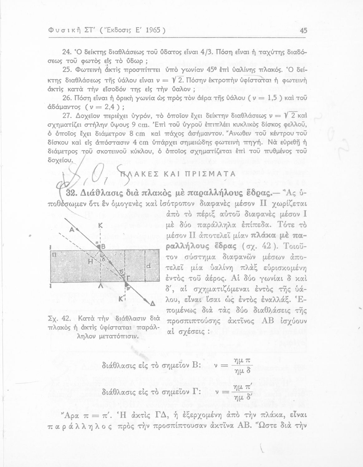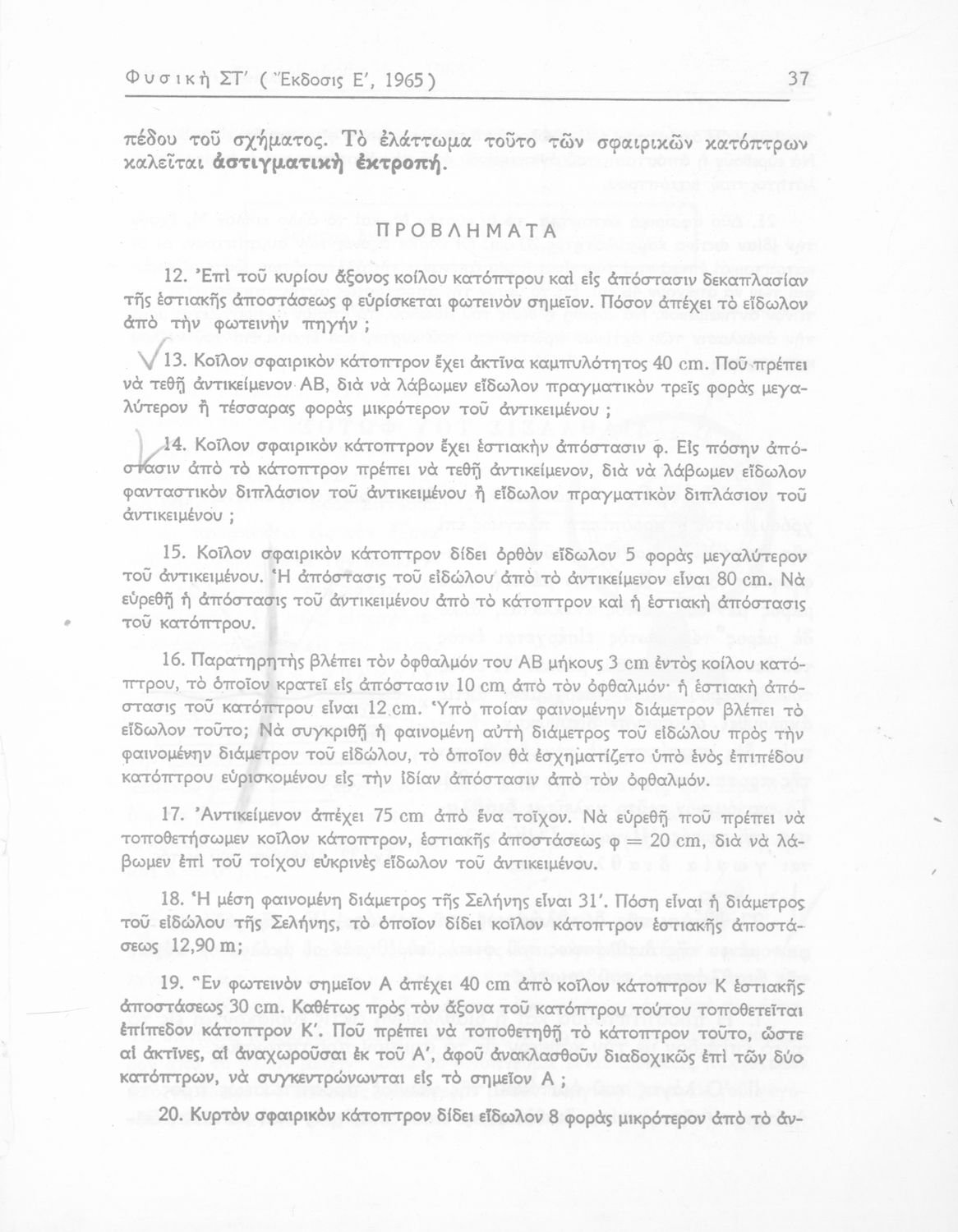 Σχολικό εγχειρίδιο Φυσικής. Το βιβλίο χωρίζεται σε τέσσερα μέρη καθένα από τα οποία περιγράφει συγκεκριμένο πεδίο της φυσικής (οπτική, μαγνητισμός, ηλεκτρισμός κλπ.). Ερμηνεύονται τα φυσικά μεγέθη, δίνονται οι ορισμοί και οι θεμελιώδης έννοιες για όλα τα πεδία ξεχωριστά.
