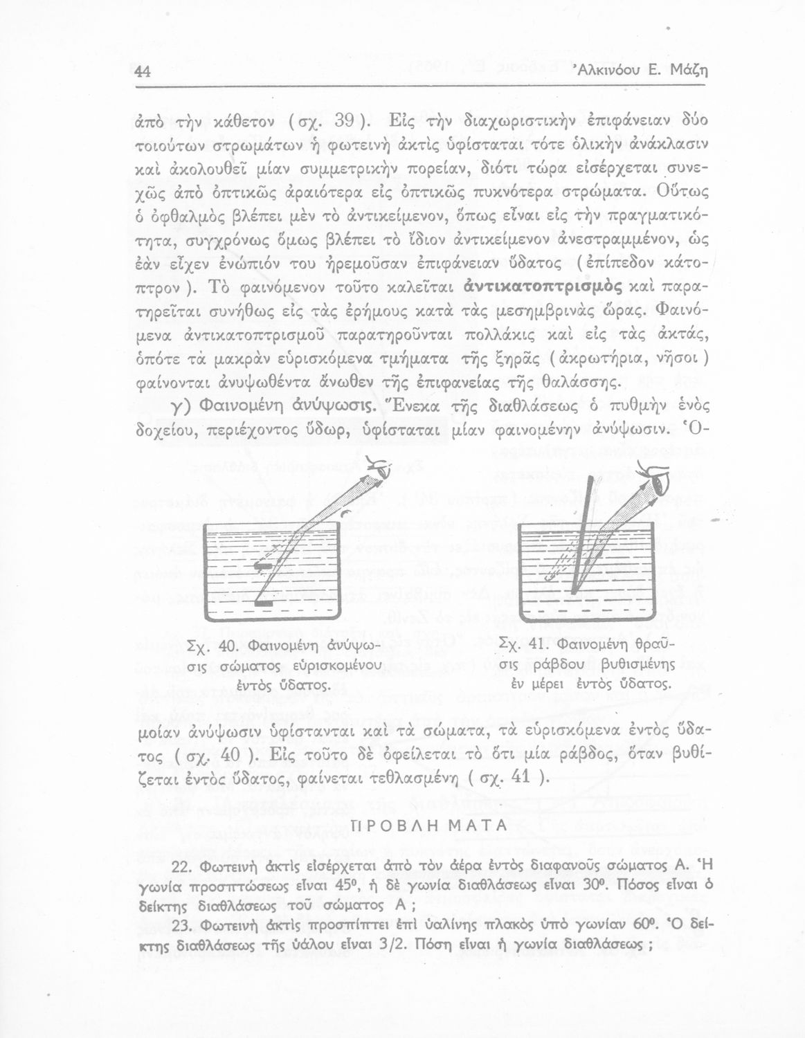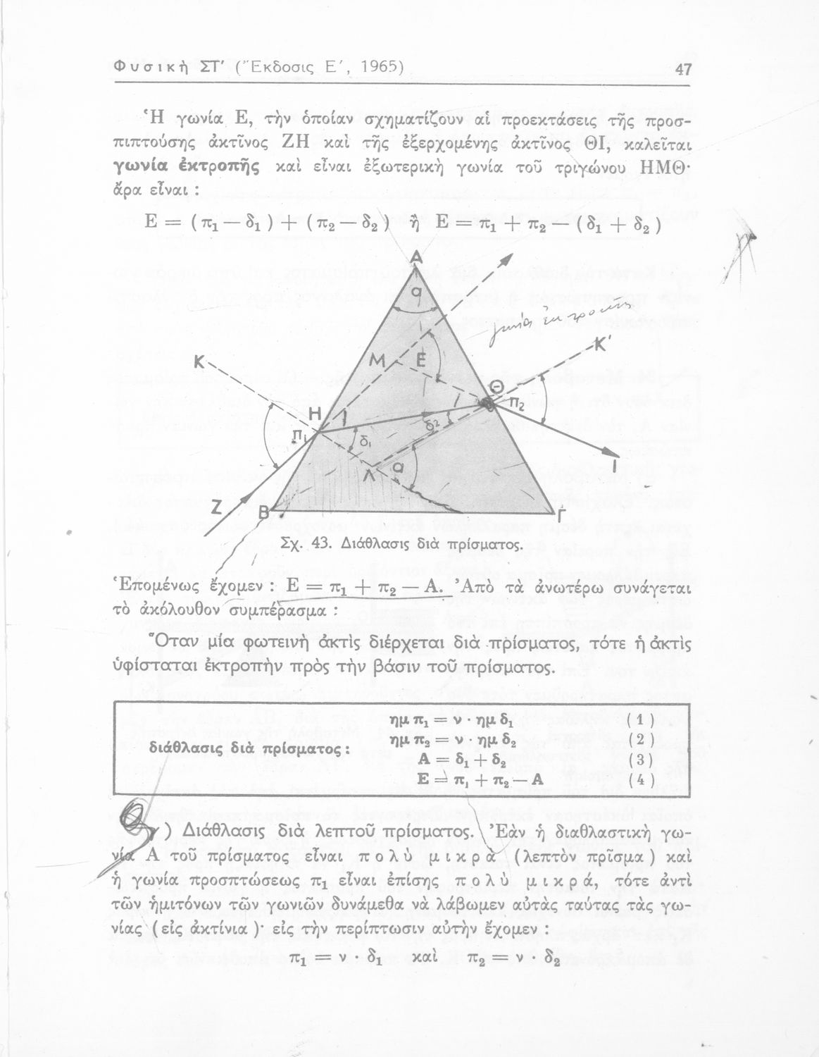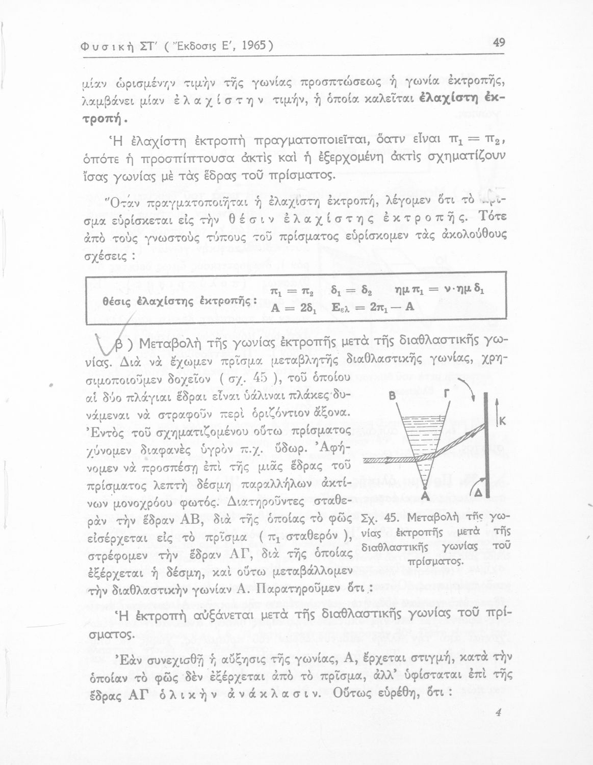 Σχολικό εγχειρίδιο Φυσικής. Το βιβλίο χωρίζεται σε τέσσερα μέρη καθένα από τα οποία περιγράφει συγκεκριμένο πεδίο της φυσικής (οπτική, μαγνητισμός, ηλεκτρισμός κλπ.). Ερμηνεύονται τα φυσικά μεγέθη, δίνονται οι ορισμοί και οι θεμελιώδης έννοιες για όλα τα πεδία ξεχωριστά.