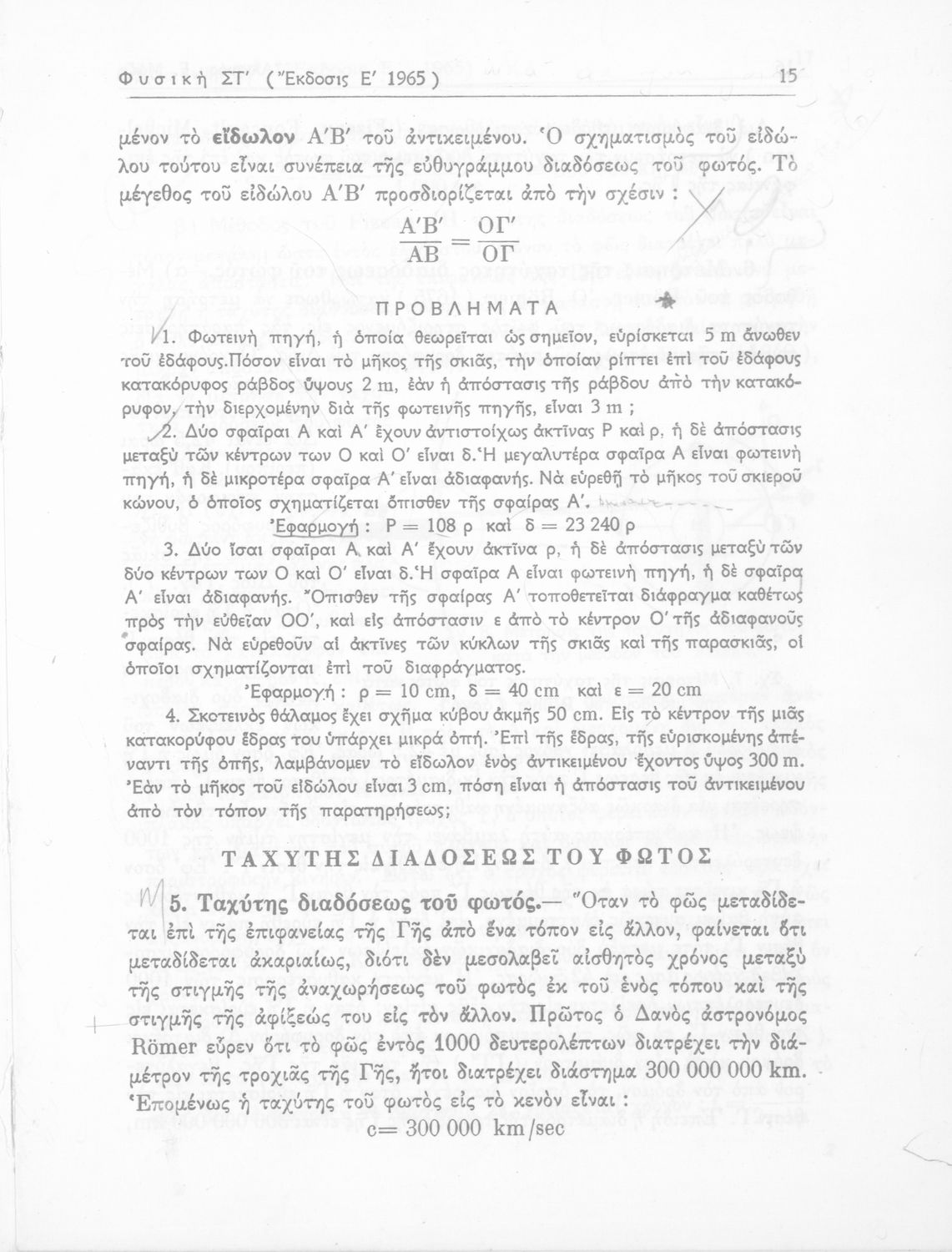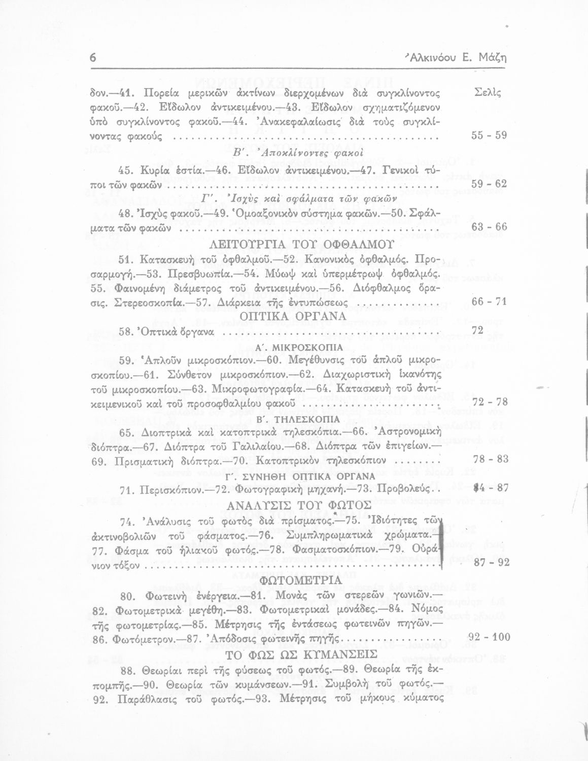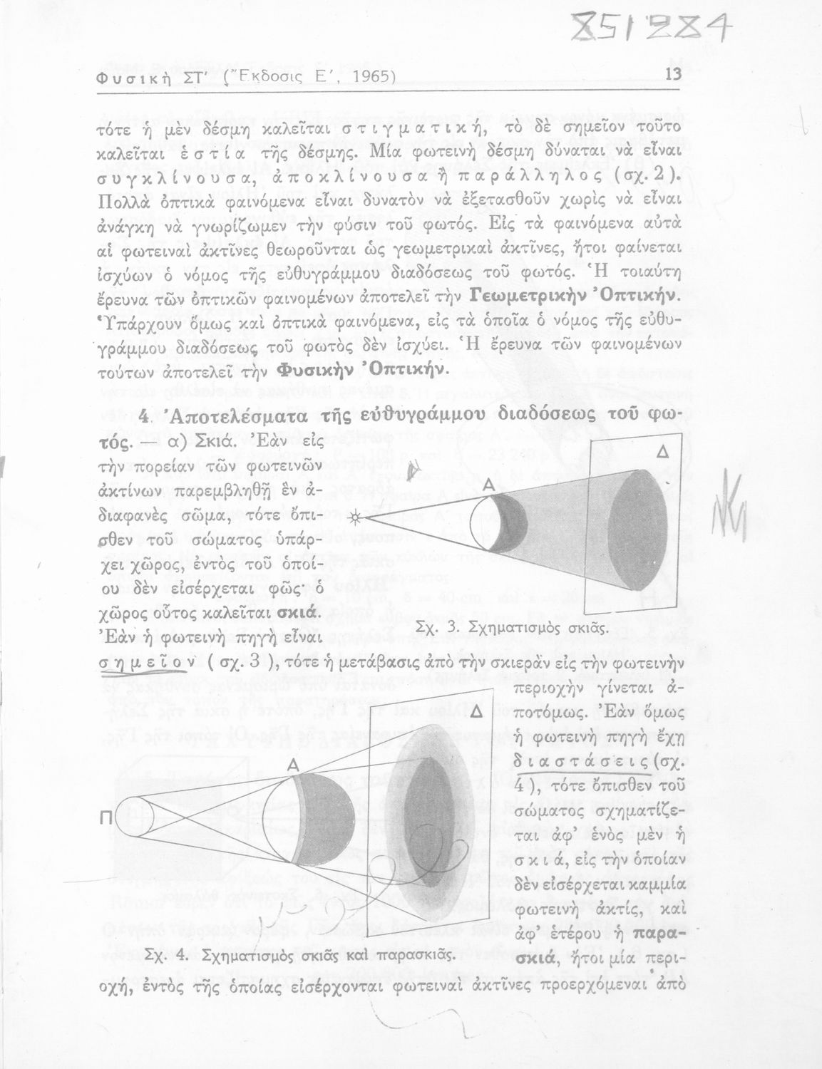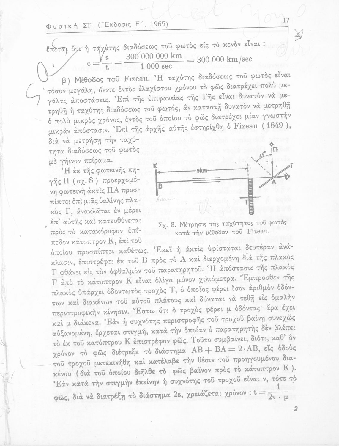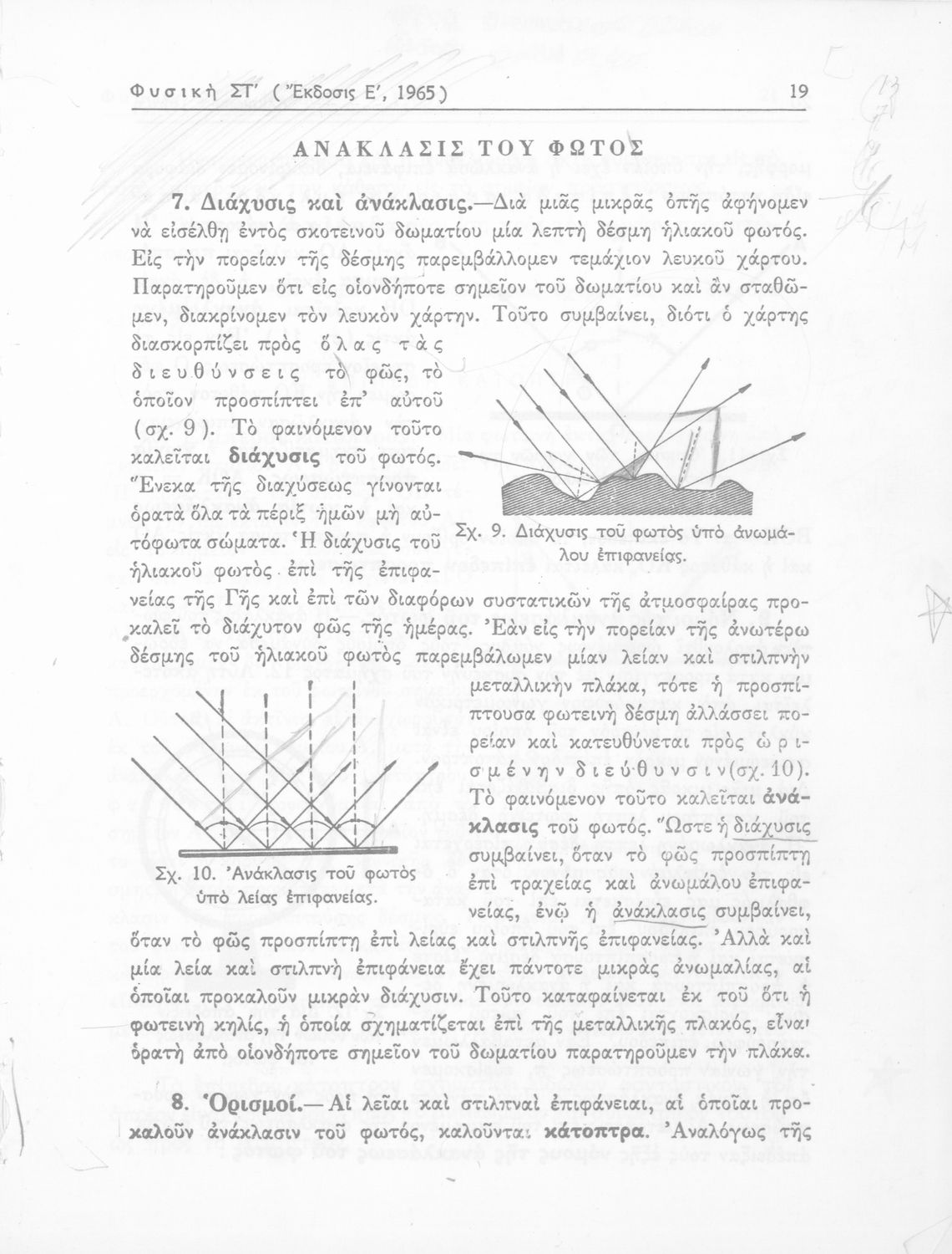 Σχολικό εγχειρίδιο Φυσικής. Το βιβλίο χωρίζεται σε τέσσερα μέρη καθένα από τα οποία περιγράφει συγκεκριμένο πεδίο της φυσικής (οπτική, μαγνητισμός, ηλεκτρισμός κλπ.). Ερμηνεύονται τα φυσικά μεγέθη, δίνονται οι ορισμοί και οι θεμελιώδης έννοιες για όλα τα πεδία ξεχωριστά.