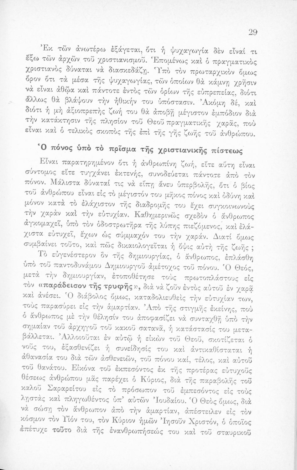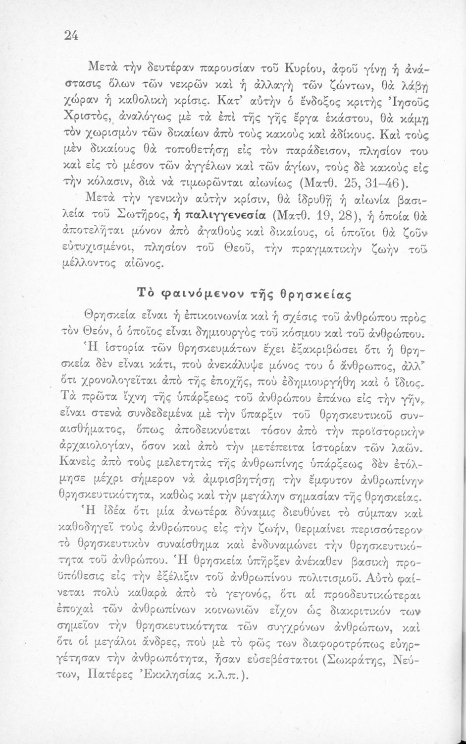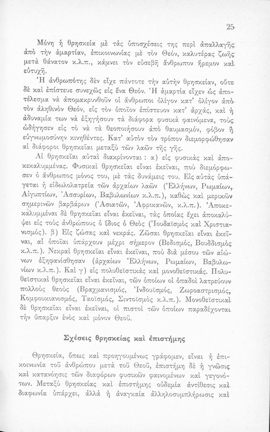 Παρουσίαση περιεχομένου: Σχολικό εγχειρίδιο Θρησκευτικών για τη Γ΄ Γυμνασίου τεχνικών, βοηθών, εργοδηγών που περιέχει τη διδασκαλία της Εκκλησίας περί Θεού, χριστολογικές έριδες και τη σχέση θρησκείας και επιστήμης. Ο συγγραφέας υπήρξε τα. διευθυντής της Εκκλησιαστικής γεωργικής σχολής .