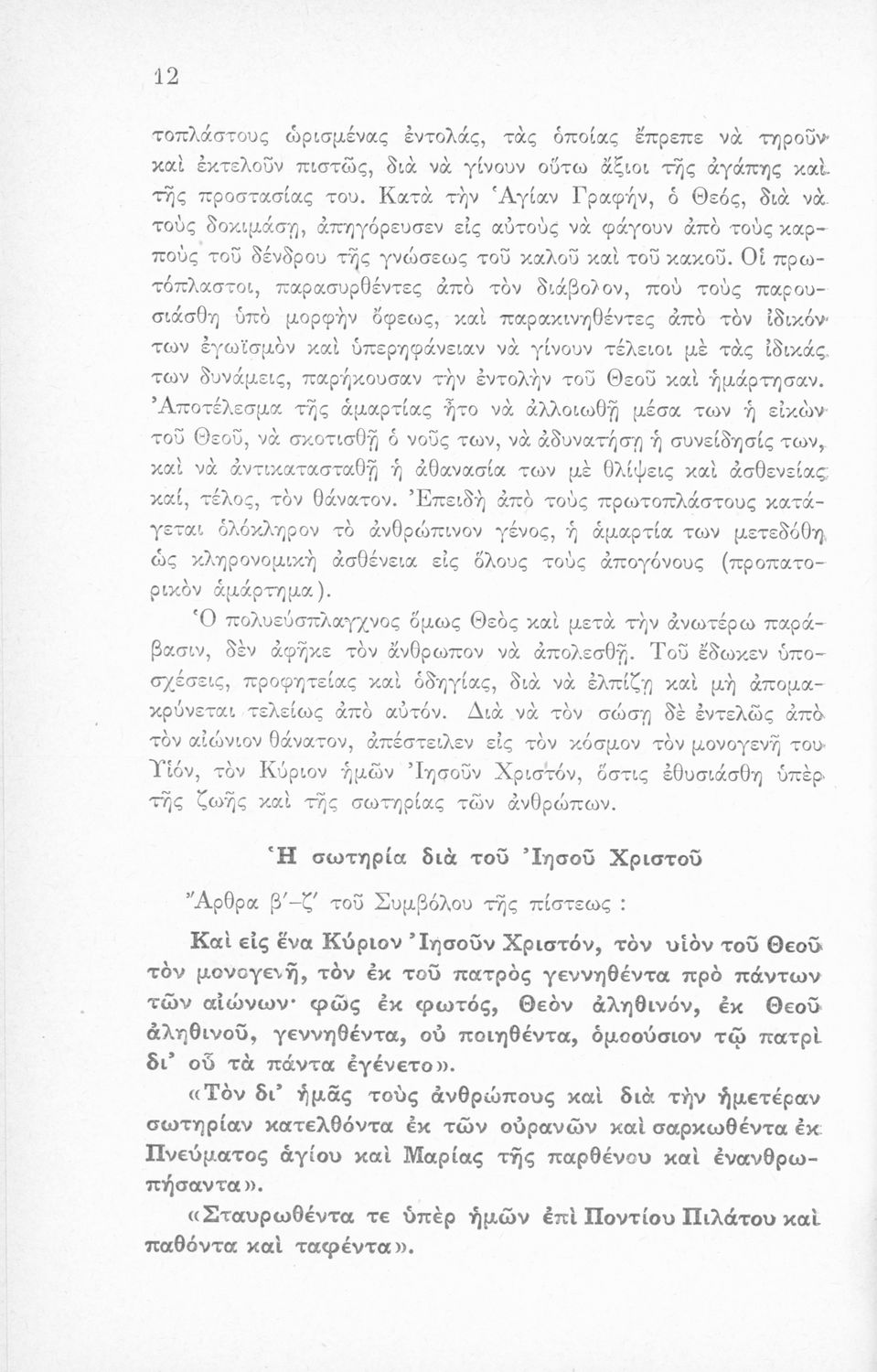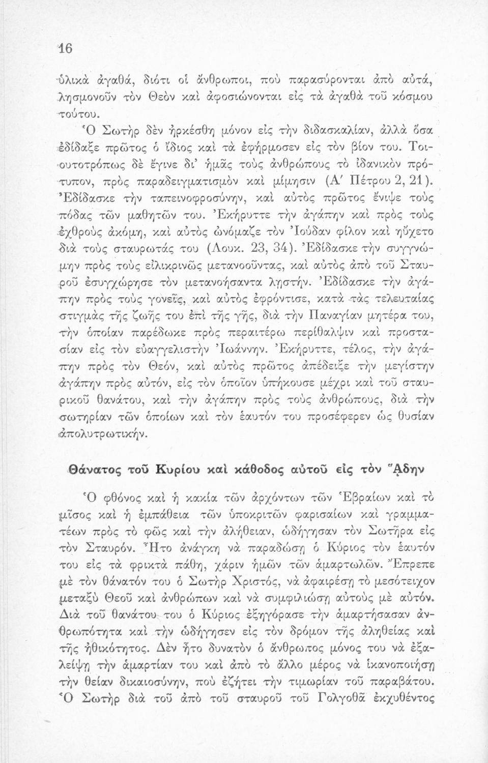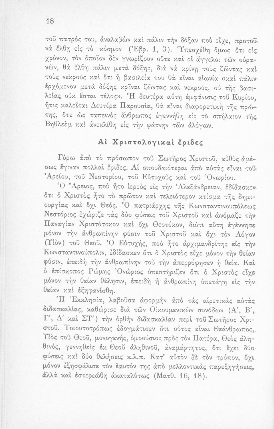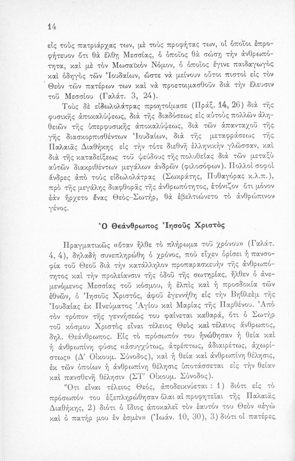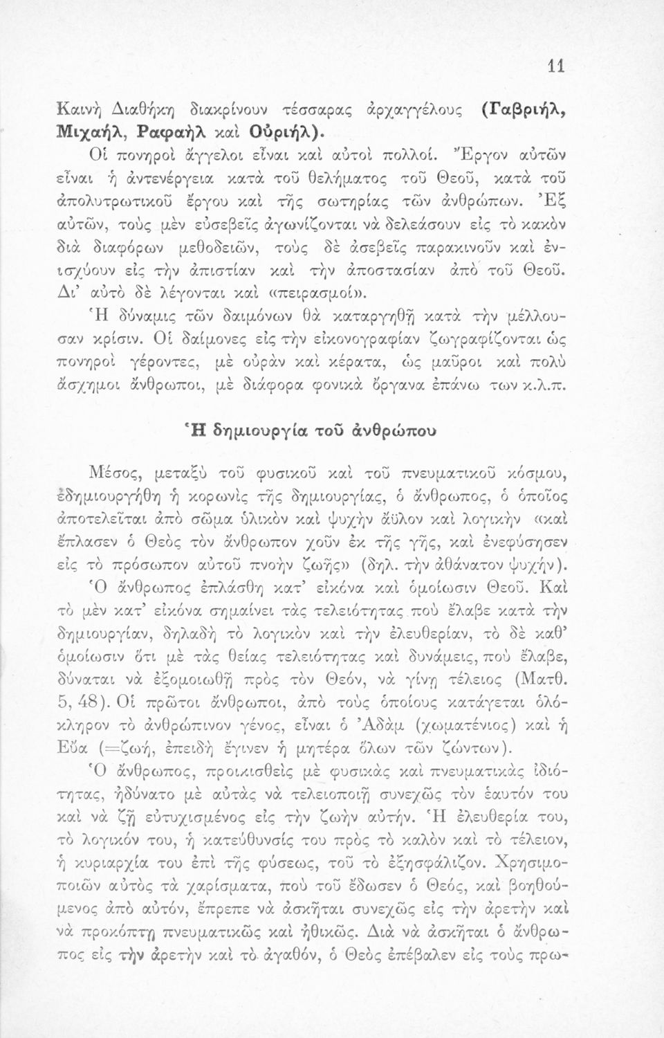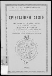 Βαθμίδα εκπαίδευσης: Δευτεροβάθμια Τάξη: Γ' Σχολών Τεχνικών Βοηθών - Εργοδηγών Μάθημα: Θρησκευτικά Γλώσσα: Καθαρεύουσα Παρουσίαση περιεχομένου: Σχολικό εγχειρίδιο Θρησκευτικών για τη Γ΄ Γυμνασίου τεχνικών, βοηθών, εργοδηγών που περιέχει τη διδασκαλία της Εκκλησίας περί Θεού, χριστολογικές έριδες και τη σχέση θρησκείας και επιστήμης. Ο συγγραφέας υπήρξε τα. διευθυντής της Εκκλησιαστικής γεωργικής σχολής . |