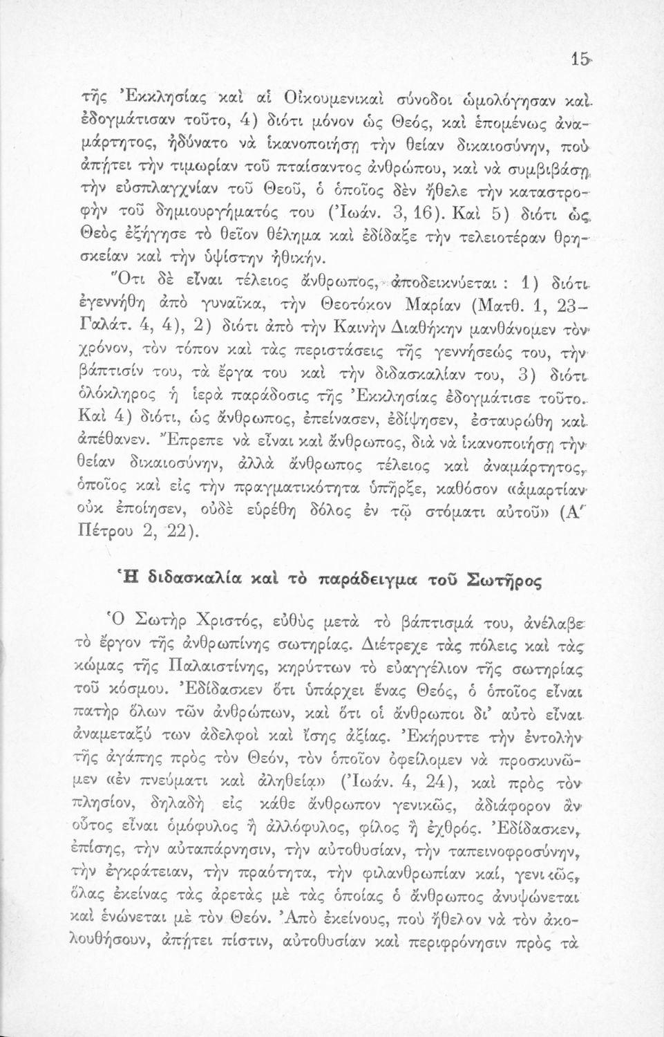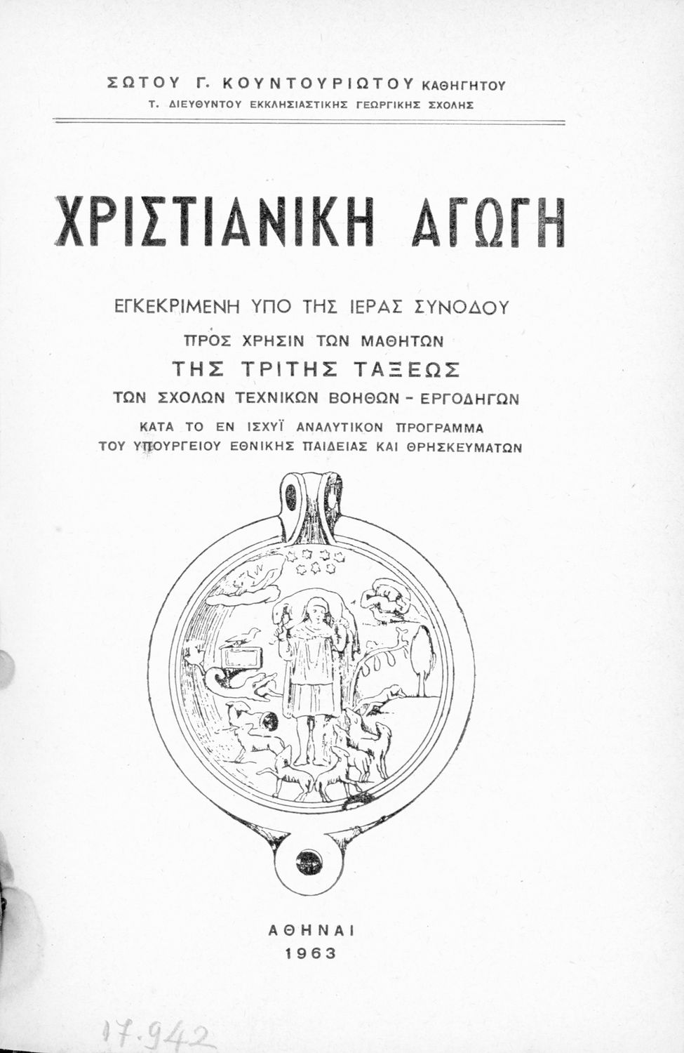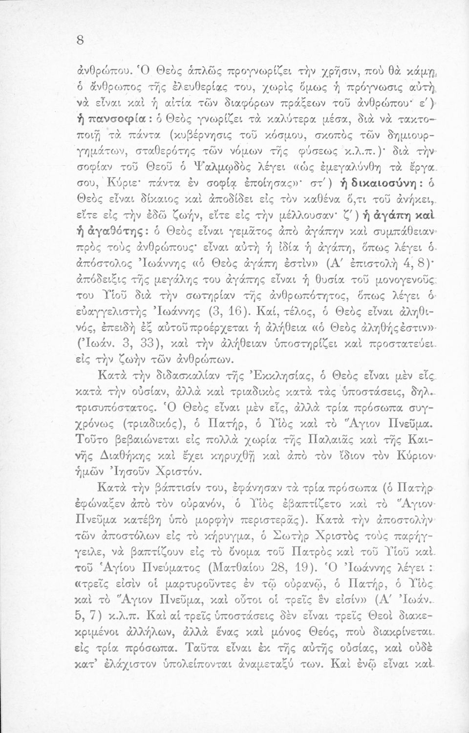 Σχολικό εγχειρίδιο Θρησκευτικών για τη Γ΄ Γυμνασίου τεχνικών, βοηθών, εργοδηγών που περιέχει τη διδασκαλία της Εκκλησίας περί Θεού, χριστολογικές έριδες και τη σχέση θρησκείας και επιστήμης. Ο συγγραφέας υπήρξε τα. διευθυντής της Εκκλησιαστικής γεωργικής σχολής .