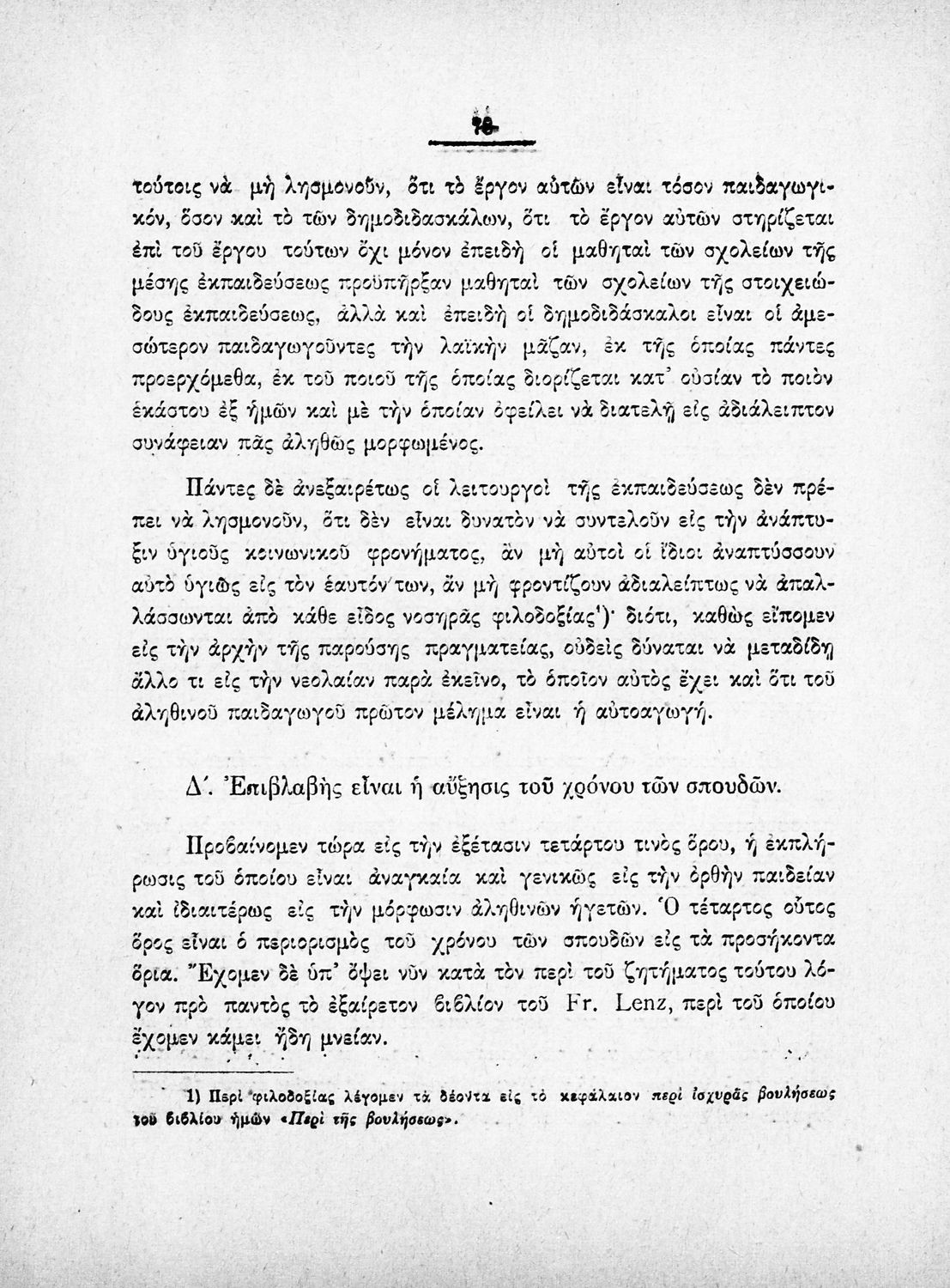 Σύγγραμμα που περιέχει τις απόψεις του γνωστού συντηρητικού παιδαγωγού της εποχής για την κρίση του εκπαιδευτικού συστήματος.