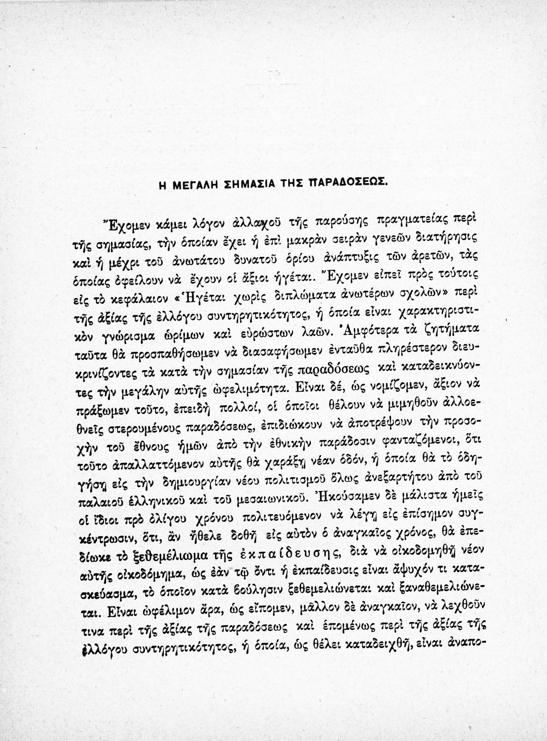 Παρουσίαση περιεχομένου: Σύγγραμμα που περιέχει τις απόψεις του γνωστού συντηρητικού παιδαγωγού της εποχής για την κρίση του εκπαιδευτικού συστήματος.