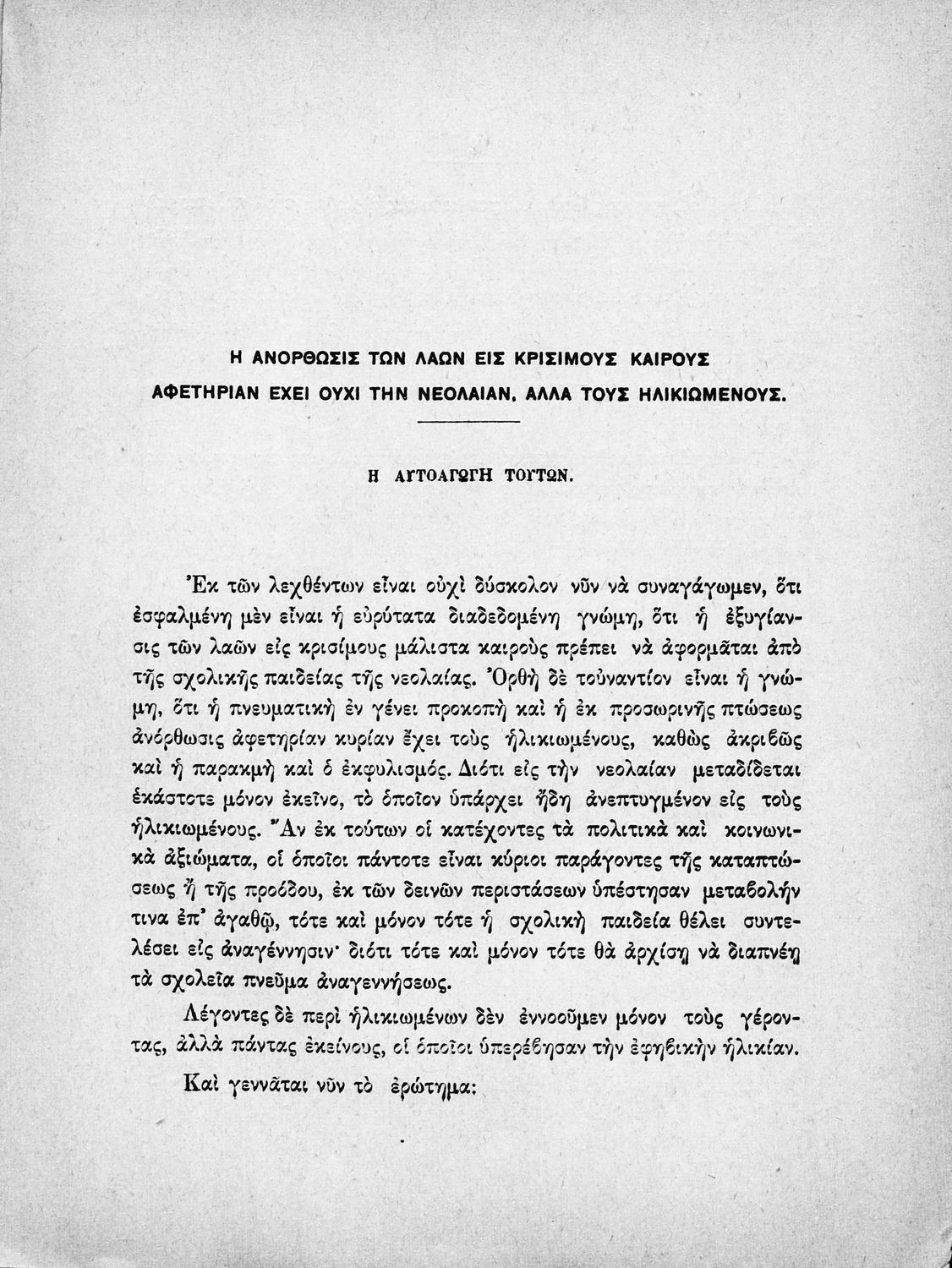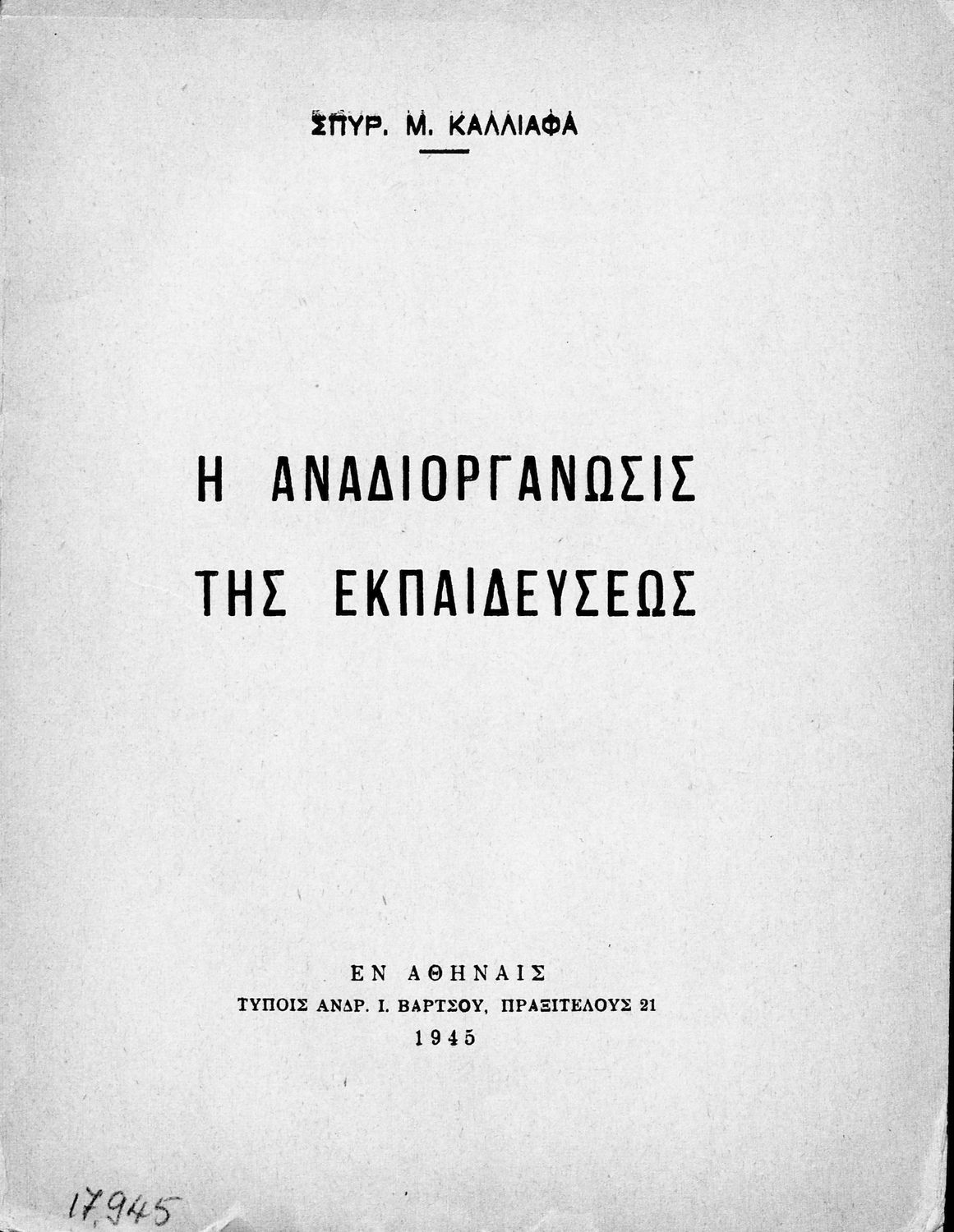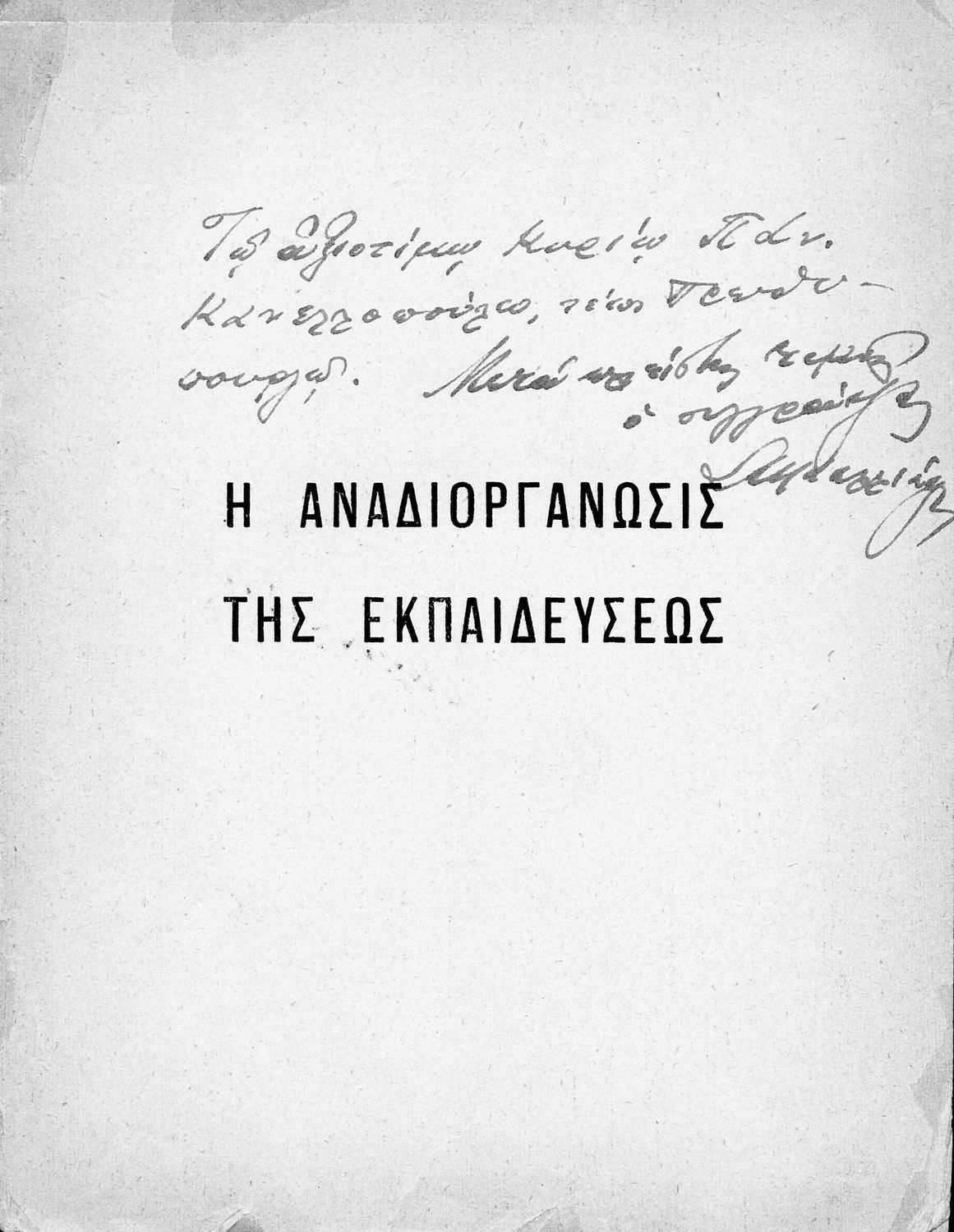 Τίτλος: Η αναδιοργάνωσις της Εκπαιδεύσεως