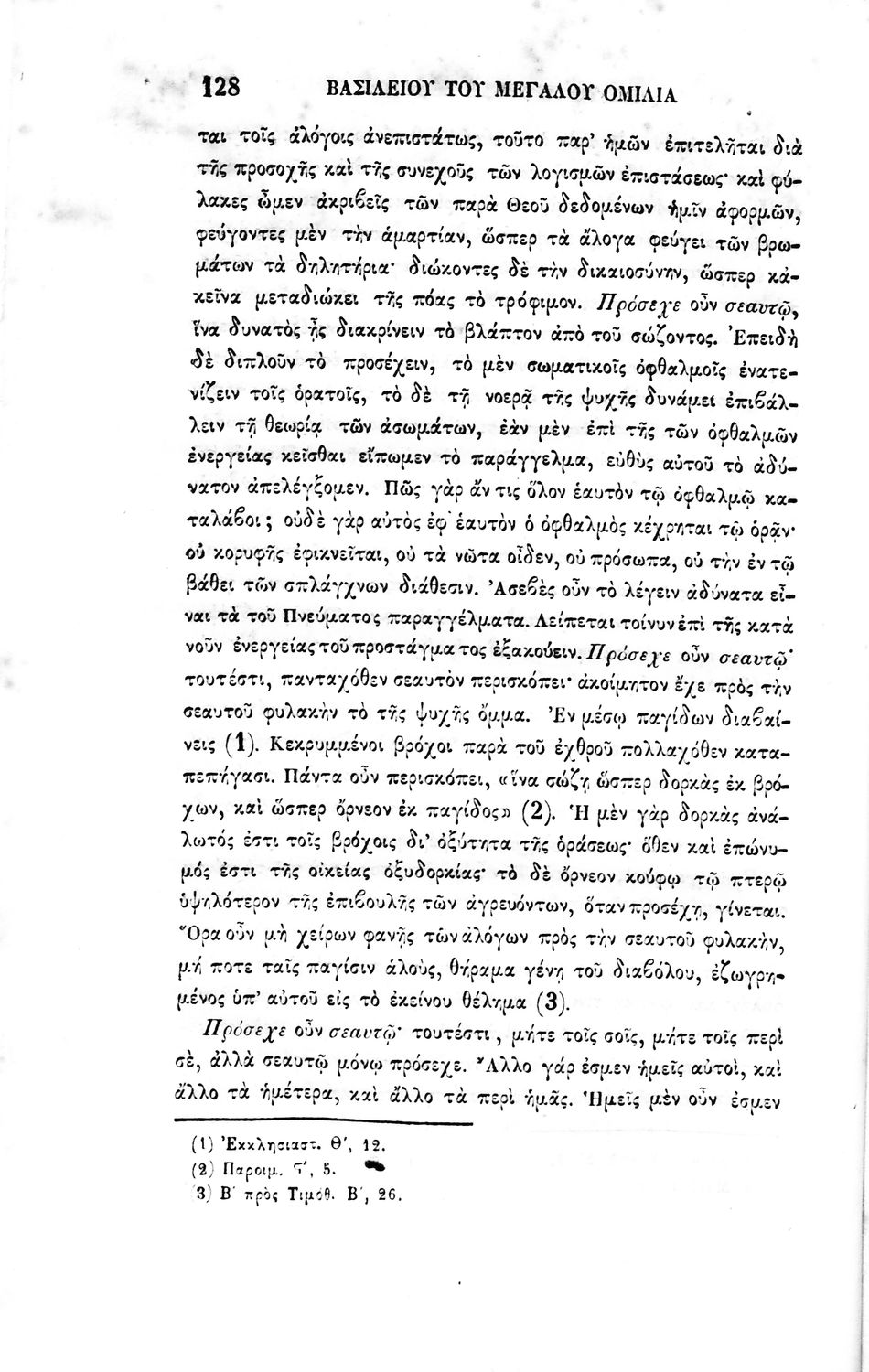 Σχολικό εγχειρίδιο Αρχαίων Ελληνικών για τα Ιερατικά Σχολεία. Ο τόμος περιέχει «..τεμάχια κατ’ εκλογήν εκ της Ξενοφώντος Κύρου Ανάβασεως και εκ των Γεωγραφικών και Εθνογραφικών Στράβωνος, Διοδώρου και άλλων, τον προς τους εγκαταλείψαντας την σύναξιν της Εκκλησίας κτλ. Λόγον Ιωάννου του Χρυσόστομου και τους, εις το Πρόσεχε σεαυτώ και κατά των Οργιζομένων, λόγους Βασιλείου του Μεγάλου»