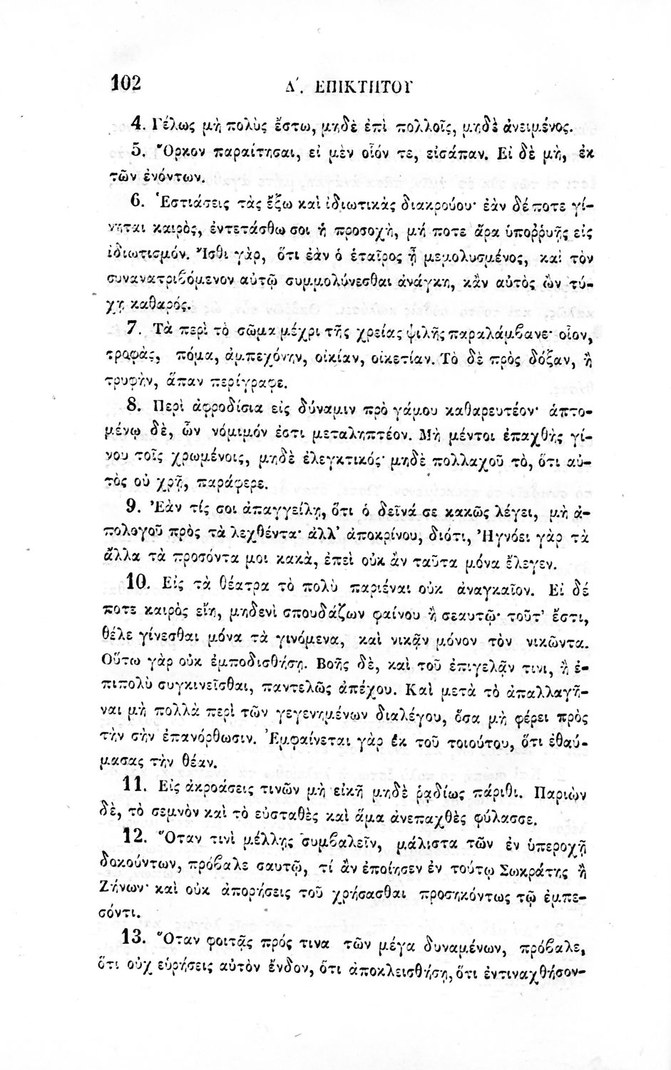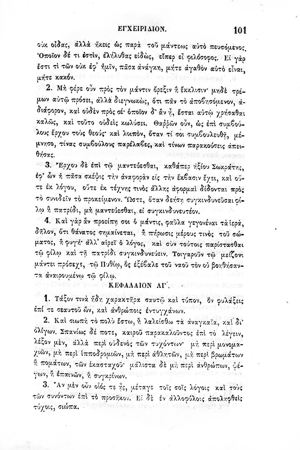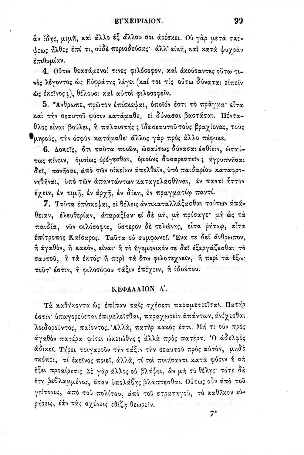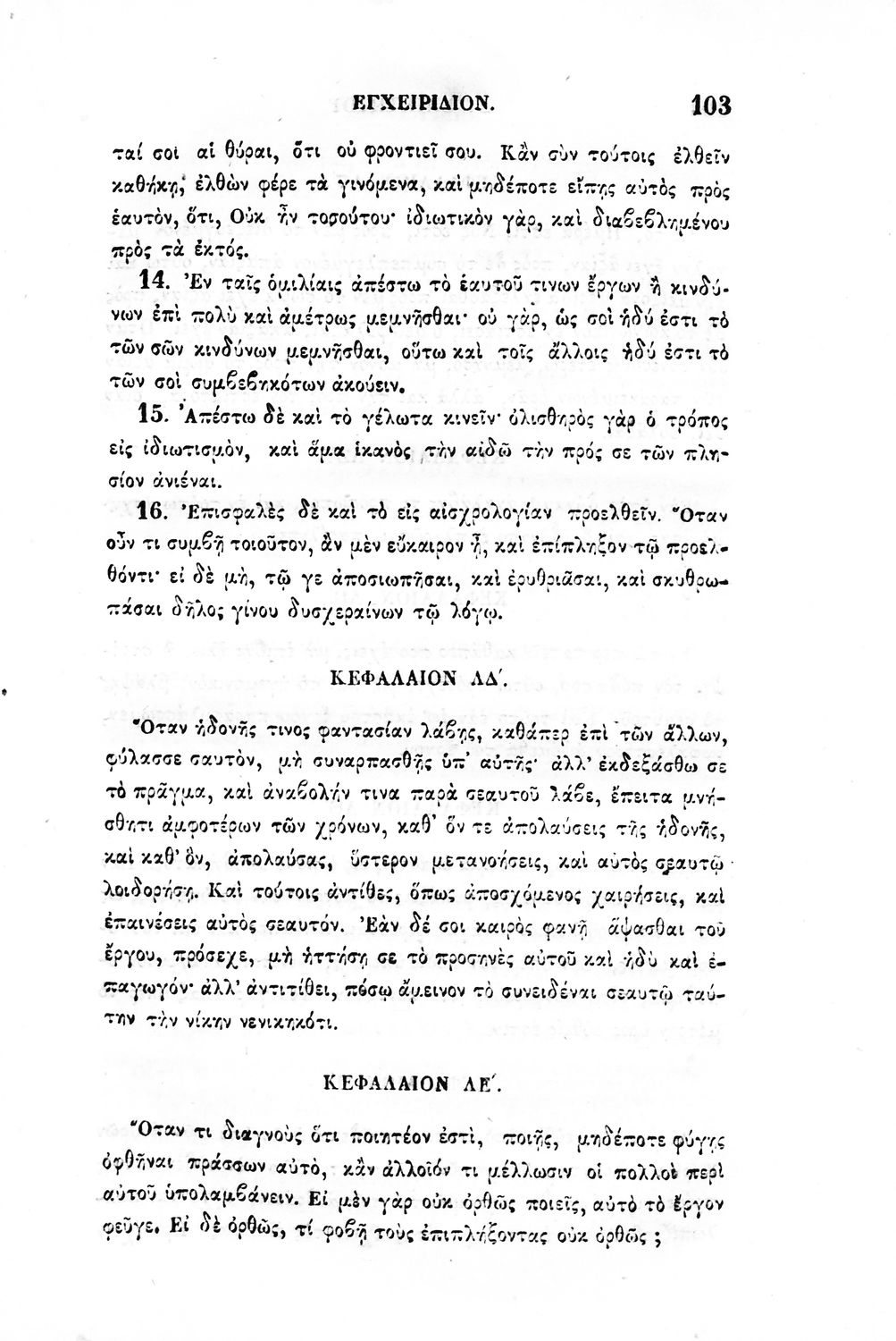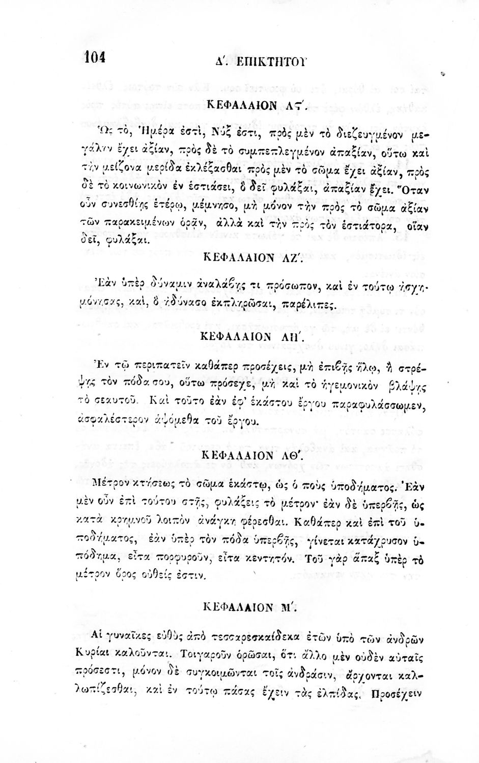 Σχολικό εγχειρίδιο Αρχαίων Ελληνικών για τα Ιερατικά Σχολεία. Ο τόμος περιέχει: «Ξενοφώντος εκ των Ελληνικών Ιστοριών και εκ των Απομνημονευμάτων Σωκράτους, αποσπάσματα –Ισοκράτους, την προς Δημόνικον παραίνεσιν, και εκ των λόγων Αρεοπαγιτικού, Συμμαχικού και Παναθηναϊκού αποσπάσματα- το Εγχειρίδιον του Επίκτητου- τον Πίνακα του Κέβητος- την προς τους νέους παραίνεσιν Βασιλείου του Μεγάλου- και τους Κατηχητικούς και Μυσταγωγικούς λόγους του Κυρίλλου, του Ιεροσολύμων Αρχιεπισκόπου»