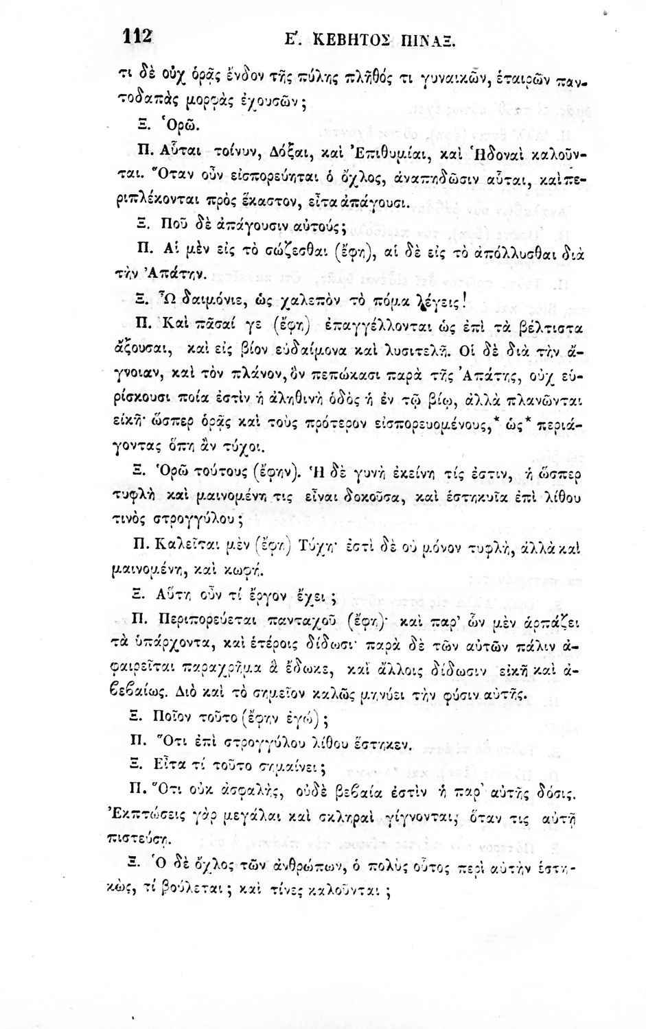 LDR 01985 2200181 4500 035 ## _a01-17948 040 ## _aΙνστιτούτο Εκπαιδευτικής Πολιτικής 041 ## _ael 110 ## _a17948 245 0# _aΣειρά εγκύκλιων μαθημάτων προς χρήσιν των Ιερατικών Σχολείων, Συνερανισθείσα. Τόμος Γ΄ 260 ## _aΑθήνα _bΤυπογραφείο: Δ. Ειρηνίδου _c1859 300 ## _a480 _c21 520 ## _aΣχολικό εγχειρίδιο Αρχαίων Ελληνικών για τα Ιερατικά Σχολεία. Ο τόμος περιέχει: «Ξενοφώντος εκ των Ελληνικών Ιστοριών και εκ των Απομνημονευμάτων Σωκράτους, αποσπάσματα –Ισοκράτους, την προς Δημόνικον παραίνεσιν, και εκ των λόγων Αρεοπαγιτικού, Συμμαχικού και Παναθηναϊκού αποσπάσματα- το Εγχειρίδιον του Επίκτητου- τον Πίνακα του Κέβητος- την προς τους νέους παραίνεσιν Βασιλείου του Μεγάλου- και τους Κατηχητικούς και Μυσταγωγικούς λόγους του Κυρίλλου, του Ιεροσολύμων Αρχιεπισκόπου» Για την έκδοση του γνωμοδότησε η Ιερά Σύνοδος της Ελλάδας και εγκρίθηκε από τον Υπουργό των Εκκλησιαστικών και της Δημόσιας Διοίκησης. Εκδόθηκε με δαπάνη του Δημόσιου ταμείου. 521 ## _aΙερατικά Σχολεία 522 ## _aΕλλάδα 546 ## _aΑρχαία Ελληνικά 563 ## _aΜαλακό Εξώφυλλο 650 #4 _aΙερατικές σχολές _aΙσοκράτης _aΜέγας Βασίλειος _aΞενοφώντας