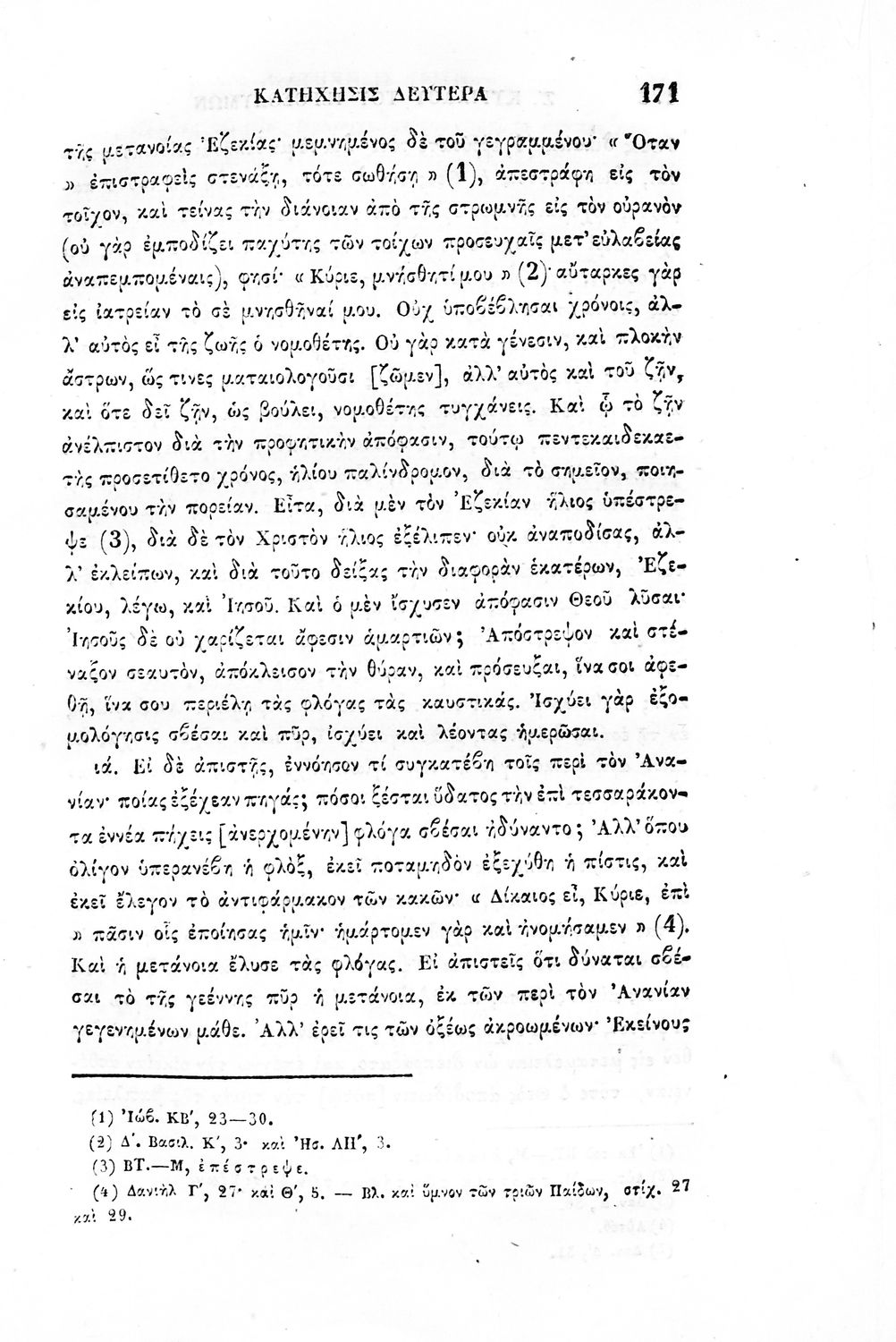 Σχολικό εγχειρίδιο Αρχαίων Ελληνικών για τα Ιερατικά Σχολεία. Ο τόμος περιέχει: «Ξενοφώντος εκ των Ελληνικών Ιστοριών και εκ των Απομνημονευμάτων Σωκράτους, αποσπάσματα –Ισοκράτους, την προς Δημόνικον παραίνεσιν, και εκ των λόγων Αρεοπαγιτικού, Συμμαχικού και Παναθηναϊκού αποσπάσματα- το Εγχειρίδιον του Επίκτητου- τον Πίνακα του Κέβητος- την προς τους νέους παραίνεσιν Βασιλείου του Μεγάλου- και τους Κατηχητικούς και Μυσταγωγικούς λόγους του Κυρίλλου, του Ιεροσολύμων Αρχιεπισκόπου»