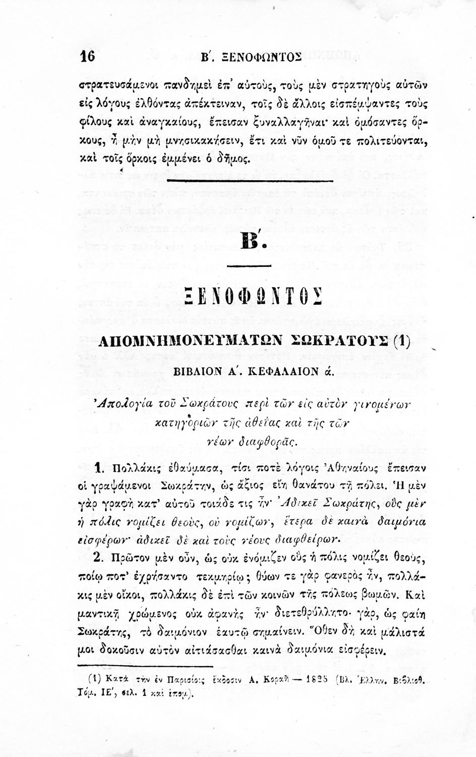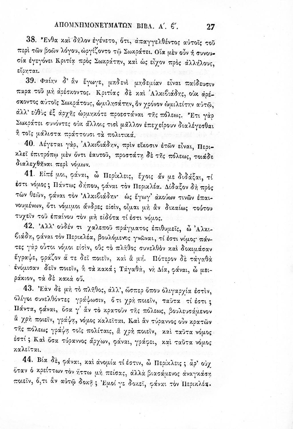 Σχολικό εγχειρίδιο Αρχαίων Ελληνικών για τα Ιερατικά Σχολεία. Ο τόμος περιέχει: «Ξενοφώντος εκ των Ελληνικών Ιστοριών και εκ των Απομνημονευμάτων Σωκράτους, αποσπάσματα –Ισοκράτους, την προς Δημόνικον παραίνεσιν, και εκ των λόγων Αρεοπαγιτικού, Συμμαχικού και Παναθηναϊκού αποσπάσματα- το Εγχειρίδιον του Επίκτητου- τον Πίνακα του Κέβητος- την προς τους νέους παραίνεσιν Βασιλείου του Μεγάλου- και τους Κατηχητικούς και Μυσταγωγικούς λόγους του Κυρίλλου, του Ιεροσολύμων Αρχιεπισκόπου»