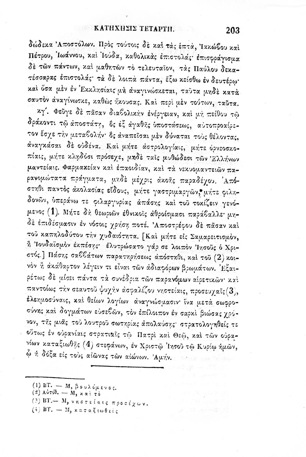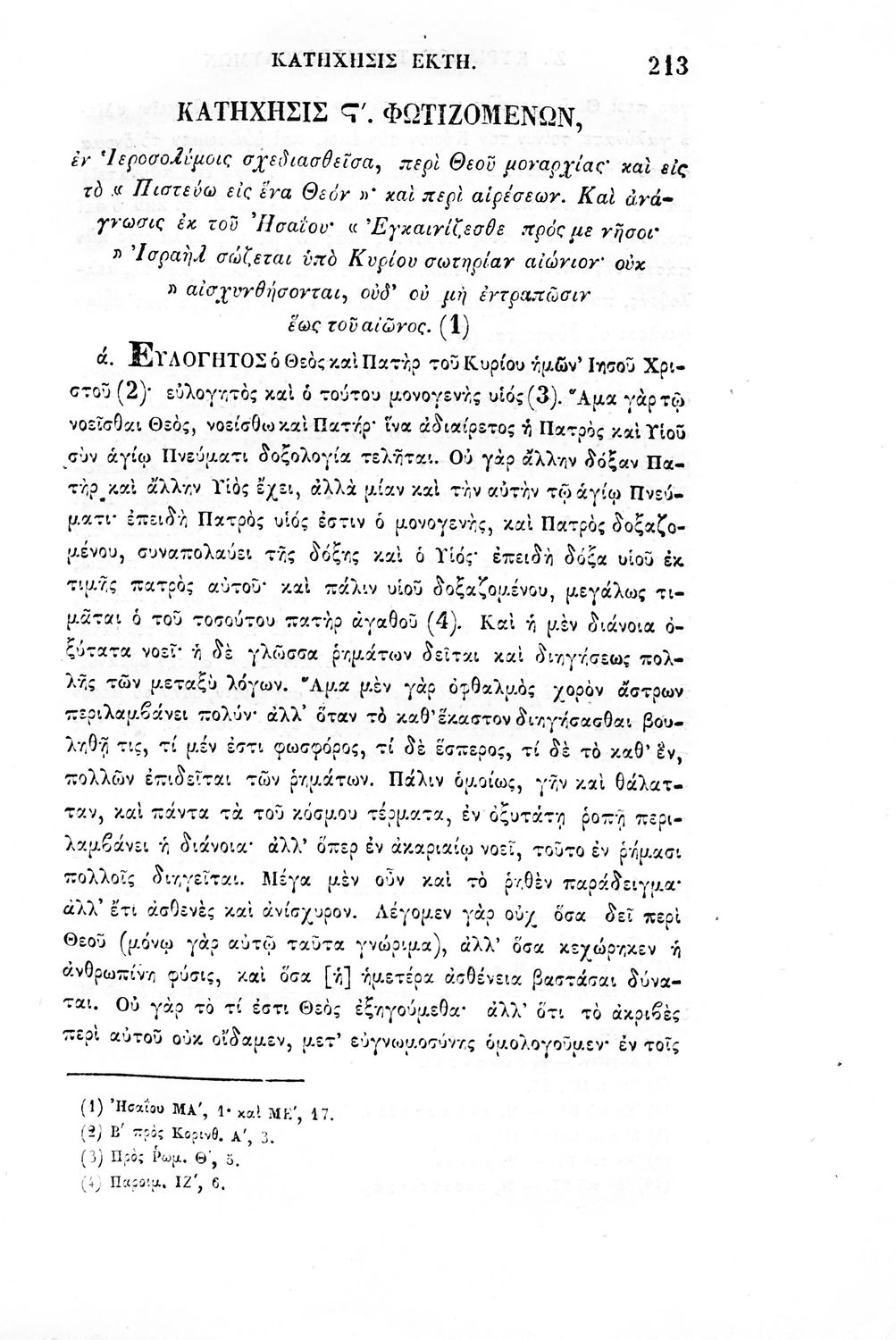 Σχολικό εγχειρίδιο Αρχαίων Ελληνικών για τα Ιερατικά Σχολεία. Ο τόμος περιέχει: «Ξενοφώντος εκ των Ελληνικών Ιστοριών και εκ των Απομνημονευμάτων Σωκράτους, αποσπάσματα –Ισοκράτους, την προς Δημόνικον παραίνεσιν, και εκ των λόγων Αρεοπαγιτικού, Συμμαχικού και Παναθηναϊκού αποσπάσματα- το Εγχειρίδιον του Επίκτητου- τον Πίνακα του Κέβητος- την προς τους νέους παραίνεσιν Βασιλείου του Μεγάλου- και τους Κατηχητικούς και Μυσταγωγικούς λόγους του Κυρίλλου, του Ιεροσολύμων Αρχιεπισκόπου»