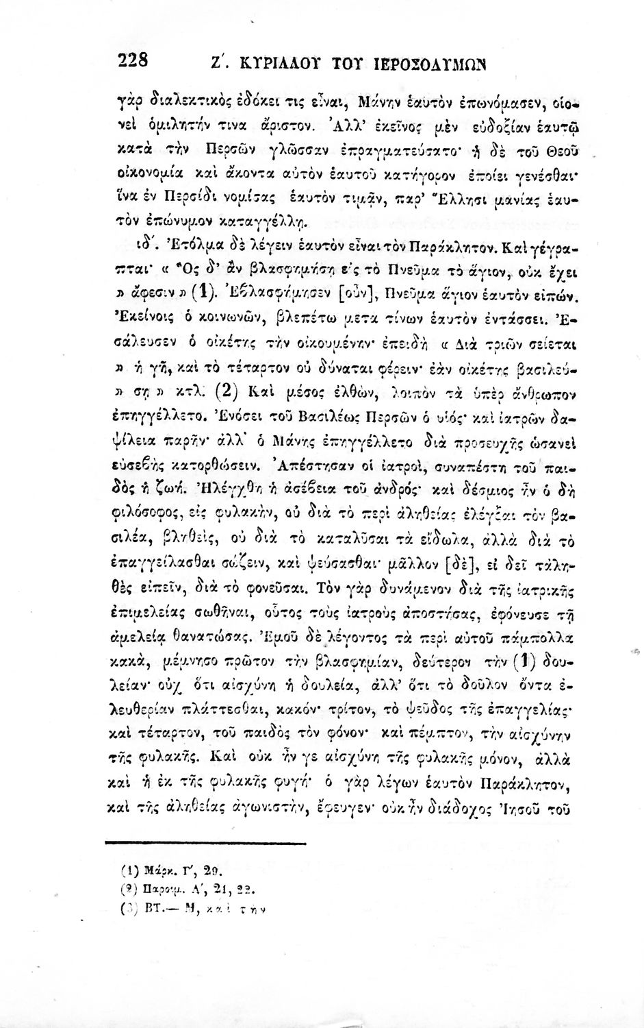 Σχολικό εγχειρίδιο Αρχαίων Ελληνικών για τα Ιερατικά Σχολεία. Ο τόμος περιέχει: «Ξενοφώντος εκ των Ελληνικών Ιστοριών και εκ των Απομνημονευμάτων Σωκράτους, αποσπάσματα –Ισοκράτους, την προς Δημόνικον παραίνεσιν, και εκ των λόγων Αρεοπαγιτικού, Συμμαχικού και Παναθηναϊκού αποσπάσματα- το Εγχειρίδιον του Επίκτητου- τον Πίνακα του Κέβητος- την προς τους νέους παραίνεσιν Βασιλείου του Μεγάλου- και τους Κατηχητικούς και Μυσταγωγικούς λόγους του Κυρίλλου, του Ιεροσολύμων Αρχιεπισκόπου»