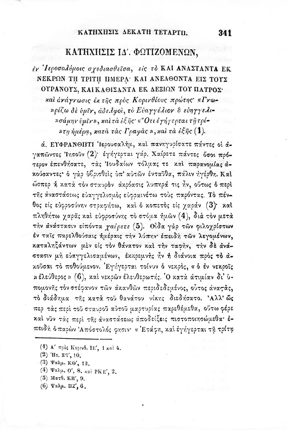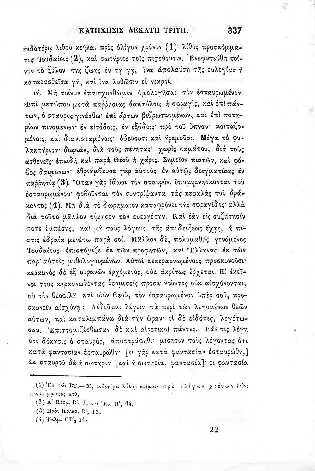 Σχολικό εγχειρίδιο Αρχαίων Ελληνικών για τα Ιερατικά Σχολεία. Ο τόμος περιέχει: «Ξενοφώντος εκ των Ελληνικών Ιστοριών και εκ των Απομνημονευμάτων Σωκράτους, αποσπάσματα –Ισοκράτους, την προς Δημόνικον παραίνεσιν, και εκ των λόγων Αρεοπαγιτικού, Συμμαχικού και Παναθηναϊκού αποσπάσματα- το Εγχειρίδιον του Επίκτητου- τον Πίνακα του Κέβητος- την προς τους νέους παραίνεσιν Βασιλείου του Μεγάλου- και τους Κατηχητικούς και Μυσταγωγικούς λόγους του Κυρίλλου, του Ιεροσολύμων Αρχιεπισκόπου»