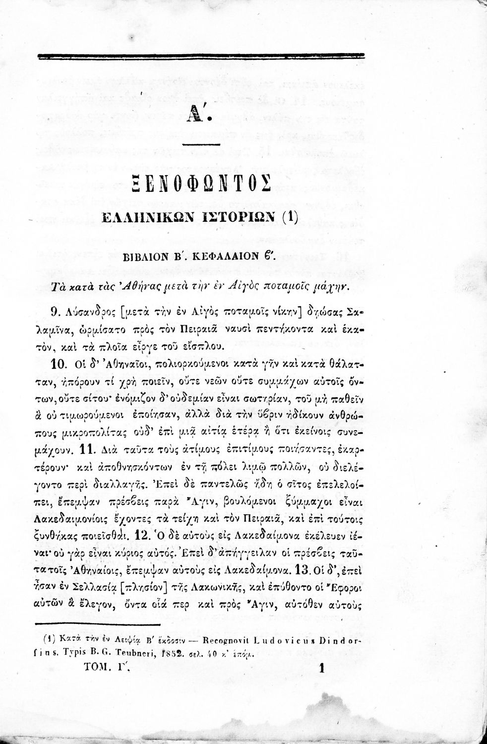 Σχολικό εγχειρίδιο Αρχαίων Ελληνικών για τα Ιερατικά Σχολεία. Ο τόμος περιέχει «..τεμάχια κατ’ εκλογήν εκ της Ξενοφώντος Κύρου Ανάβασεως και εκ των Γεωγραφικών και Εθνογραφικών Στράβωνος, Διοδώρου και άλλων, ...