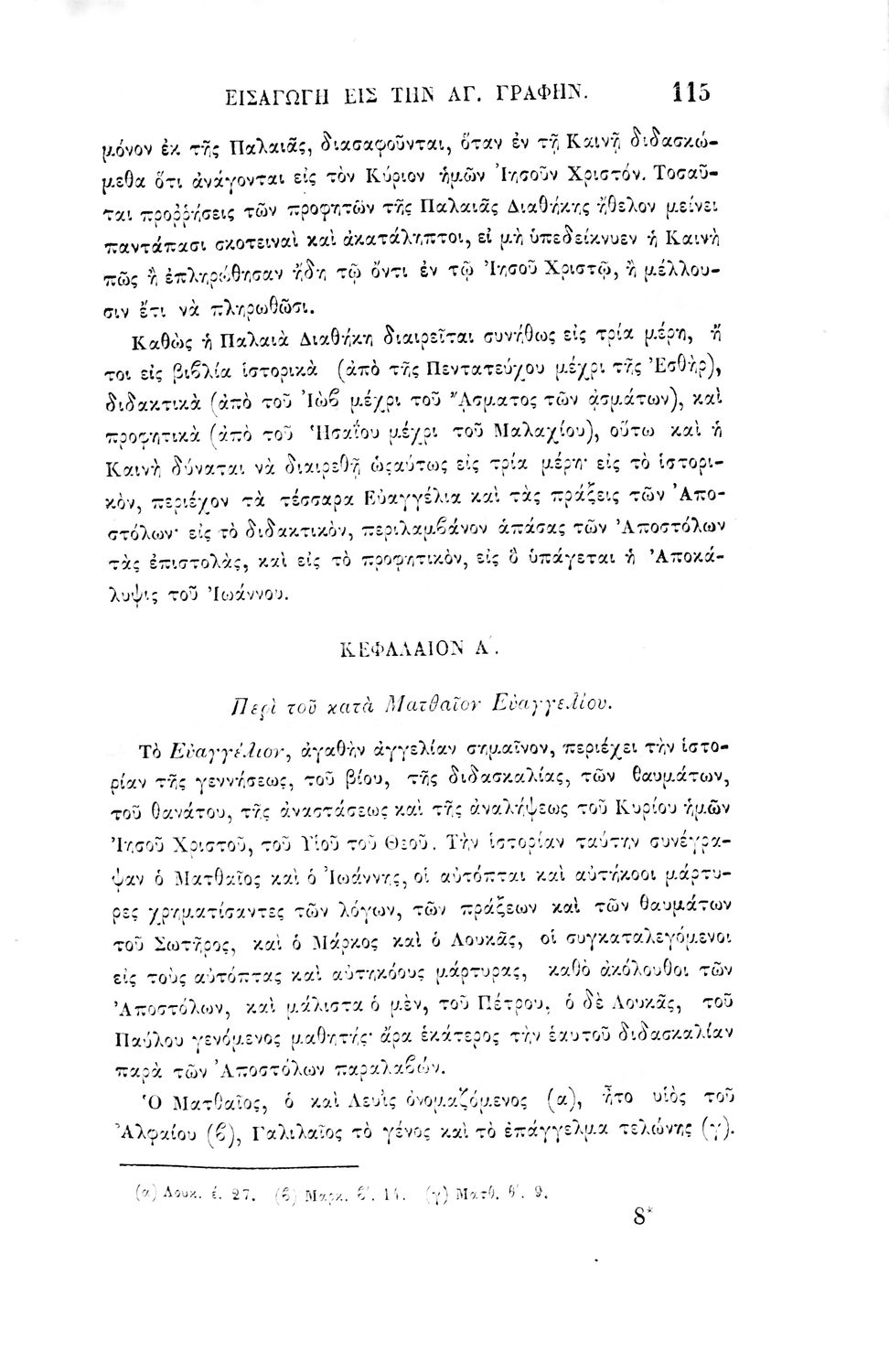 Σχολικό εγχειρίδιο Θρησκευτικών για τα Ιερατικά σχολεία με τη γνωμοδότηση της Ιεράς Συνόδου και έγκριση του υπουργού των Εκκλησιαστικών και της δημόσιας εκπαίδευσης. Ο συγγραφέας υπήρξε τακτικός καθηγητής της Θεολογίας στο Πανεπιστήμιο του Όθωνος και στην εκκλησιαστική Ριζάρειο σχολή.