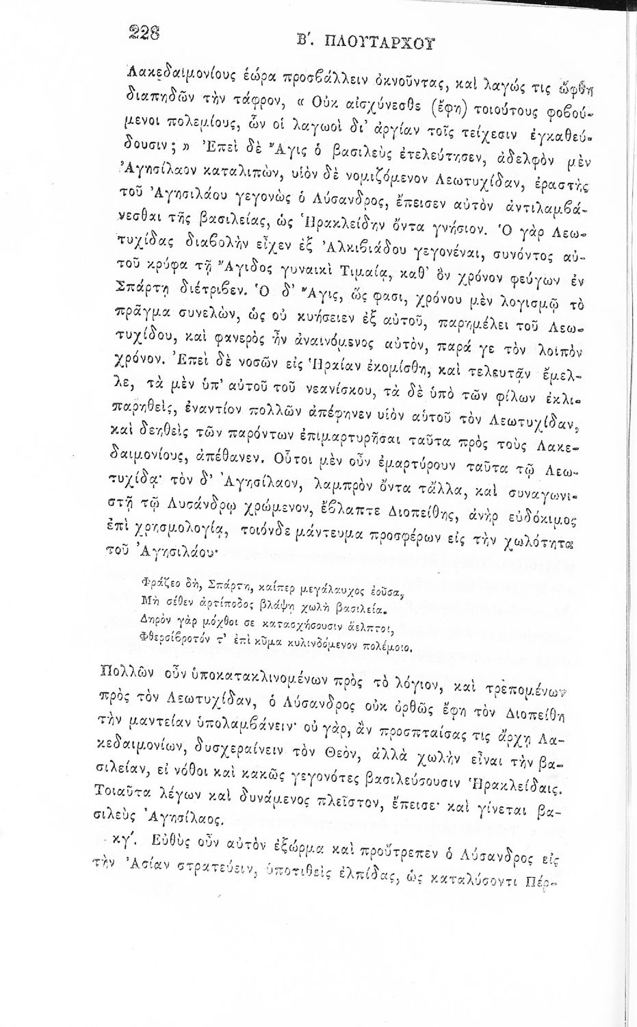 Σχολικό εγχειρίδιο Αρχαίων Ελληνικών για τα Ιερατικά Σχολεία. Ο τόμος περιέχει : «Ισοκράτους, το εις Ευαγόρα εγκώμιον, και τον Πανηγυρικόν- Πλουτάρχου, εκ των Παραλλήλων βίων τινάς- Ηροδότου, εκ των Ιστοριών Α΄, Ε΄, ΣΤ΄ και Η΄, αποσπάσματα- Γρηγορίου του Θεολόγου, τον απολογητικόν της εις τον Πόντον φυγής ένεκεν, η περί Ιερωσύνης και εκ των επιταφίων λόγων, τον εις Καισάριον τον εαυτού αδελφόν και εις τον Μέγαν Βασίλειον- και Ιωάννου του Χρυσοστόμου τους περί Ιερωσύνης λόγους, εις ανάγνωσιν»
