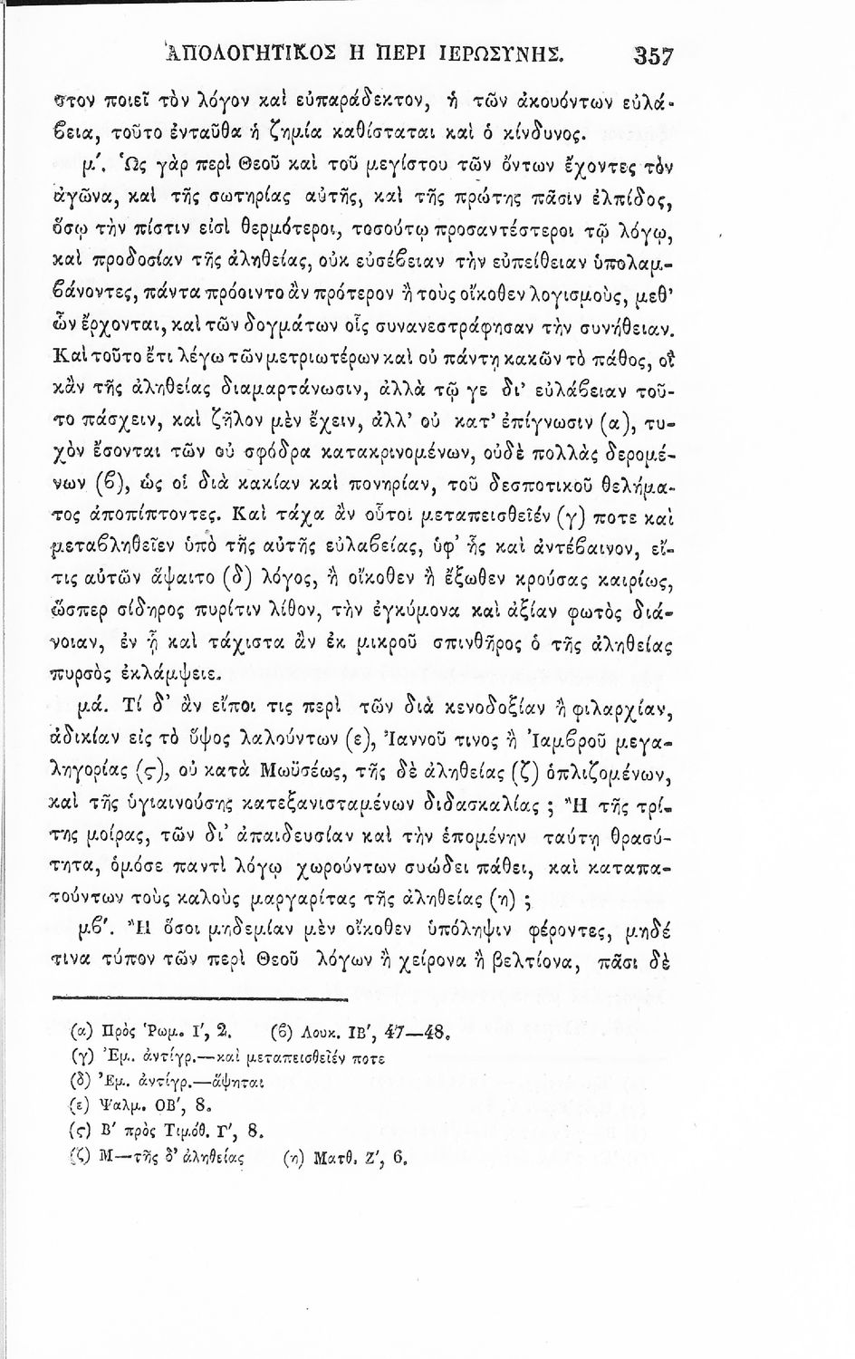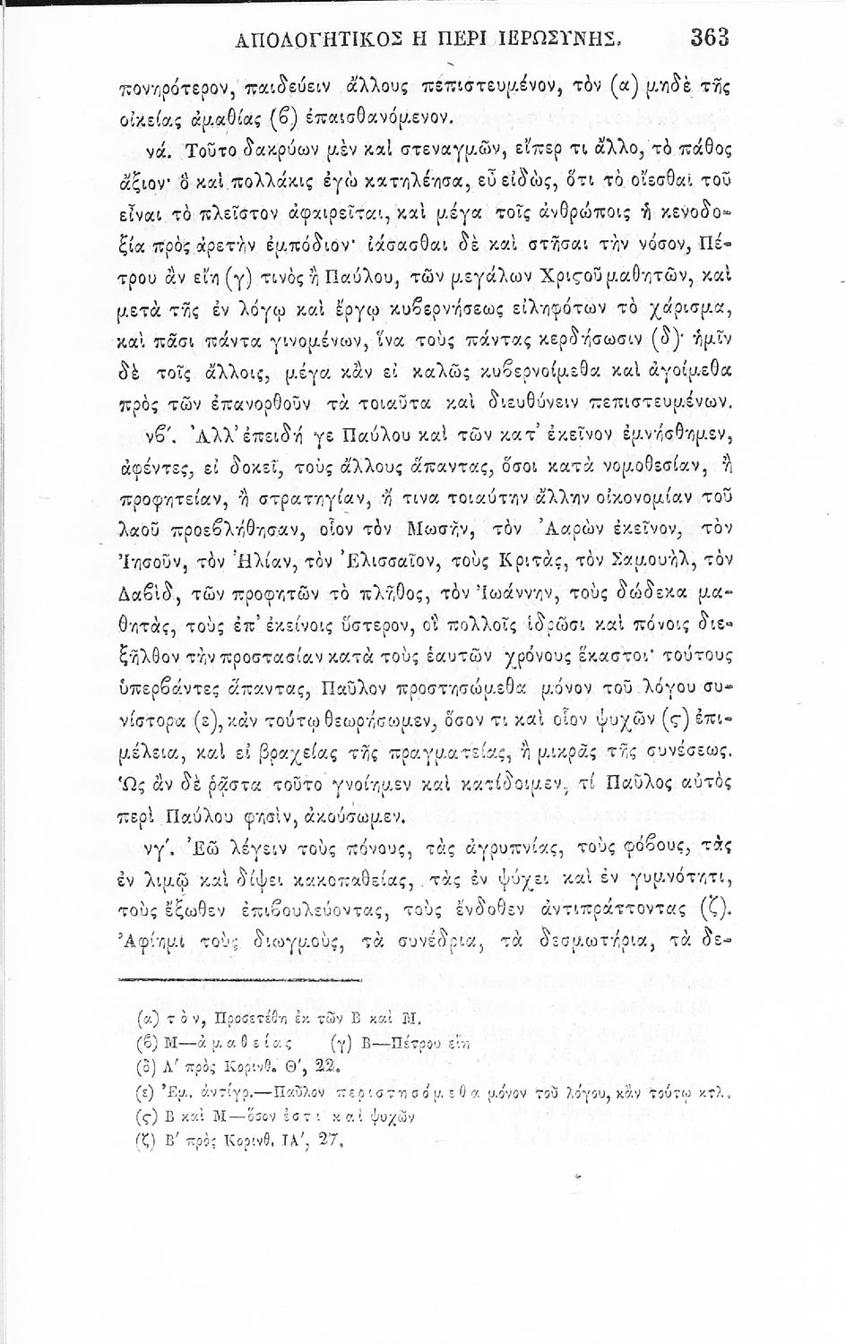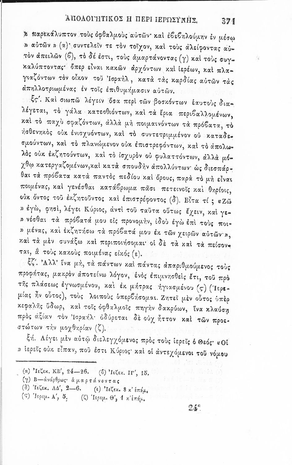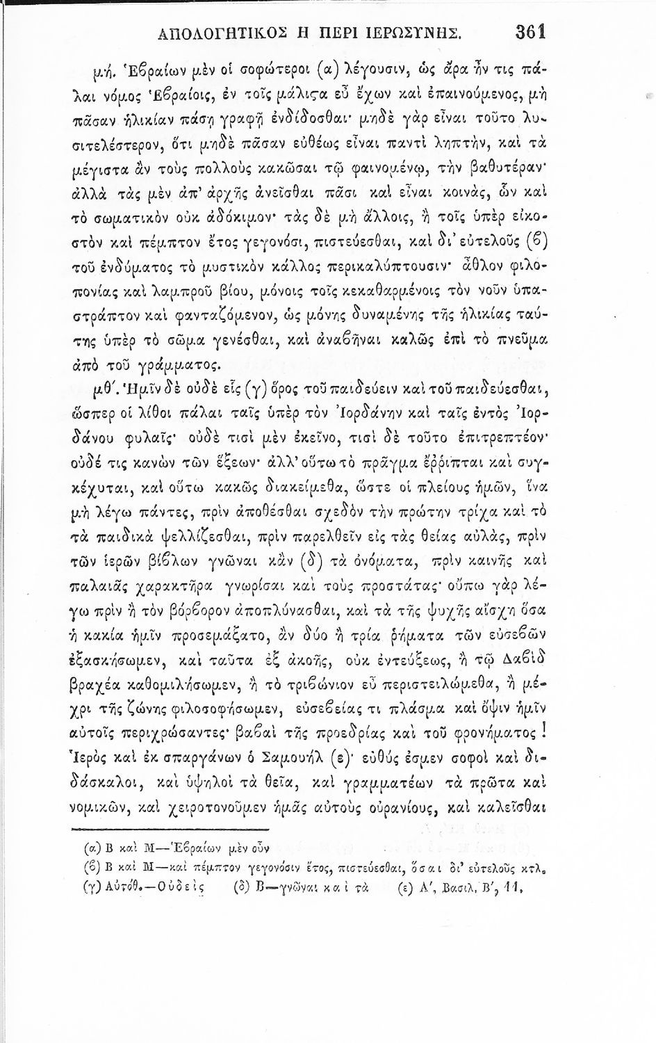 Σχολικό εγχειρίδιο Αρχαίων Ελληνικών για τα Ιερατικά Σχολεία. Ο τόμος περιέχει : «Ισοκράτους, το εις Ευαγόρα εγκώμιον, και τον Πανηγυρικόν- Πλουτάρχου, εκ των Παραλλήλων βίων τινάς- Ηροδότου, εκ των Ιστοριών Α΄, Ε΄, ΣΤ΄ και Η΄, αποσπάσματα- Γρηγορίου του Θεολόγου, τον απολογητικόν της εις τον Πόντον φυγής ένεκεν, η περί Ιερωσύνης και εκ των επιταφίων λόγων, τον εις Καισάριον τον εαυτού αδελφόν και εις τον Μέγαν Βασίλειον- και Ιωάννου του Χρυσοστόμου τους περί Ιερωσύνης λόγους, εις ανάγνωσιν»