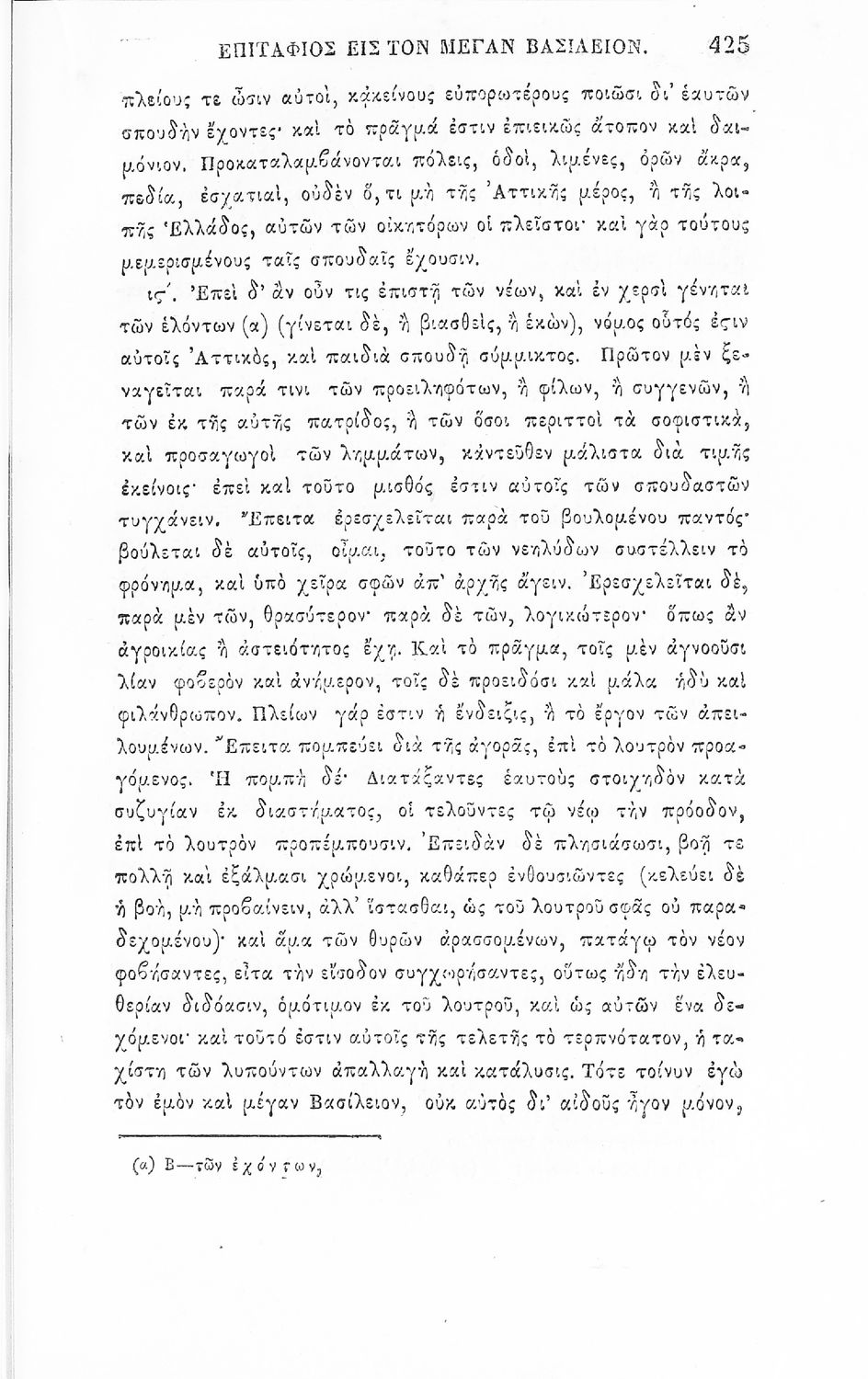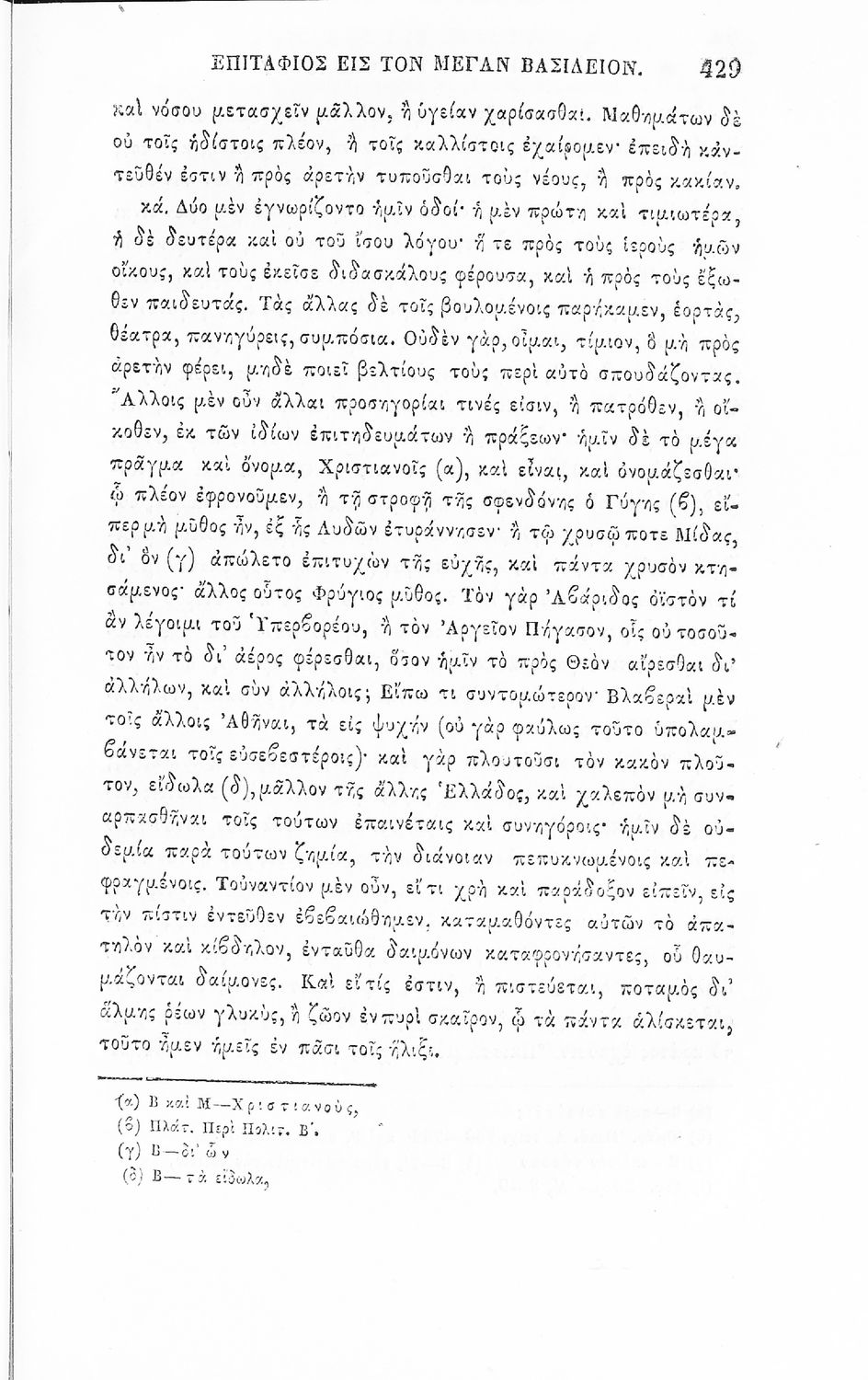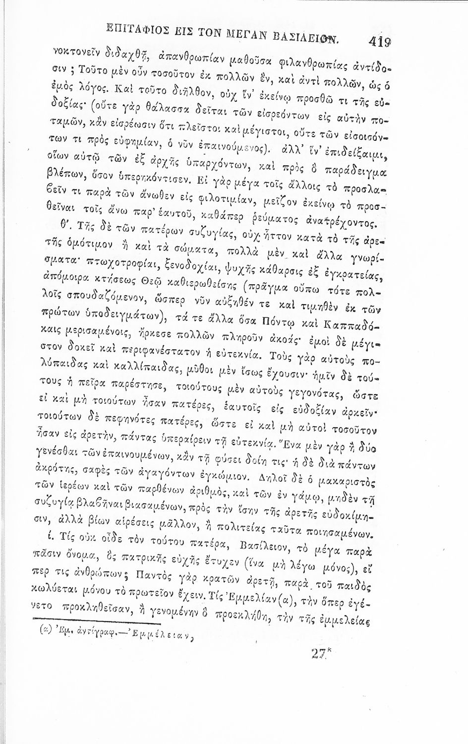 Σχολικό εγχειρίδιο Αρχαίων Ελληνικών για τα Ιερατικά Σχολεία. Ο τόμος περιέχει : «Ισοκράτους, το εις Ευαγόρα εγκώμιον, και τον Πανηγυρικόν- Πλουτάρχου, εκ των Παραλλήλων βίων τινάς- Ηροδότου, εκ των Ιστοριών Α΄, Ε΄, ΣΤ΄ και Η΄, αποσπάσματα- Γρηγορίου του Θεολόγου, τον απολογητικόν της εις τον Πόντον φυγής ένεκεν, η περί Ιερωσύνης και εκ των επιταφίων λόγων, τον εις Καισάριον τον εαυτού αδελφόν και εις τον Μέγαν Βασίλειον- και Ιωάννου του Χρυσοστόμου τους περί Ιερωσύνης λόγους, εις ανάγνωσιν»