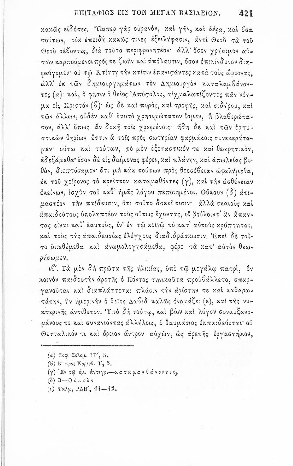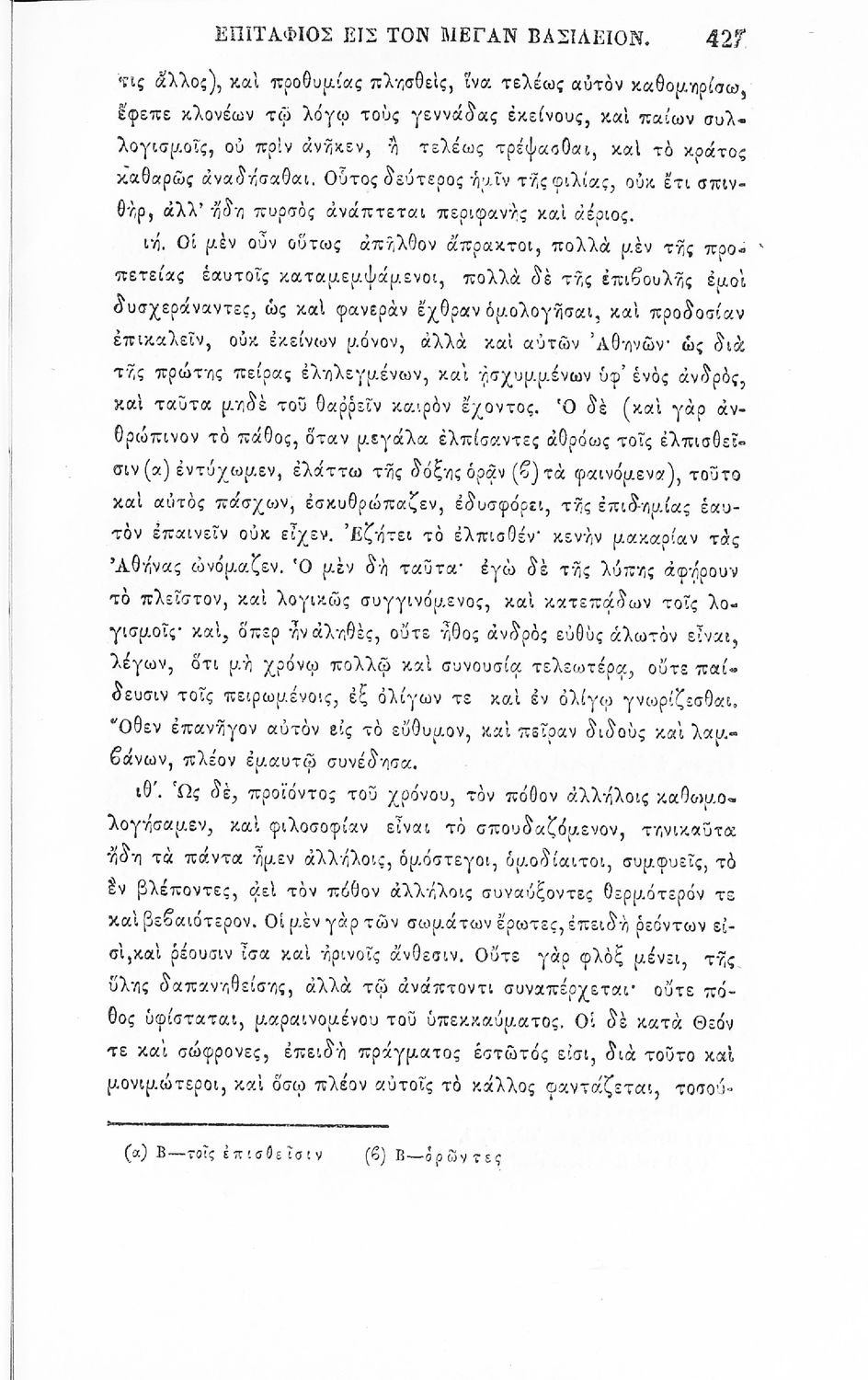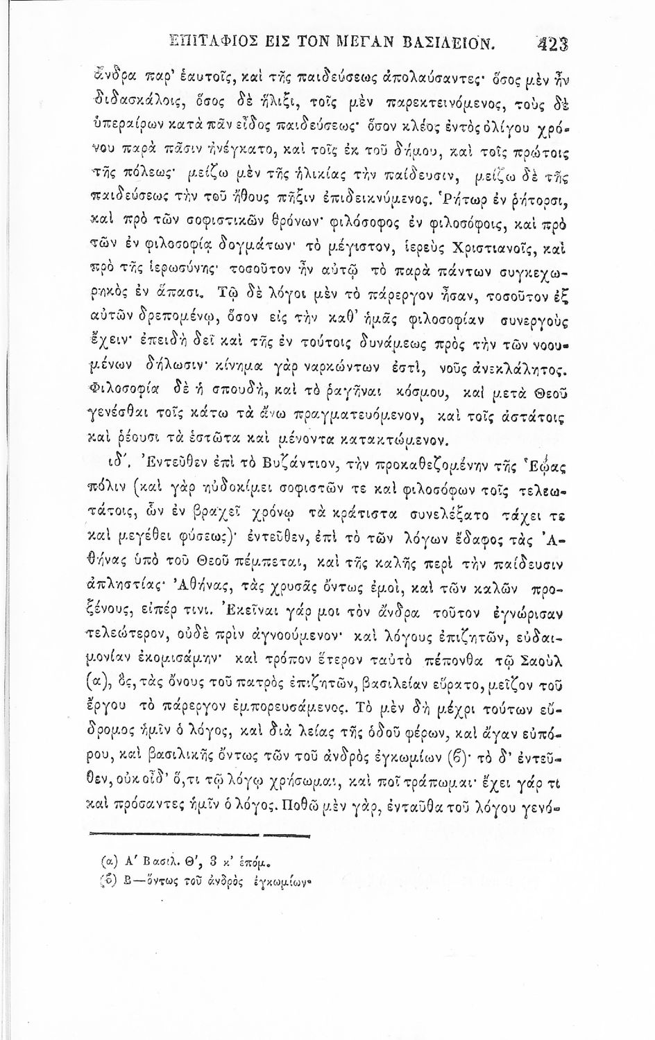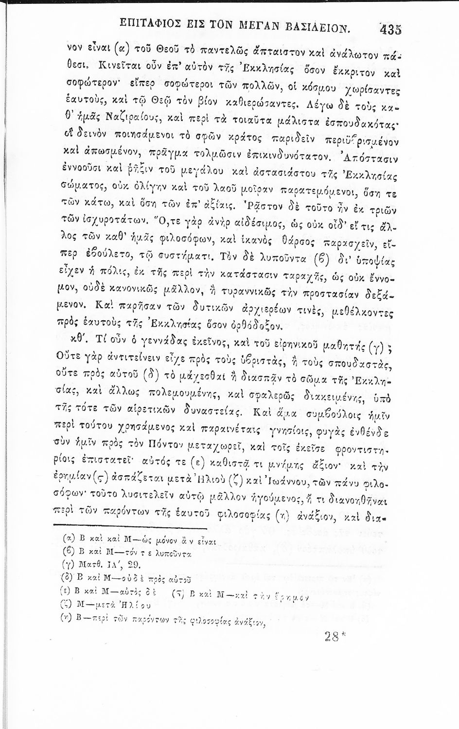 Σχολικό εγχειρίδιο Αρχαίων Ελληνικών για τα Ιερατικά Σχολεία. Ο τόμος περιέχει : «Ισοκράτους, το εις Ευαγόρα εγκώμιον, και τον Πανηγυρικόν- Πλουτάρχου, εκ των Παραλλήλων βίων τινάς- Ηροδότου, εκ των Ιστοριών Α΄, Ε΄, ΣΤ΄ και Η΄, αποσπάσματα- Γρηγορίου του Θεολόγου, τον απολογητικόν της εις τον Πόντον φυγής ένεκεν, η περί Ιερωσύνης και εκ των επιταφίων λόγων, τον εις Καισάριον τον εαυτού αδελφόν και εις τον Μέγαν Βασίλειον- και Ιωάννου του Χρυσοστόμου τους περί Ιερωσύνης λόγους, εις ανάγνωσιν»
