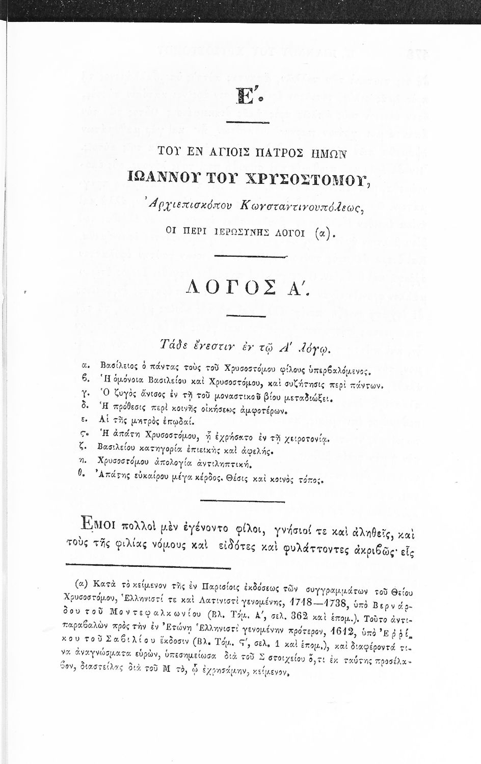 Σχολικό εγχειρίδιο Αρχαίων Ελληνικών για τα Ιερατικά Σχολεία. Ο τόμος περιέχει: «Γραμματικάς γυμνάσεις, Μύθους του Αισώπου και Φιλοσόφων ανέκδοτα, εκ των λόγων του θείου Χρυσόστομου τους περί προσευχής και τον