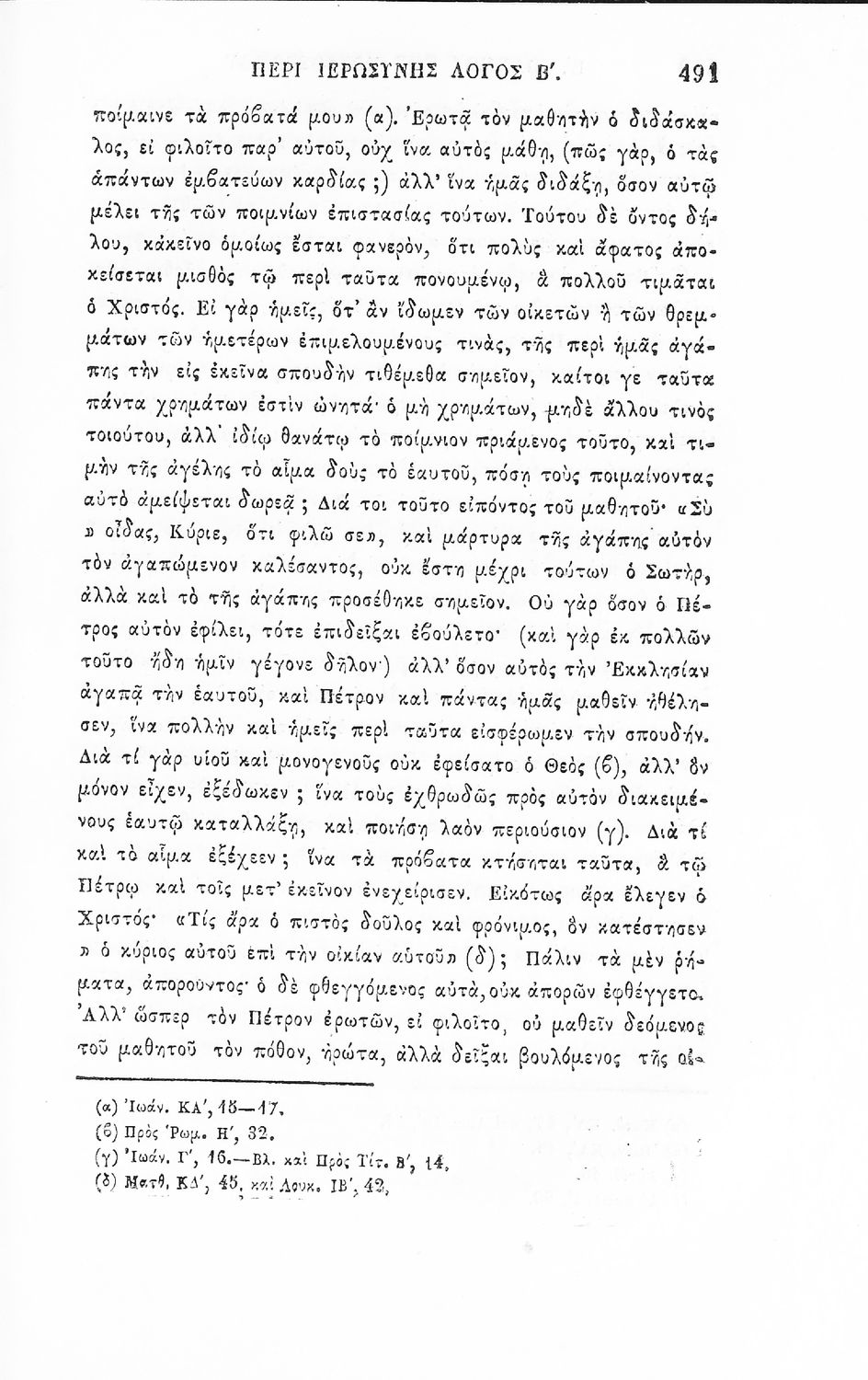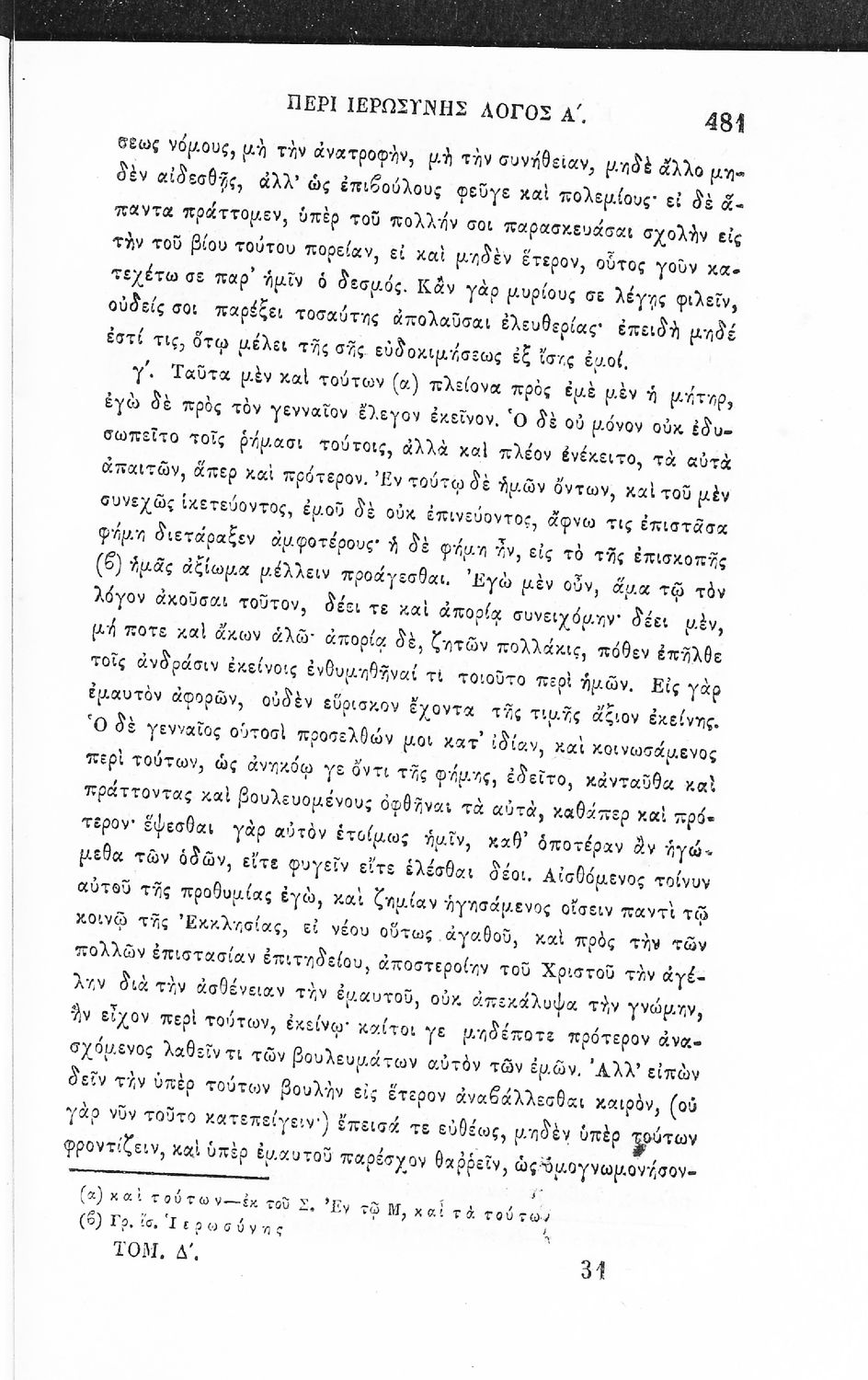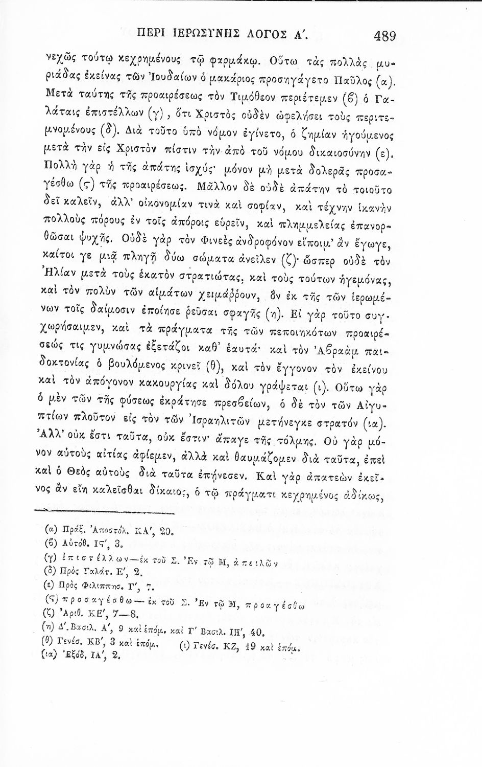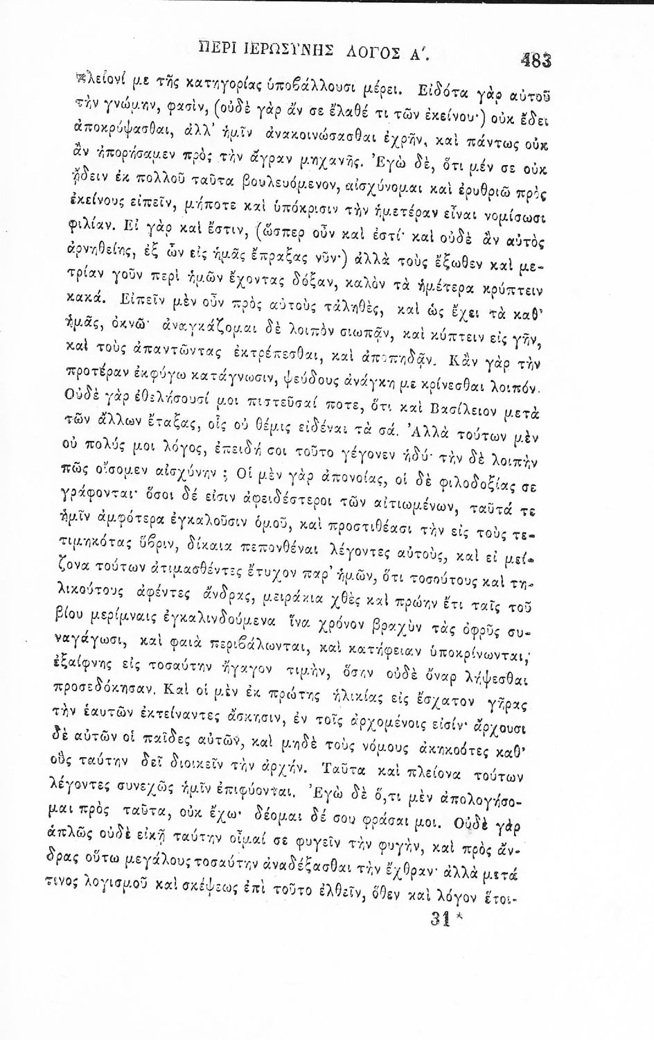 Σχολικό εγχειρίδιο Αρχαίων Ελληνικών για τα Ιερατικά Σχολεία. Ο τόμος περιέχει : «Ισοκράτους, το εις Ευαγόρα εγκώμιον, και τον Πανηγυρικόν- Πλουτάρχου, εκ των Παραλλήλων βίων τινάς- Ηροδότου, εκ των Ιστοριών Α΄, Ε΄, ΣΤ΄ και Η΄, αποσπάσματα- Γρηγορίου του Θεολόγου, τον απολογητικόν της εις τον Πόντον φυγής ένεκεν, η περί Ιερωσύνης και εκ των επιταφίων λόγων, τον εις Καισάριον τον εαυτού αδελφόν και εις τον Μέγαν Βασίλειον- και Ιωάννου του Χρυσοστόμου τους περί Ιερωσύνης λόγους, εις ανάγνωσιν»