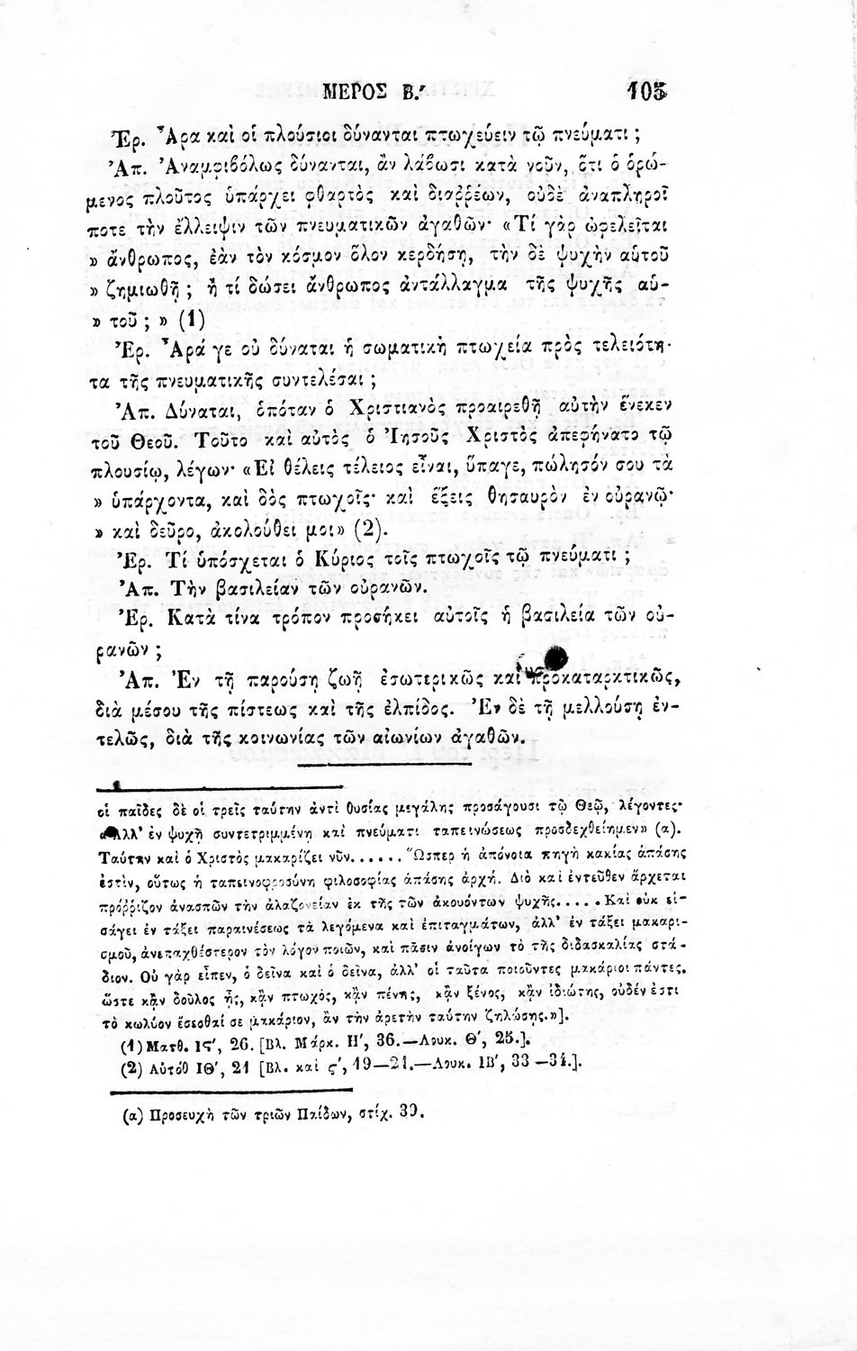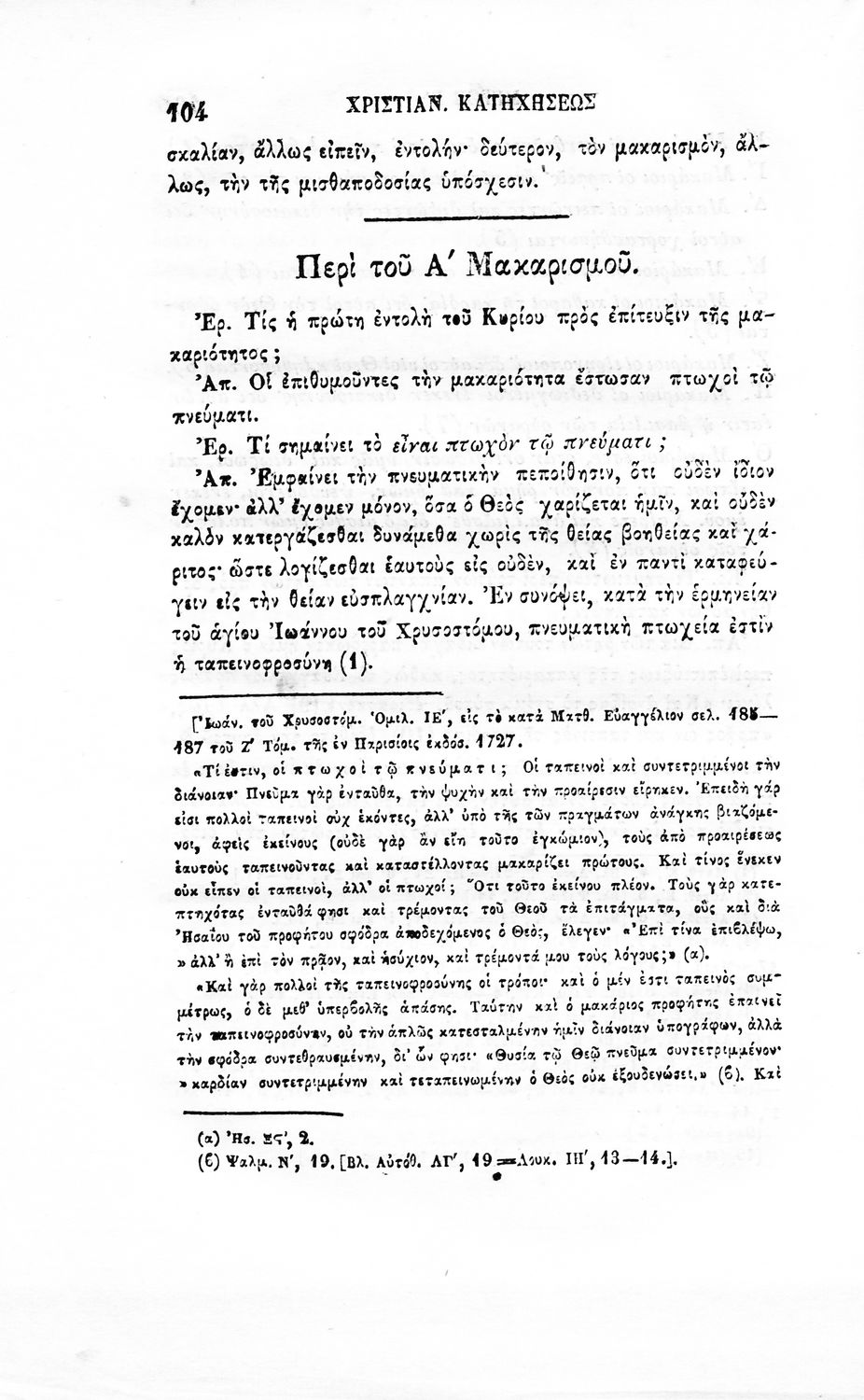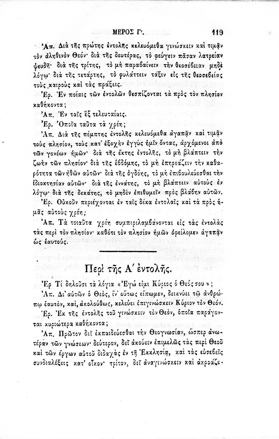 Σχολικό εγχειρίδιο Αρχαίων Ελληνικών για τα Ιερατικά Σχολεία. Ο τόμος περιέχει: «Γραμματικάς γυμνάσεις, Μύθους του Αισώπου και Φιλοσόφων ανέκδοτα, εκ των λόγων του θείου Χρυσόστομου τους περί προσευχής και τον