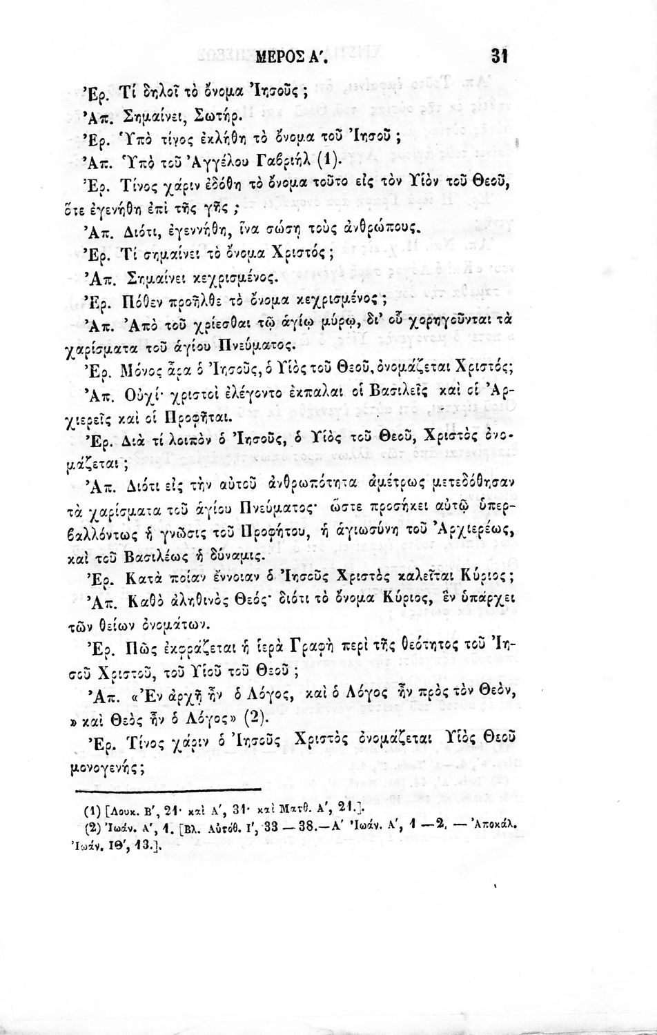 Σχολικό εγχειρίδιο Αρχαίων Ελληνικών για τα Ιερατικά Σχολεία. Ο τόμος περιέχει: «Γραμματικάς γυμνάσεις, Μύθους του Αισώπου και Φιλοσόφων ανέκδοτα, εκ των λόγων του θείου Χρυσόστομου τους περί προσευχής και τον