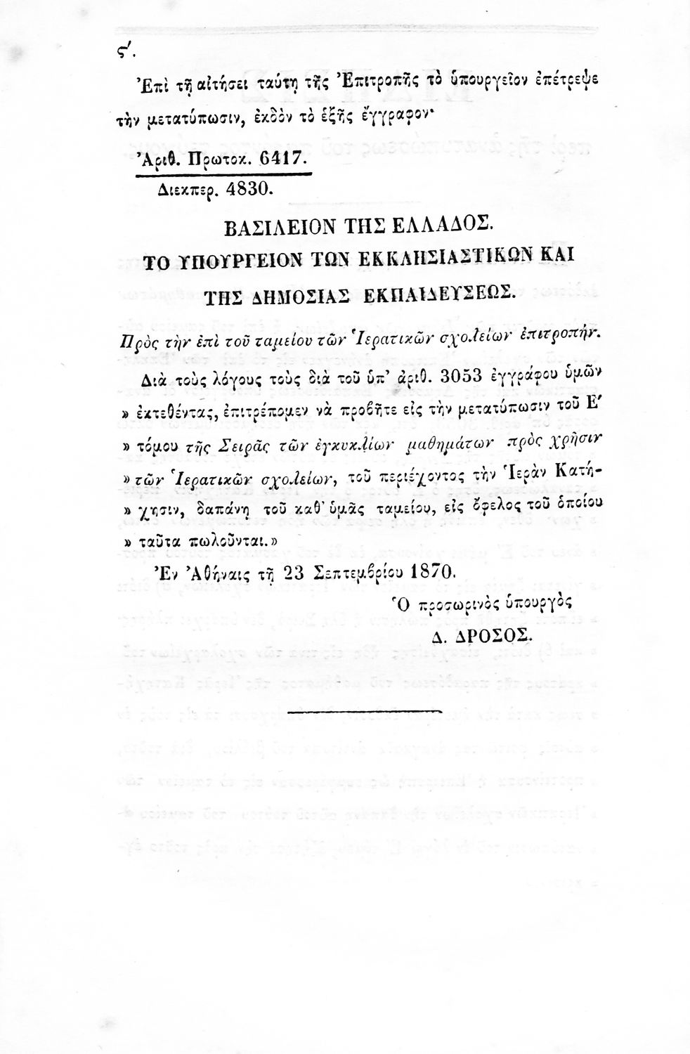 Υπουργική απόφαση / Σύμβαση: 6417/23-9-1870