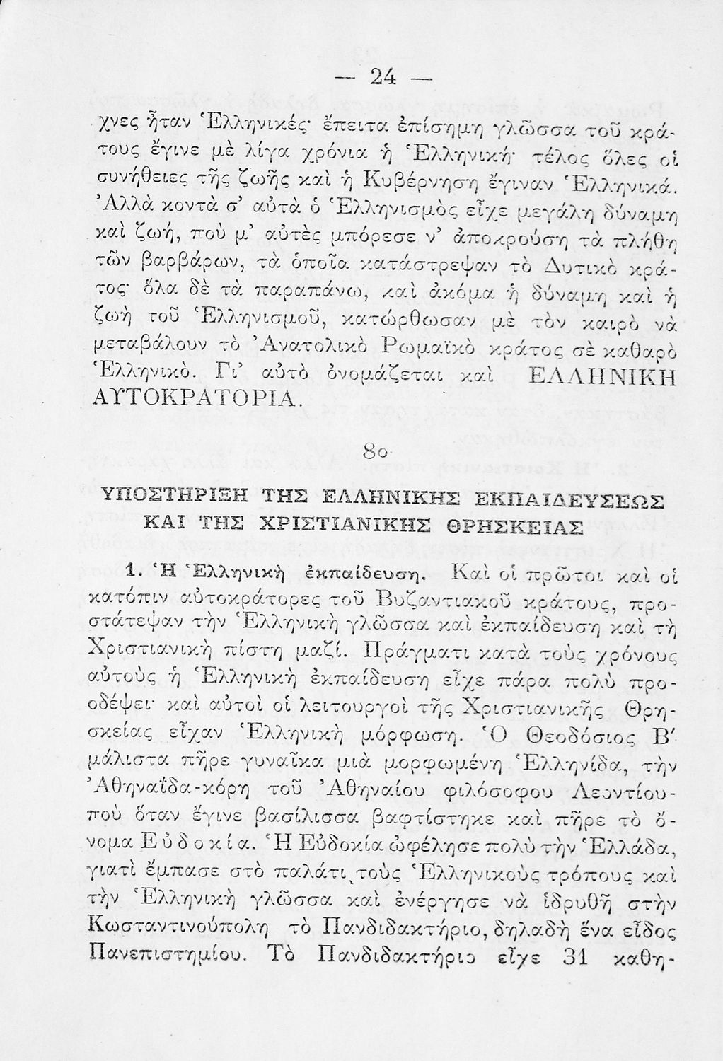 Σχολικό εγχειρίδιο για το μάθημα της Ιστορίας στους μαθητές του Δημοτικού. Αναφέρεται στα χρόνια της Βυζαντινής Αυτοκρατορίας μέχρι και την άλωση της Πόλης. Το τελευταίο κεφάλαιο αναφέρεται στα επιτεύγματα της