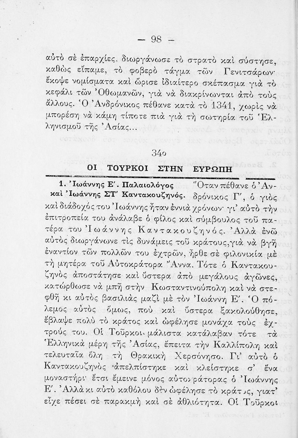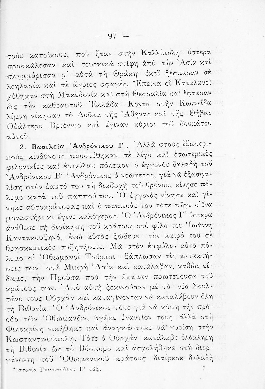 Βαθμίδα εκπαίδευσης: Πρωτοβάθμια Τάξη: Ε' Δημοτικού Μάθημα: Ιστορία Γλώσσα: Απλή καθαρεύουσα Παρουσίαση περιεχομένου: Σχολικό εγχειρίδιο Ιστορίας Ε΄ Δημοτικού που καλύπτει την περίοδο από την ίδρυση της ρωμαϊκής αυτοκρατορίας ως την άλωση της Κωνσταντινούπολης και την Αναγέννηση στην Ευρώπη. |