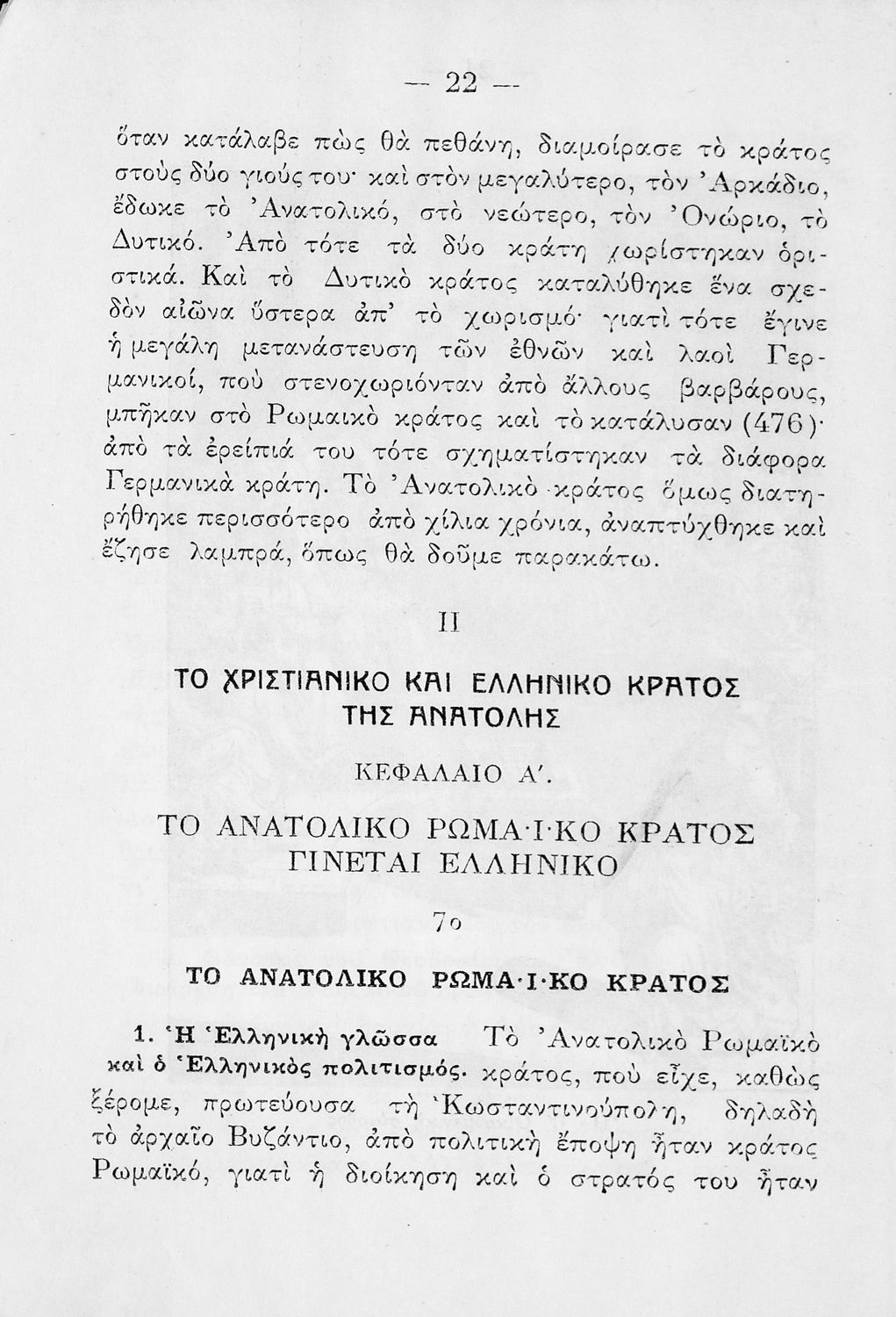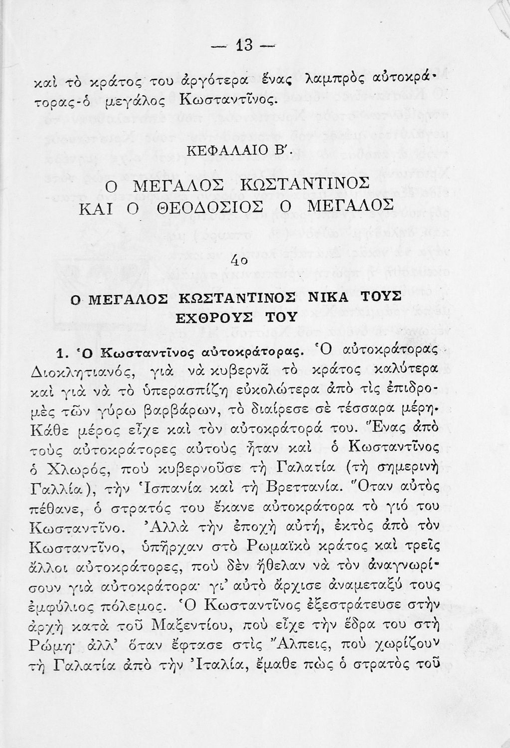 Μαθητικό βοήθημα Ιστορίας Δ΄ Δημοτικού που καλύπτει την περίοδο της Ρωμαϊκής και Βυζαντινής Αυτοκρατορίας μέχρι και την άλωση της Κωνσταντινούπολης. Ο συγγραφέας ήταν επιθεωρητής Δημοτικών Σχολείων.