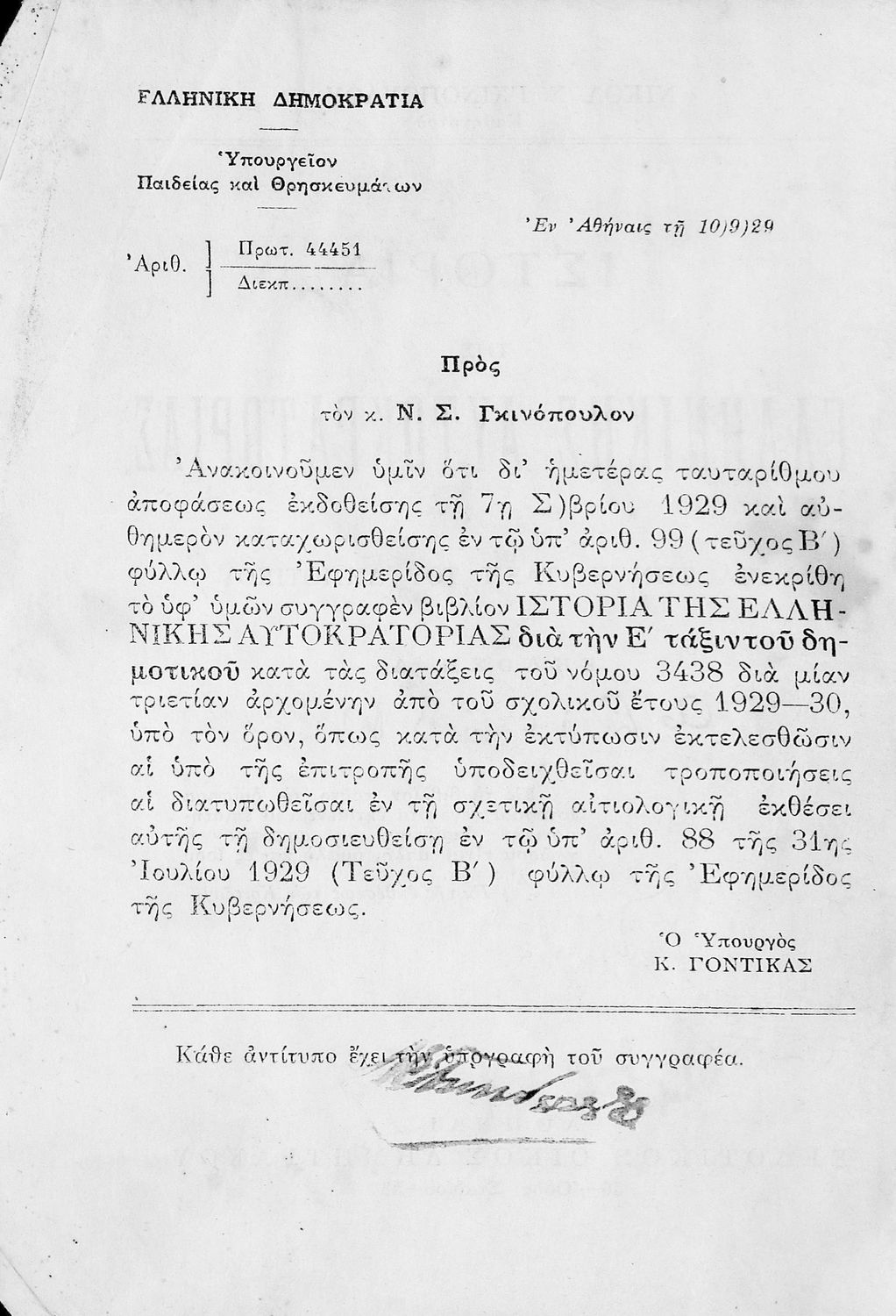 Υπουργική απόφαση / Σύμβαση: 444451/10-9-1929