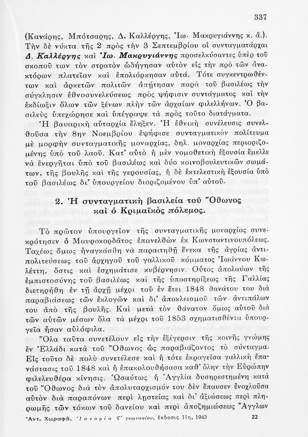 Ιστορία της Νέας Ελλάδος (1453-1924) και η σύγχρονος της όλης Ευρώπης. Δια την Ε΄ και ΣΤ΄ Τάξιν των Γυμνασίων
