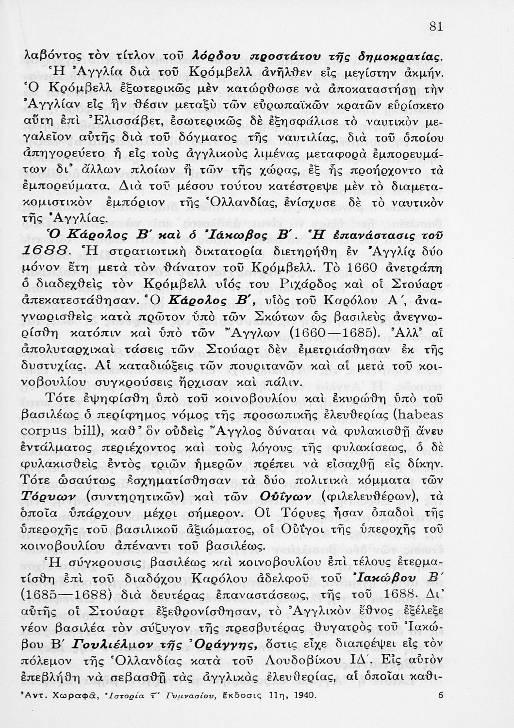 Παρουσίαση περιεχομένου: Σχολικό εγχειρίδιο Ιστορίας Ε΄ και ΣΤ΄ Γυμνασίου που καλύπτει την περίοδο από την άλωση της Κωνσταντινούπολης ως τον Α΄ Παγκόσμιο Πόλεμο